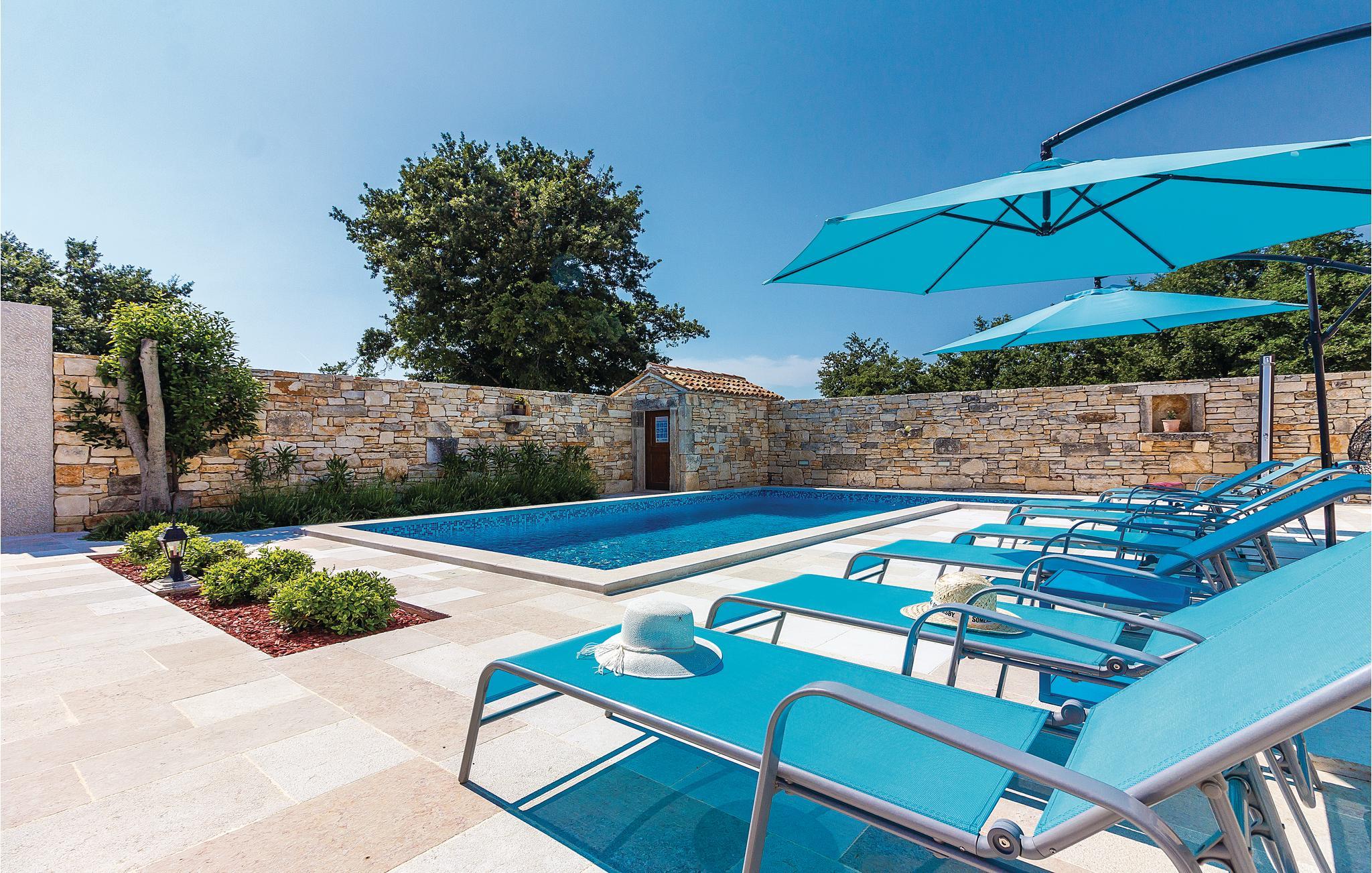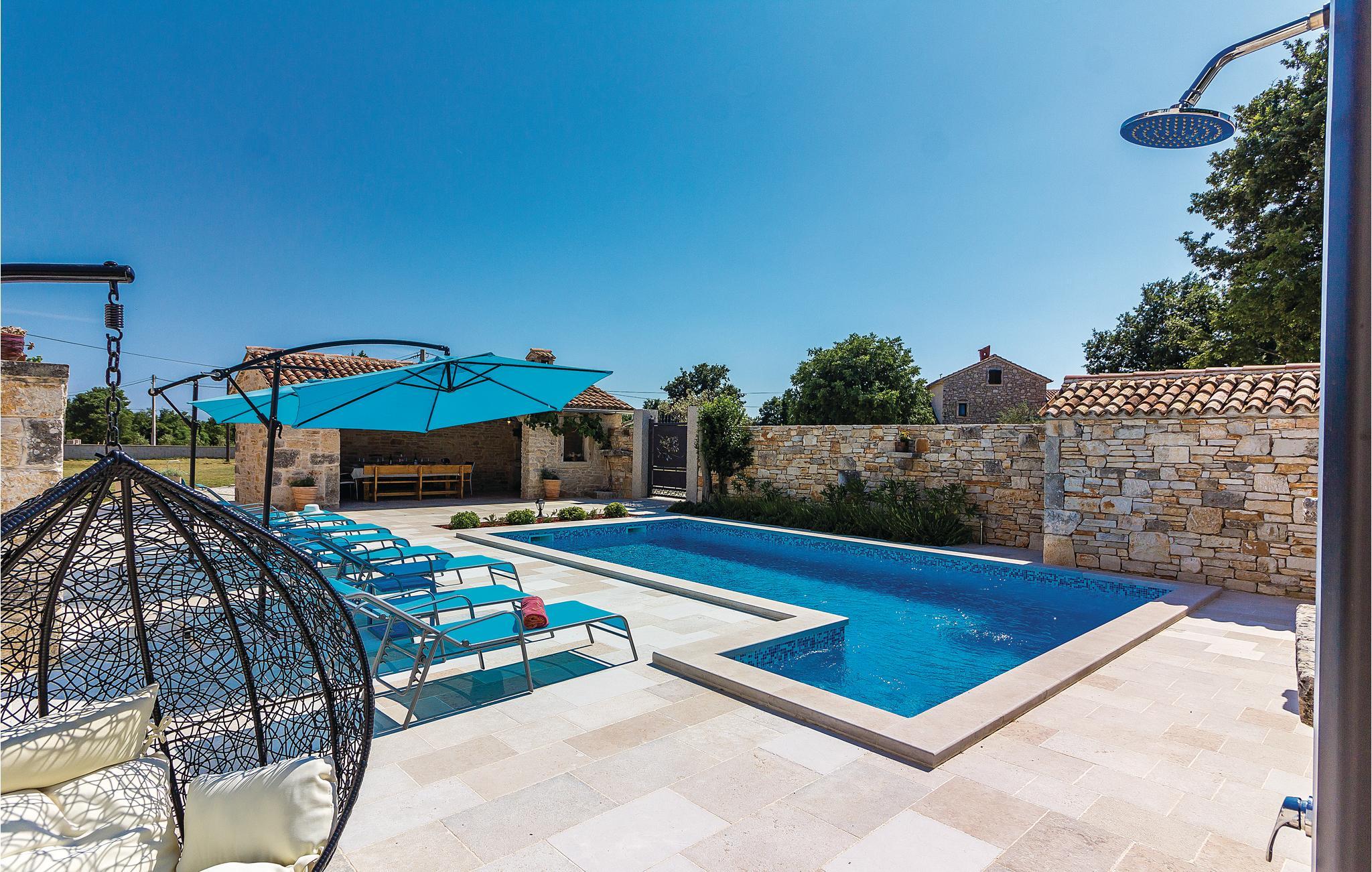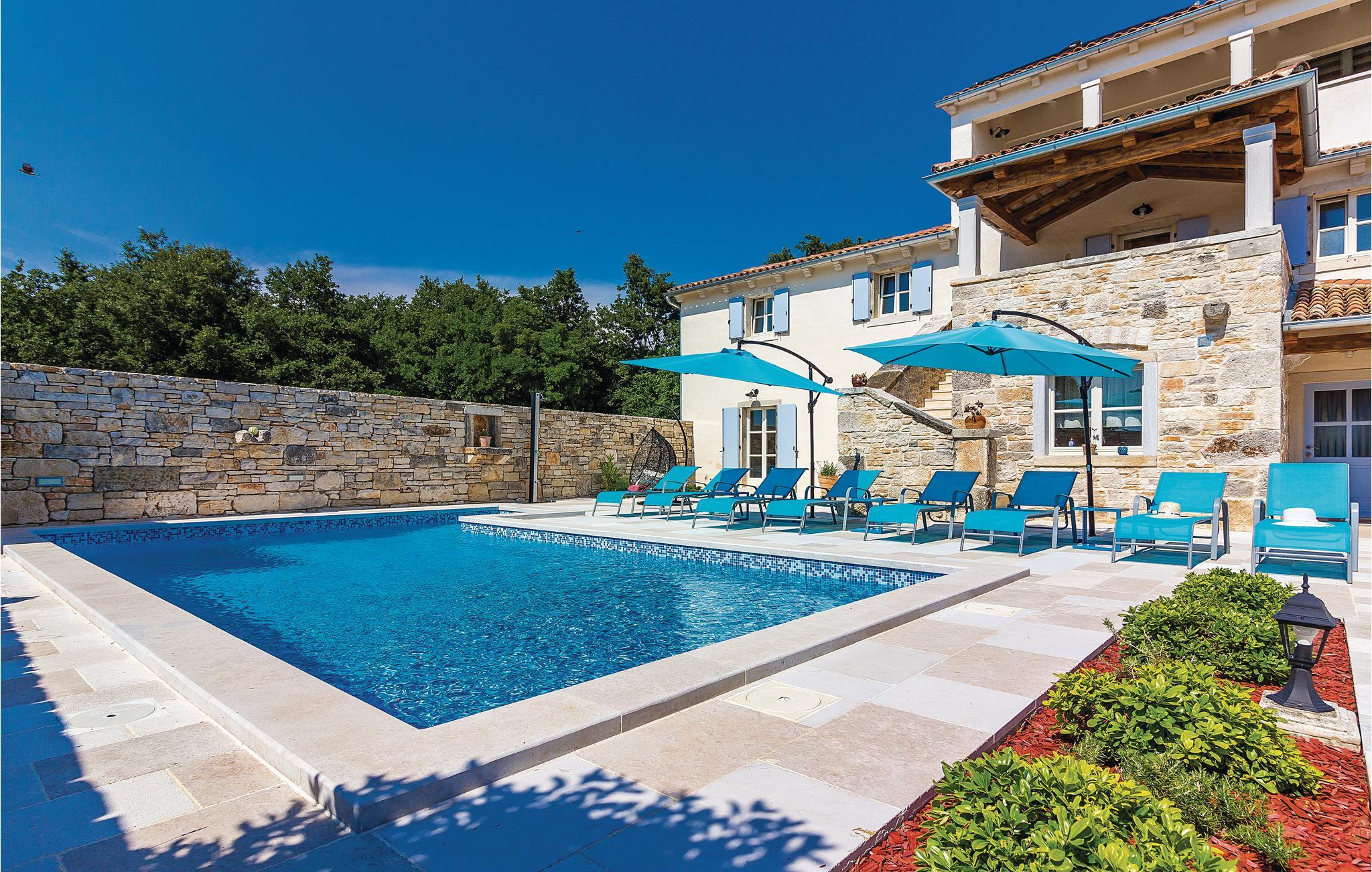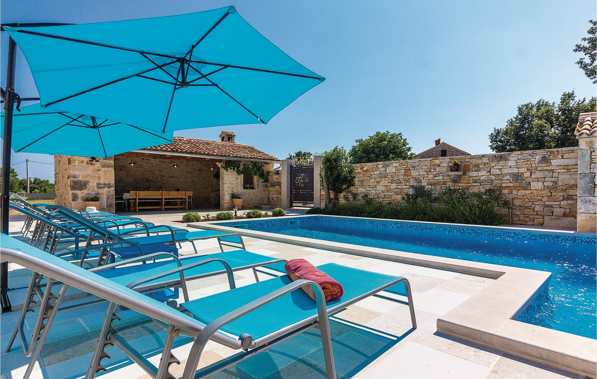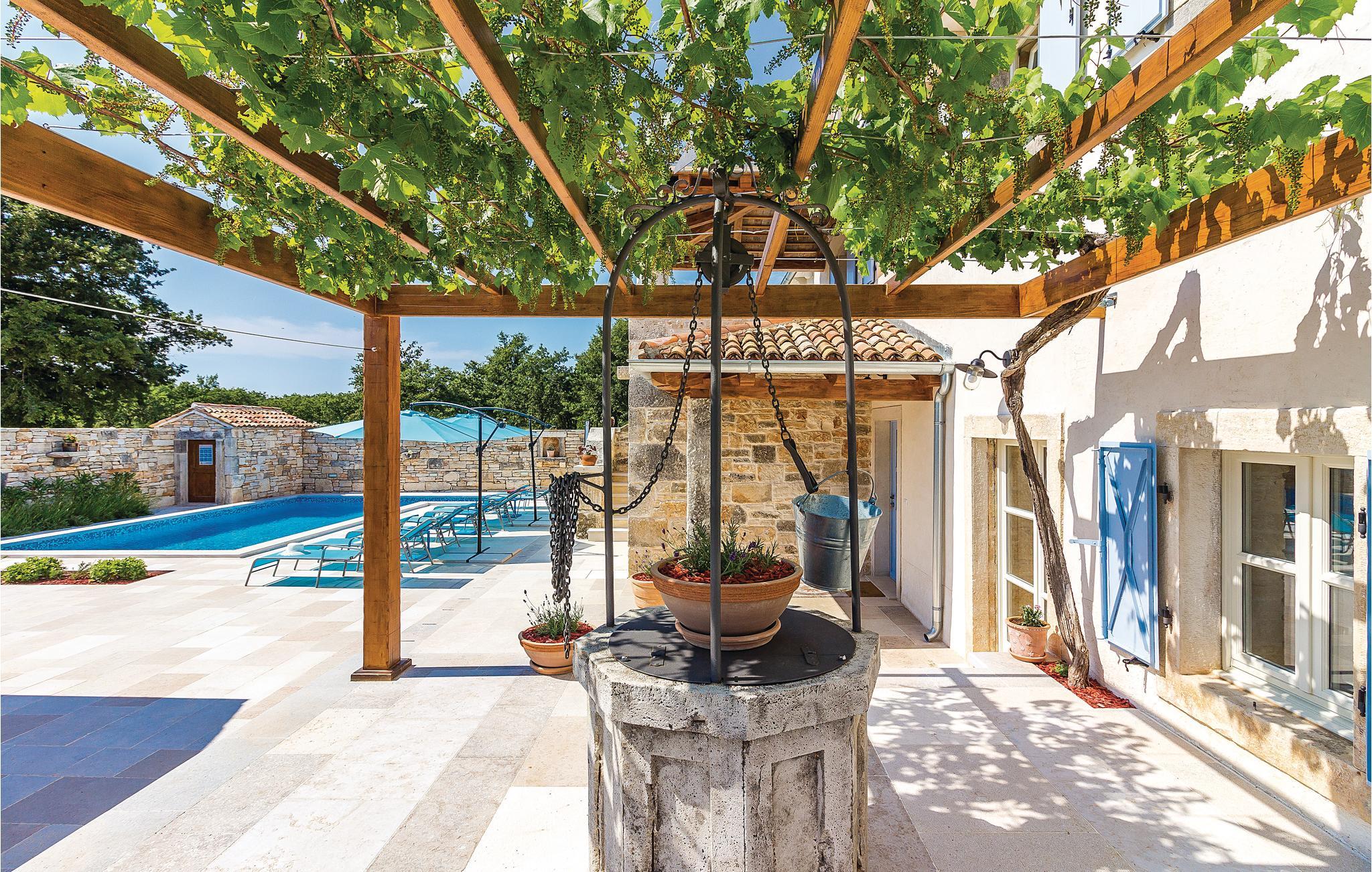 Verbringen Sie einen wunderschönen Urlaub in diesem eindrucksvollen Landhaus, welches komplett renoviert und den heutigen Lebensstandard angepasst wurde. Die traditionelle Bauweise aus Stein und Holz verbunden mit moderner Einrichtung bietet seinen Gästen maximalen Komfort. Im Erdgeschoss sind eine Küche mit Wohn- und Essbereich sowie ein Schlafzimmer mit Bad und eigenem Zugang zum Poolbereich. Im Obergeschoss sind drei Schlafzimmer mit Badezimmern während im Dachgeschoss das größte Schlafzimmer mit Bad und eigener Terrasse ist, von der sich sogar ein teilweiser Meerblick bietet. Hier können Sie den Blick auf den wunderschönen Sonnenuntergang genießen. Neben dem Pool ist eine überdachte Terrasse mit Grill und auf der Rasenfläche daneben gibt es einen Kinderspielbereich sowie einen Volleyball- und Badmintonfeld. An der Vorderseite befindet sich eine zusätzliche Innenhofterrasse, auf der Sie morgens Kaffee trinken und sich entspannen können. Das Haus ist sehr gut eingerichtet und ausgestattet und Sie werden hier sicherlich einen unvergesslichen Urlaub verbringen. Besuchen Sie die nahe gelegenen Orte Fažana, Vodnjan, Pula. In Vodnjan können Sie die Basilika St. Blaise mit dem höchsten Kirchturm Istriens und einer beneidenswerten Sammlung von Mumien besuchen. Von der Uferpromenade aus dem nahe gelegenen Fažana, einem kleinen Fischerdorf, fahren täglich Touristenboote in Richtung Brijuni-Nationalpark. Wenn Sie nach Süden fahren, kommen Sie in Pula an, wo es viele Denkmäler aus der Vergangenheit gibt, wie das römische Amphitheater. Im Norden Istriens sind malerische mittelalterliche Orte zu sehen, wie beispielsweise Motovun, wo jedes Jahr Ende Juli ein internationales Filmfestival stattfindet. Wenn Sie die Halbinsel Istrien entlang fahren, werden Sie auf viele Weinstraßen und lokale Tavernen stoßen, die einheimische Köstlichkeiten anbieten. Es ist sicherlich eine gute Möglichkeit, die lokale Tradition und Bräuche kennenzulernen.