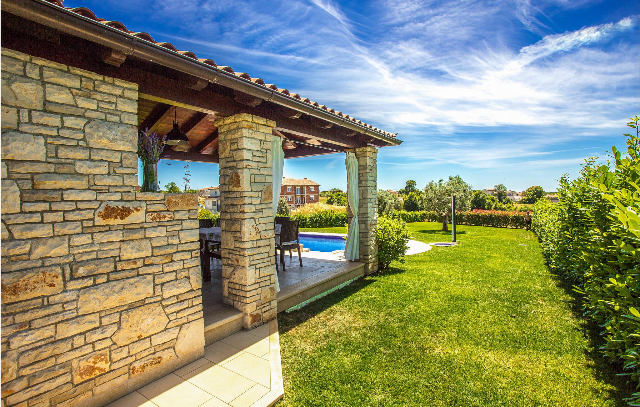 Im kleinen Dorf Galižana, in der Nähe der Stadt Pula, befindet sich dieses schöne Ferienhaus mit Pool. Das gut und stilvoll eingerichtete Interieur bieten seinen Gästen eine besondere Wohlfühlatmosphäre. Im geräumigen Untergeschoss gibt es ein zusätzliches Wohnzimmer mit Küche und einem Schlafzimmer mit eigenen Bad. Im Erdgeschoss erwarten Sie ein Wohnzimmer mit Küche, ein Badezimmer und zwei Schlafzimmer, während im Obergeschoss zwei Schlafzimmer sind, von denen eines ein Durchgangszimmer ist, das ideal für Eltern mit kleinen Kindern ist. Der Garten ist ideal zum Spielen für Kinder, und an heißen Sommertagen können Sie im Pool Erfrischung finden. Bereiten Sie Gaumenfreunden am Grill auf der überdachten Terrasse zu. Empfehlenswert ist ein Besuch der Stadt Pula, die voller antiker Denkmäler wie dem römischen Amphitheater ist, in dem interessante Veranstaltungen wie das Pula Film Festival stattfinden und von dem Sie schöne Erinnerungen an einem Film unter freien Sternenhimmel mit nach Hause nehmen können.
