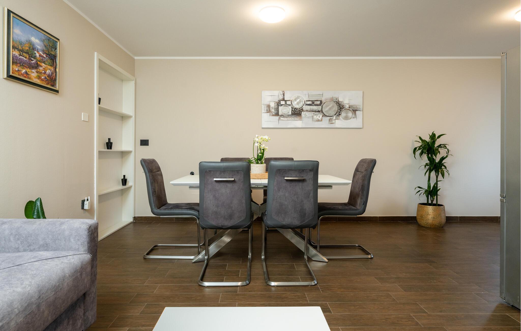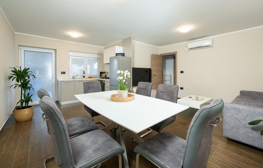 Diese schöne Ferienwohnung befindet sich in der Stadt Vodnjan, die über eine Altstadt mit altertümlichen Bauwerken verfügt. Die geschmackvoll eingerichteten Innenräume im Erdgeschoss bestehen aus zwei Schlafzimmern, einem Bad sowie einer Küche mit Wohnzimmer.