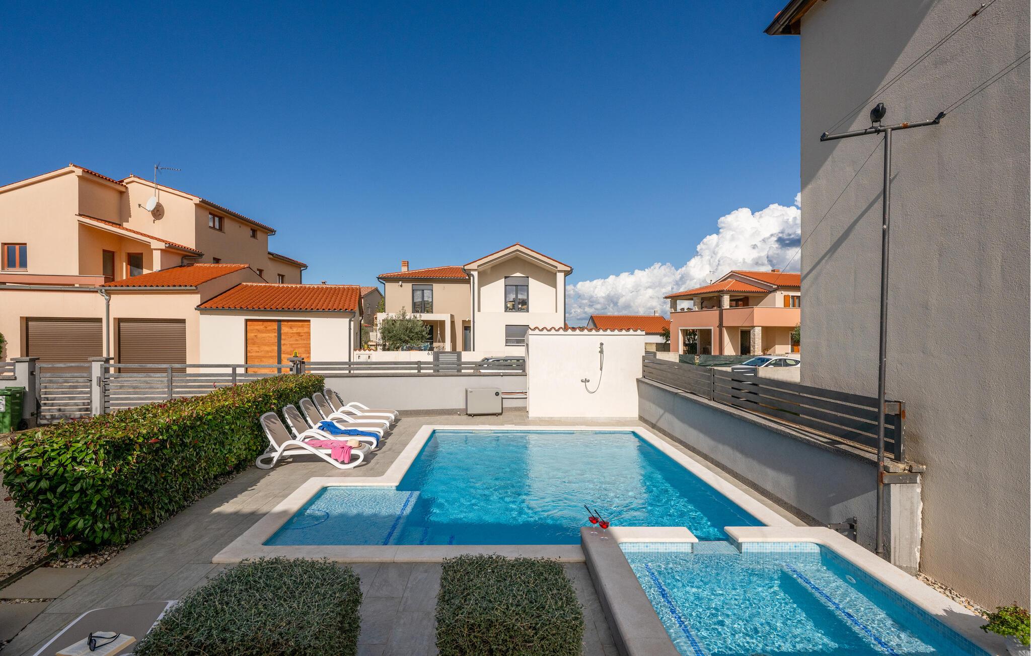 Die Terrasse ist direkt mit der Außenküche verbunden, in der Sie im Schatten viele Stunden im Freien verbringen können. Das Grundstück bietet einen Pool mit Sonnenbereich, und für die Kleinsten gibt es eine Kinderspielecke. Der Pool ist beheizt und ist ideal für Gäste, die ihren Urlaub außerhalb der Hauptsaison und des Sommertrubels verbringen möchten.