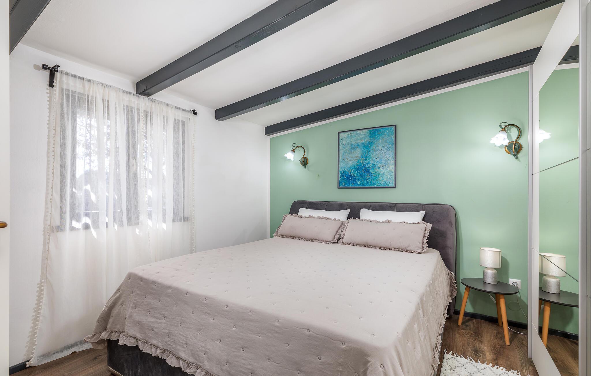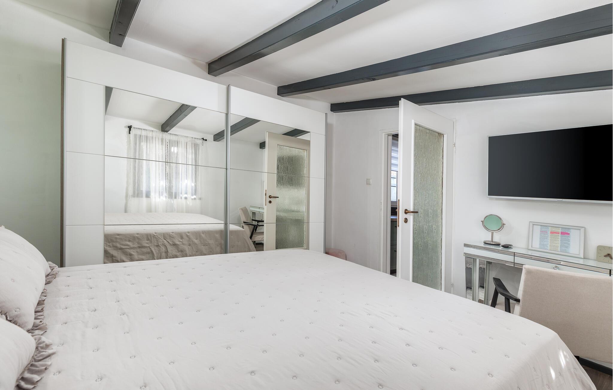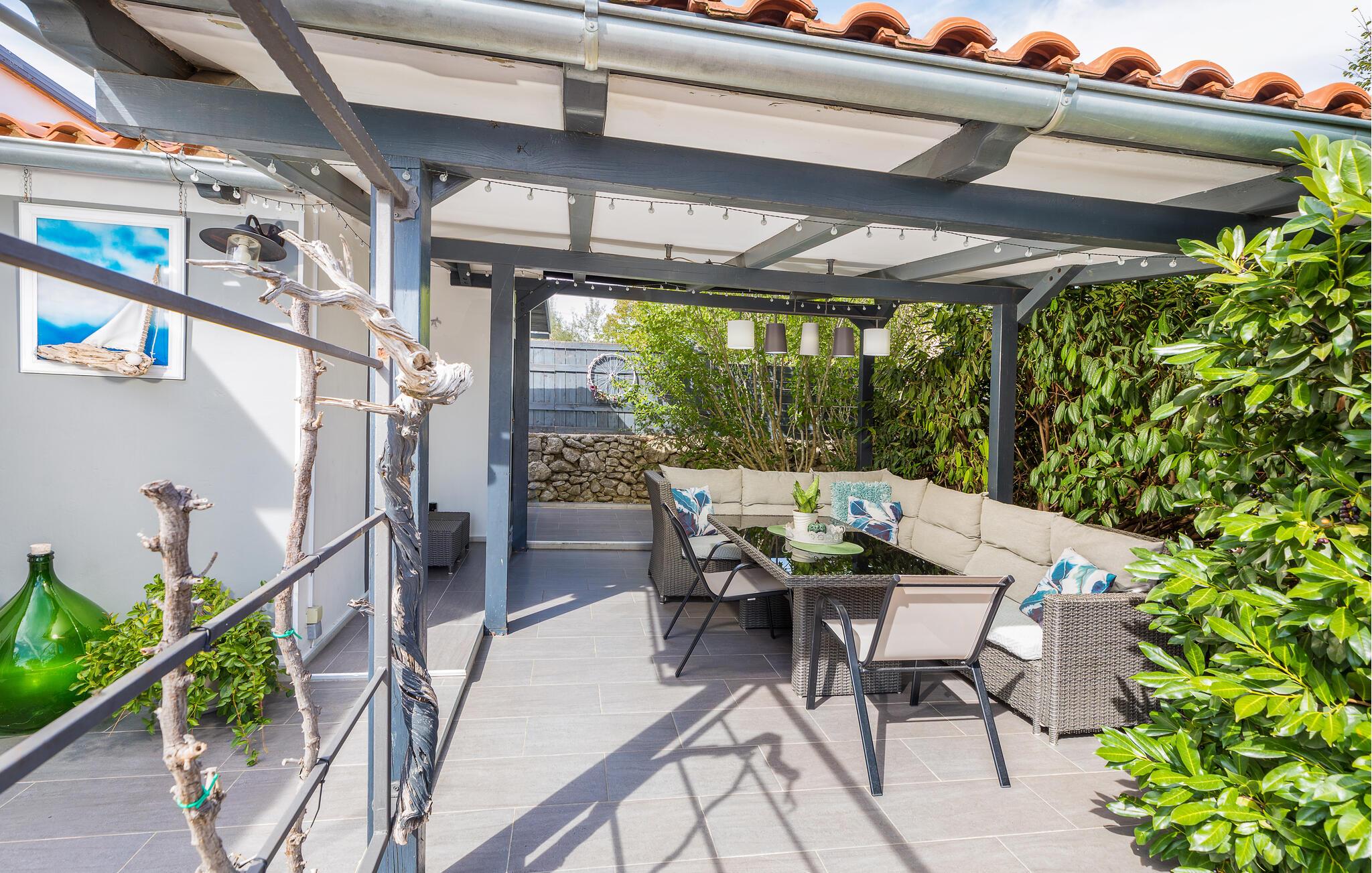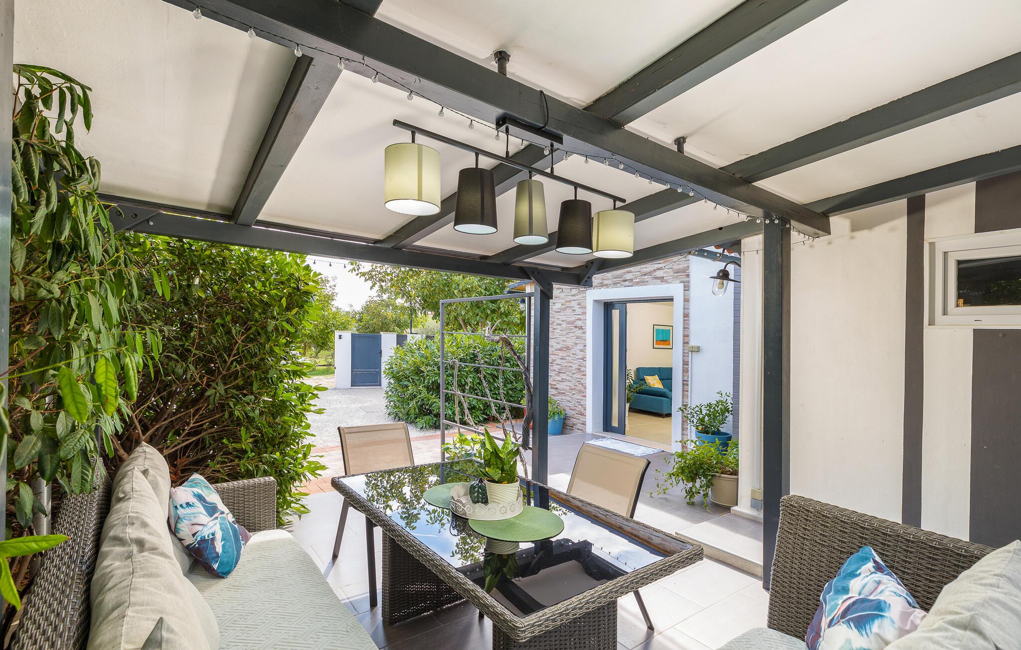 Begleitet von vielen Details, die ihm einen besonderen Charme verleihen werden Sie sich besonders wohlfühlen. Hier gibt es ein Schlafzimmer und ist mit allen notwendigen Geräten von ausgestattet. Vor dem Haus gibt es eine große überdachte Terrasse zum geselligen Beisammensein und Genießen, während es eine weitere Terrasse mit Esstisch und Grill gibt.