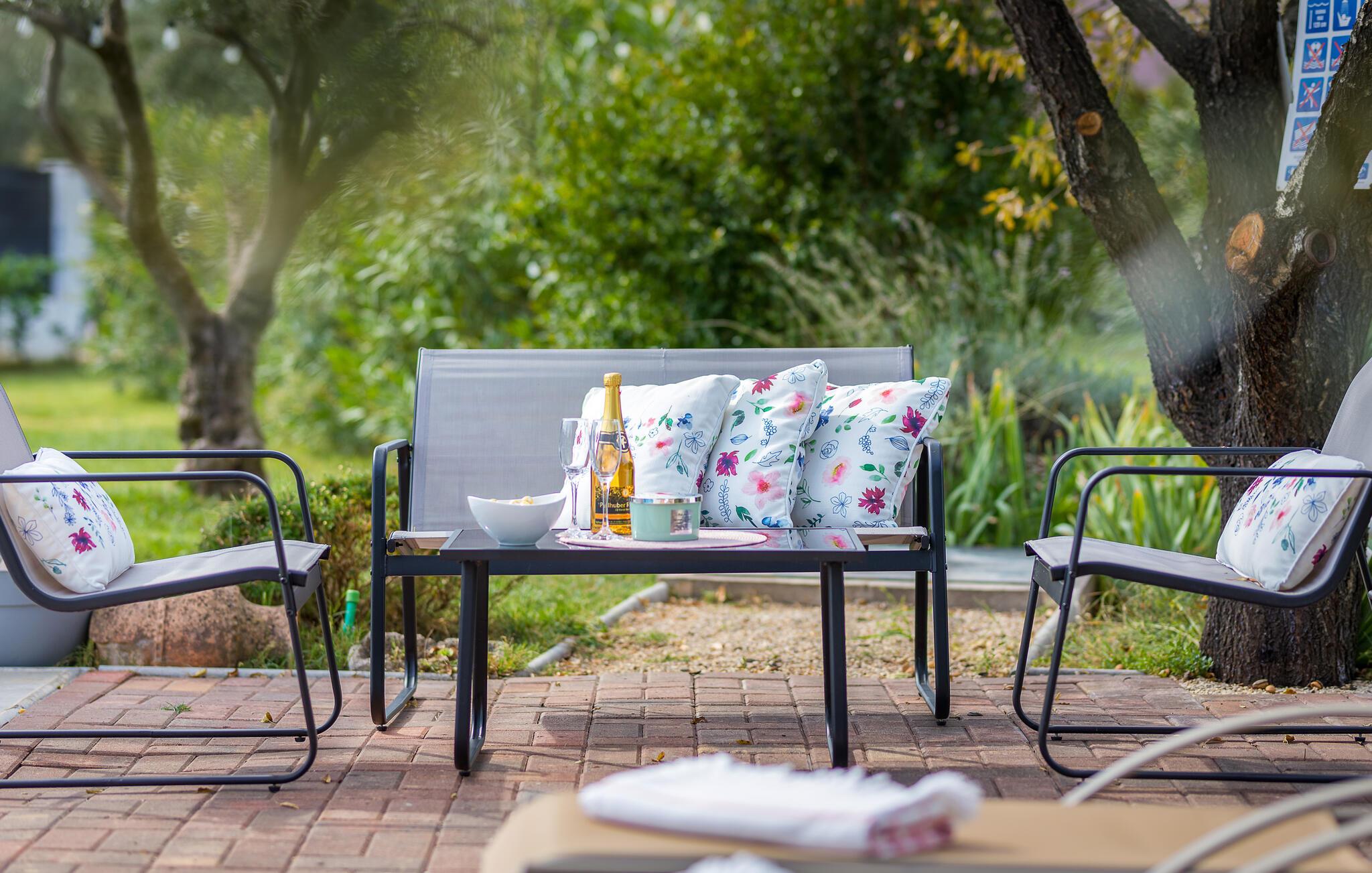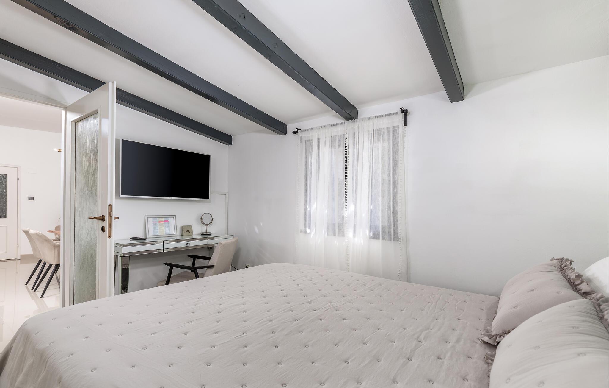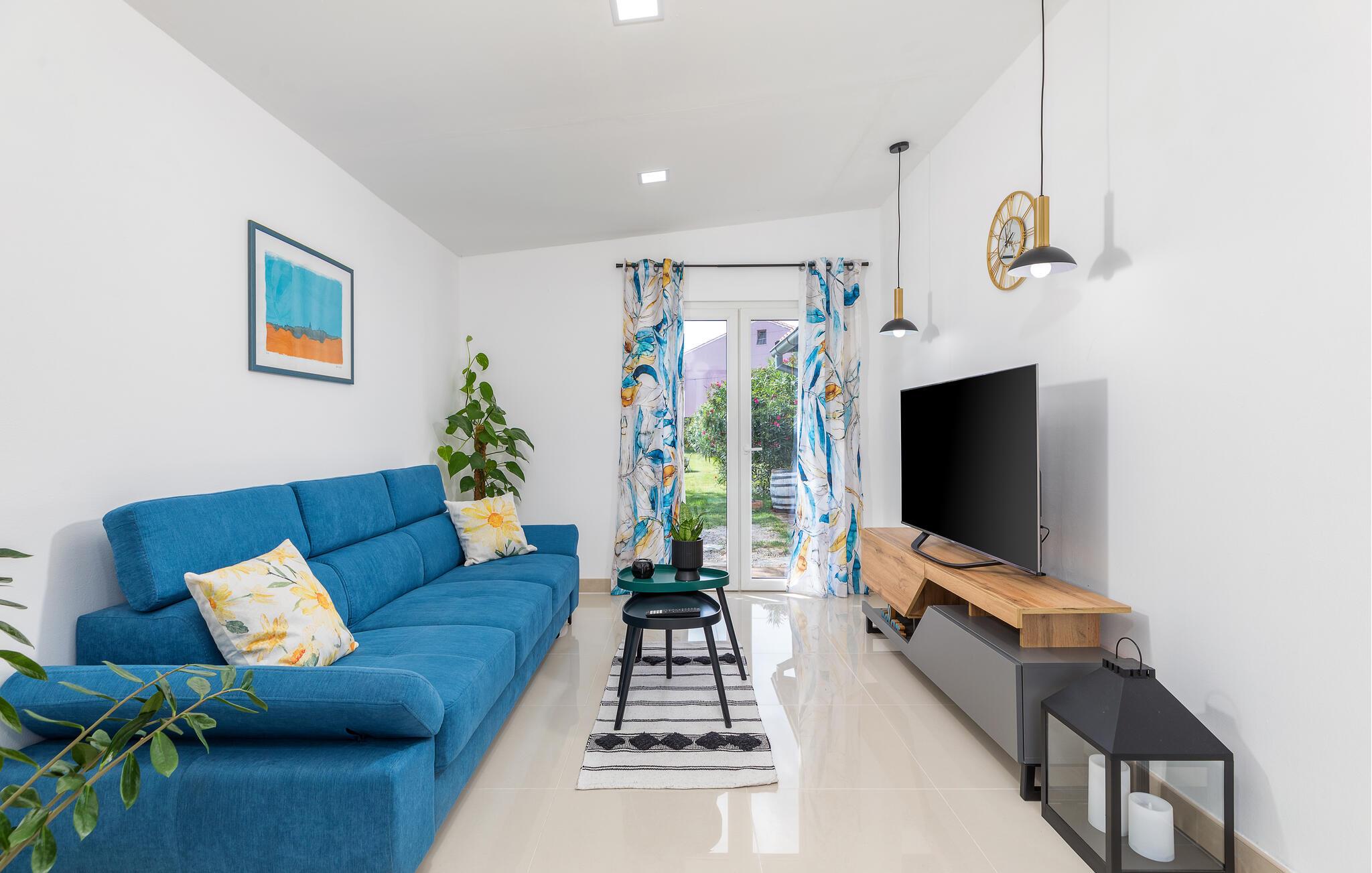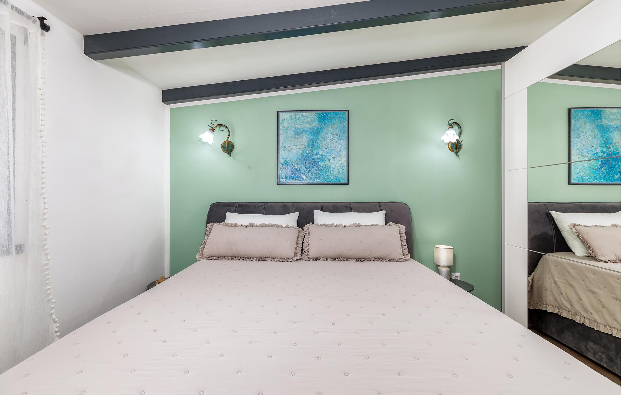 Begleitet von vielen Details, die ihm einen besonderen Charme verleihen werden Sie sich besonders wohlfühlen. Hier gibt es ein Schlafzimmer und ist mit allen notwendigen Geräten von ausgestattet. Vor dem Haus gibt es eine große überdachte Terrasse zum geselligen Beisammensein und Genießen, während es eine weitere Terrasse mit Esstisch und Grill gibt.