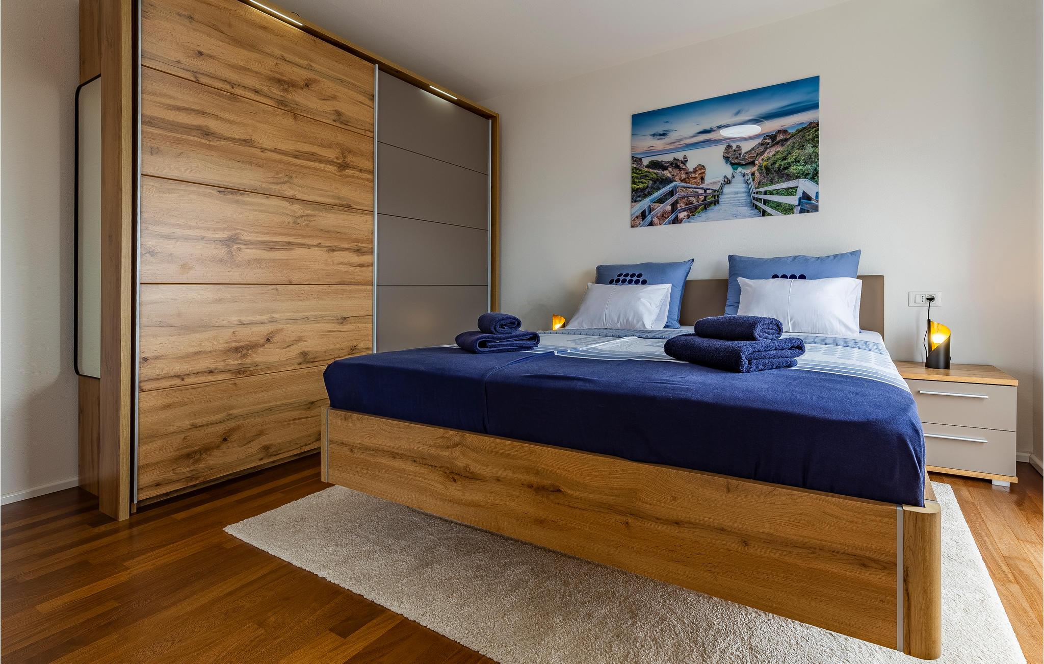 Vodnjan ist berühmt für die wunderschöne Kirche St. Blasius, in der Sie die erhaltenen Mumien bewundern können, sowie für die Herstellung eines der besten Olivenöle. In der Nähe befinden sich Supermärkte und Restaurants, sowie ein Kinderspielplatz in einem großen Park. Die nächsten Badestrände befinden sich in Fažana, von wo aus Sie mit dem Boot in den Nationalpark Brijuni fahren können.