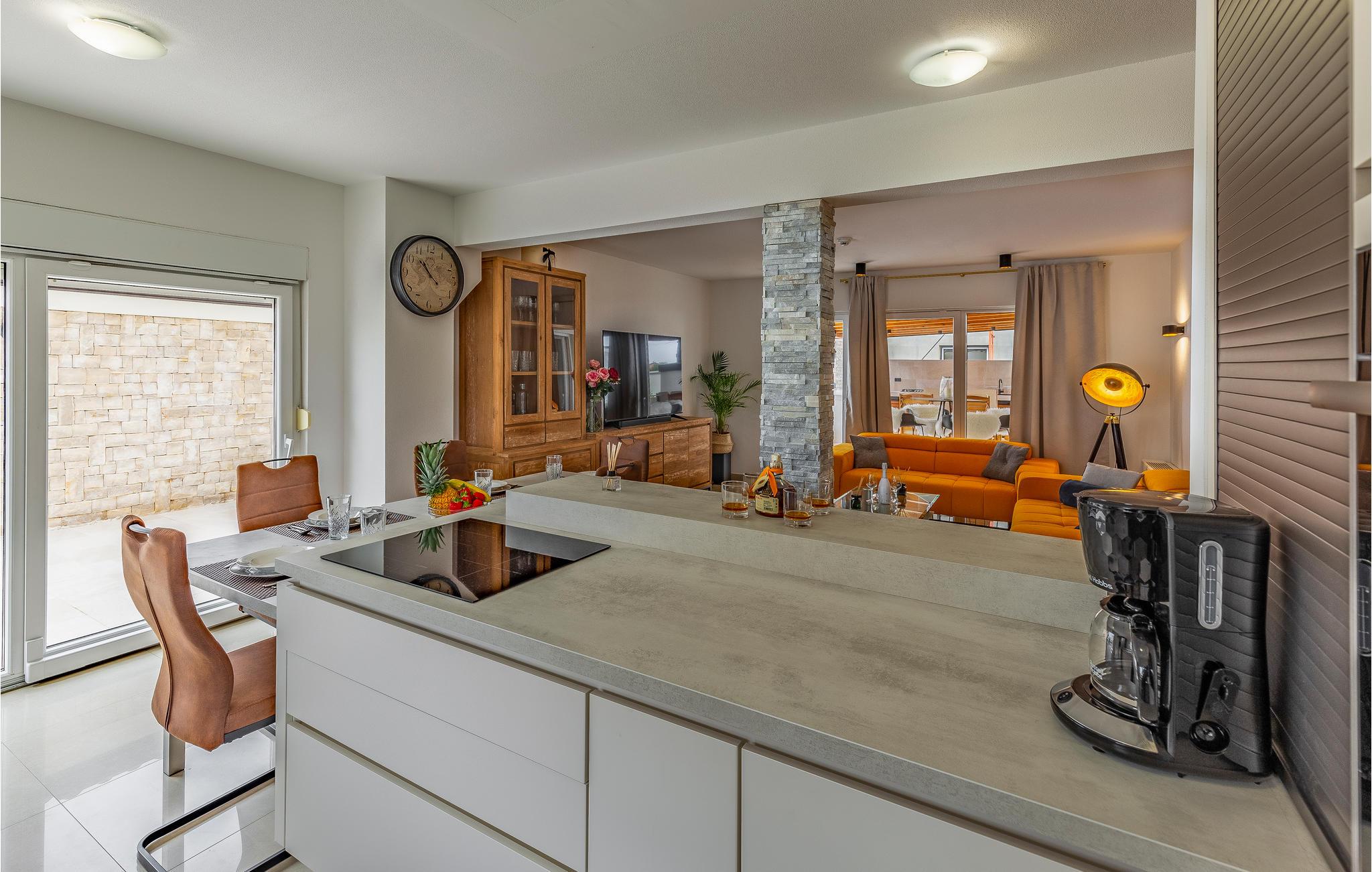 Dieses gemütlich und idyllisch eingerichtete Ferienhaus wird Ihnen besonders gefallen. Die geschmackvollen Möbel in Verbindung mit herzlichen Dekorationen erschafft eine wunderbare Atmosphäre zum Wohlfühlen. Hier können Sie es sich mit Ihrer Familie für einen Urlaub bequem machen und die Zeit in Kroatien genießen, während Sie auf nichts verzichten müssen, um einen entspannten Urlaub zu haben. Zudem hat dieses Ferienhaus einen Pool und ein schöner Garten, der zum Bräunen und Entspannen einlädt. Hier können Sie sich entspannt in den Sonnenliegen zurücklehnen oder mit Ihren Kindern im Garten spielen.