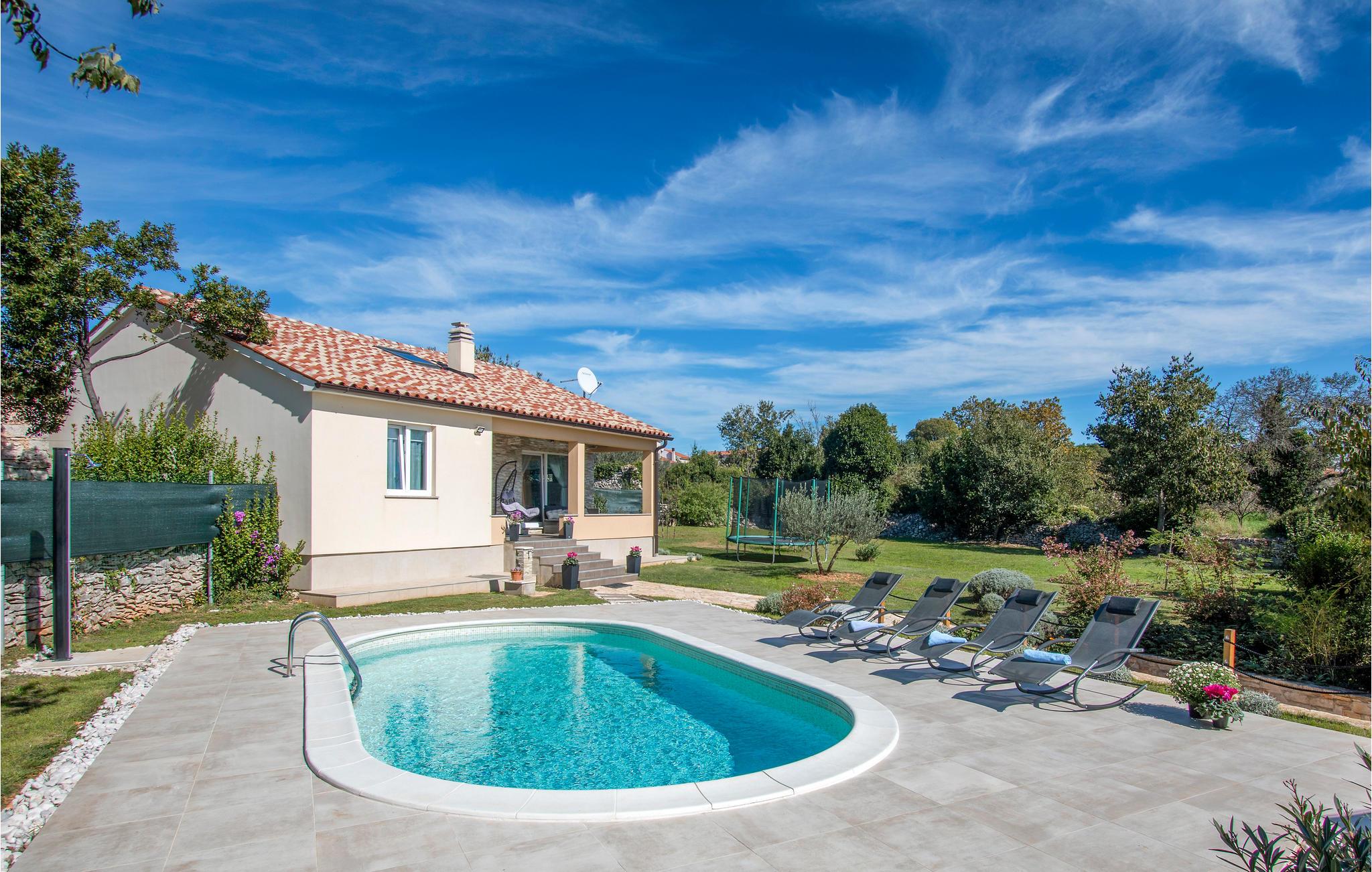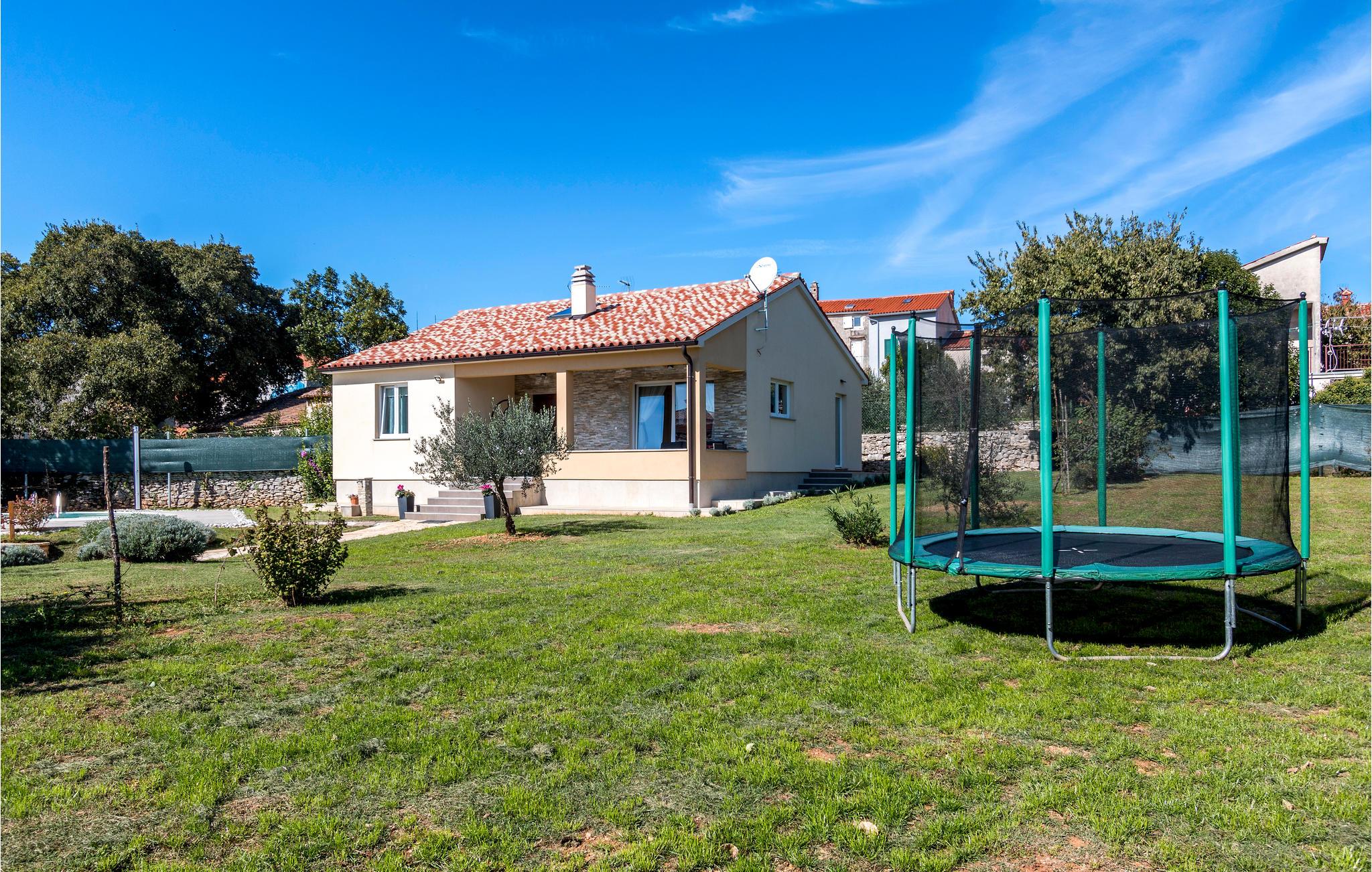 Dieses schöne Ferienhaus mit Pool liegt im Zentrum von Vodnjan und besteht aus zwei Schlafzimmern, von denen eins mit Galerie ist, wo die Kinder spielen können. Auf dem Grundstück gibt es viele Freizeitmöglichkeiten für jede Generation. Erleben Sie angenehme Abende auf der Terrasse und bereiten Sie köstliche Gerichte am Grill zu. Besuchen Sie den Urlaubsort Fažana und unternehmen Sie eine Schifffahrt zu den Brijuni Inseln. Entdecken Sie die historische Stadt Pula mit dem berühmten Amphitheater „Arena“ und vielen Veranstaltungen im Sommer. Der Parkplatz ist nur für die Gäste und befindet sich gegenüber dem Grundstück.