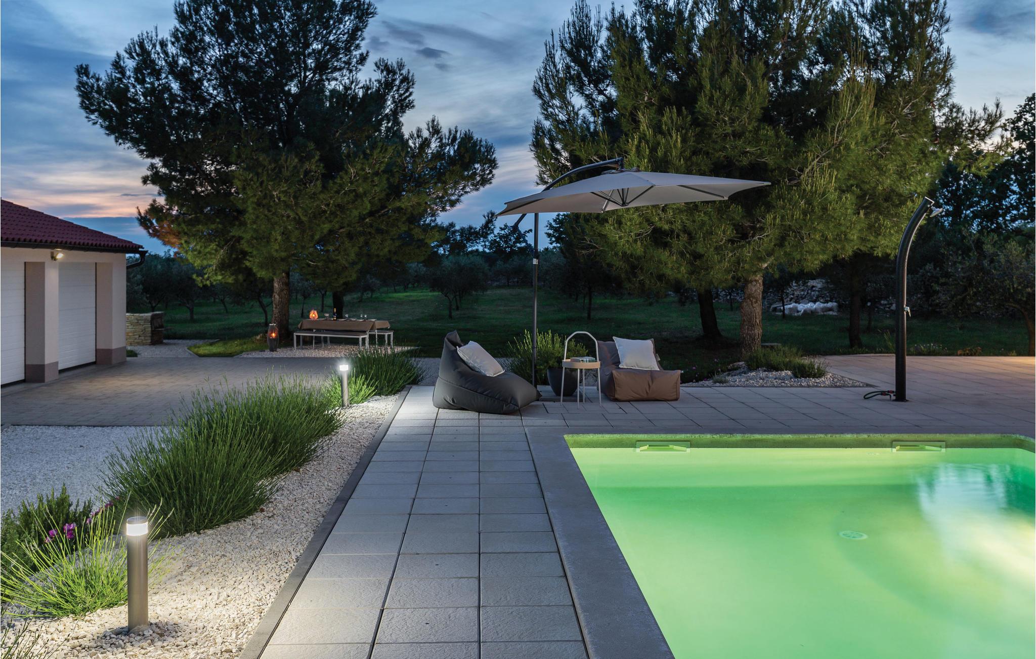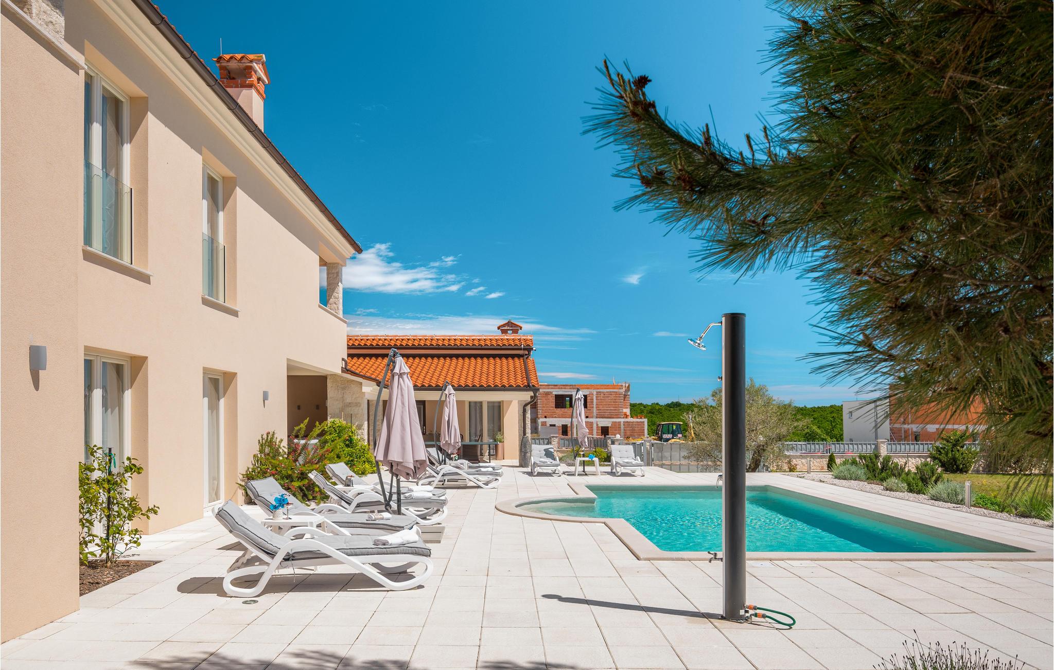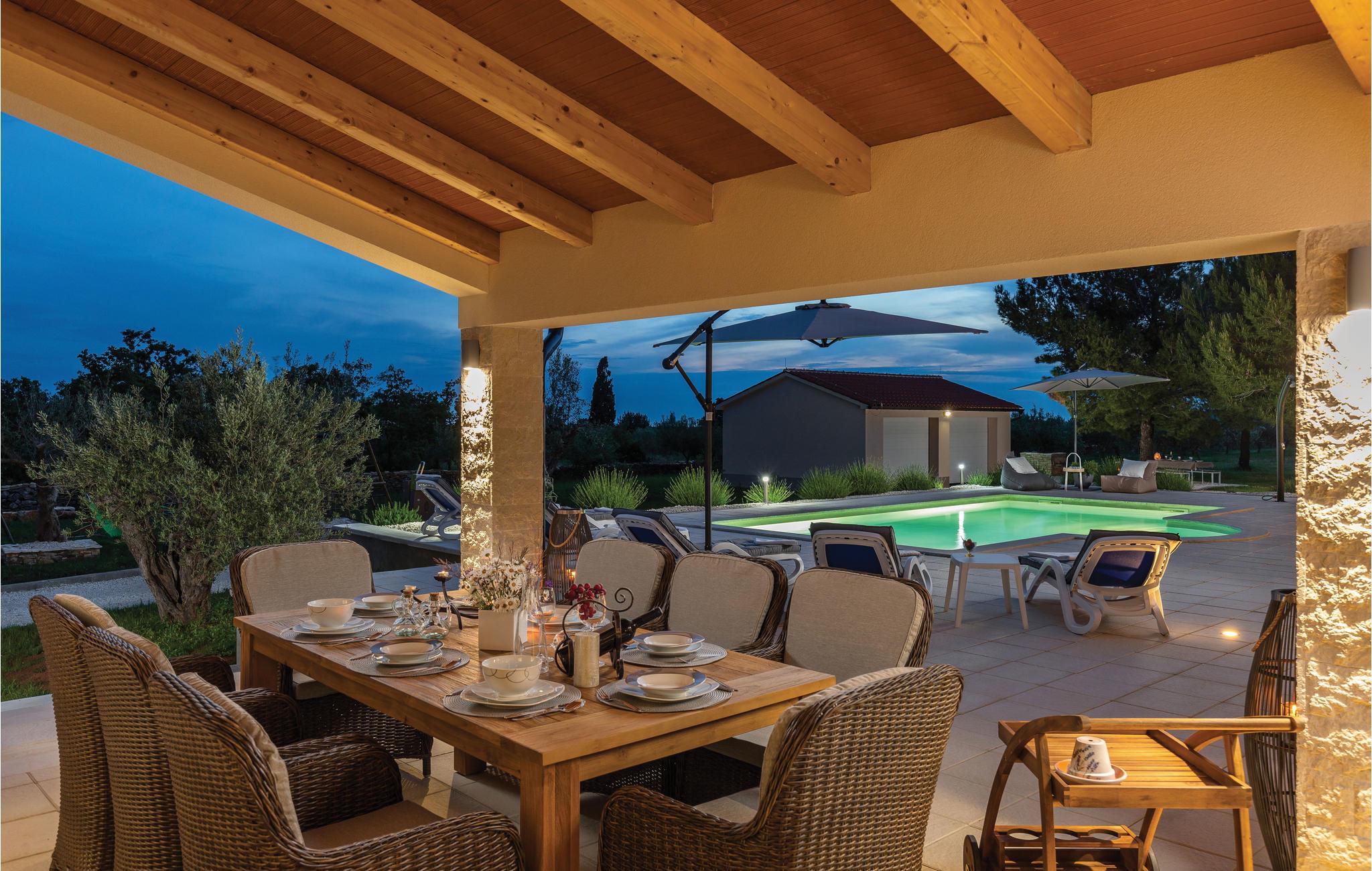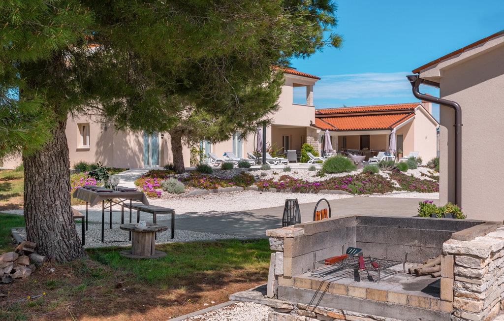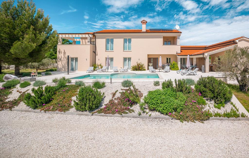 Dieses luxuriöse Ferienhaus mit Pool liegt in einem kleinen istrischen Dorf neben Vodnjan, nicht weit von Pula, der größten Stadt Istriens, entfernt. Das Haus befindet sich auf einem umzäunten Grundstück mit herrlichem Olivenhain und bietet viele Freizeitmöglichkeiten. Jedes Detail im Haus ist liebevoll geplant, für maximalen Komfort und einen angenehmen Aufenthalt. Es stehen Ihnen vier Schlafzimmer zur Verfügung, von denen drei mit Bad en Suite sind. Für Ihre körperliche Wellness gibt es einen Fitnessraum, Sauna und Massagestuhl. Gesellige Stunden erleben Sie in der istrischen „Konoba“. Genießen Sie die vielen überdachten Terrassen und das Sonnendeck am Pool sowie den mediterranen Garten mit aromatischen Kräutern und Pflanzen.