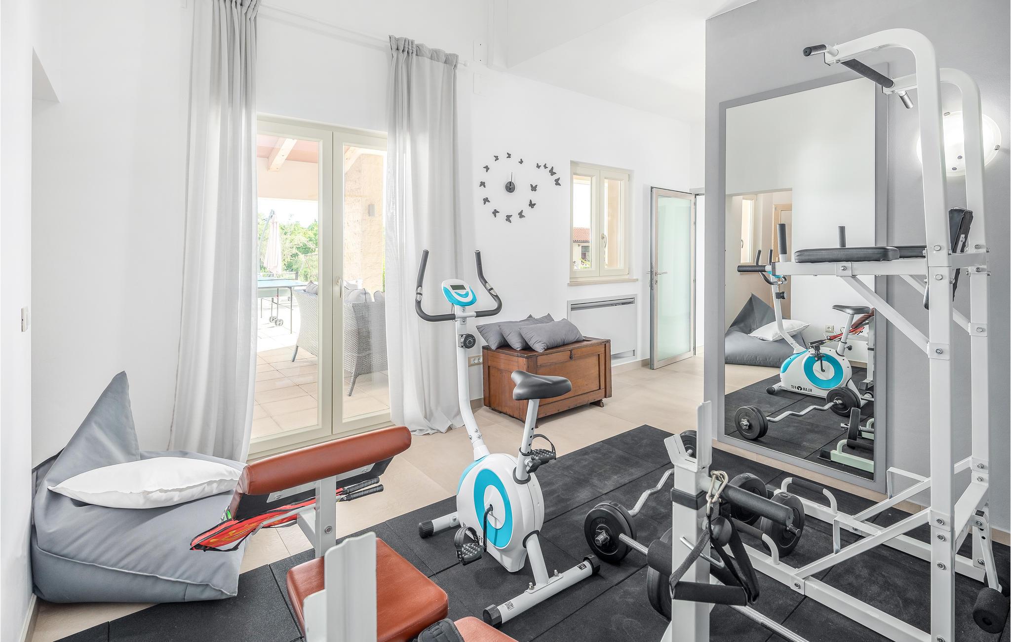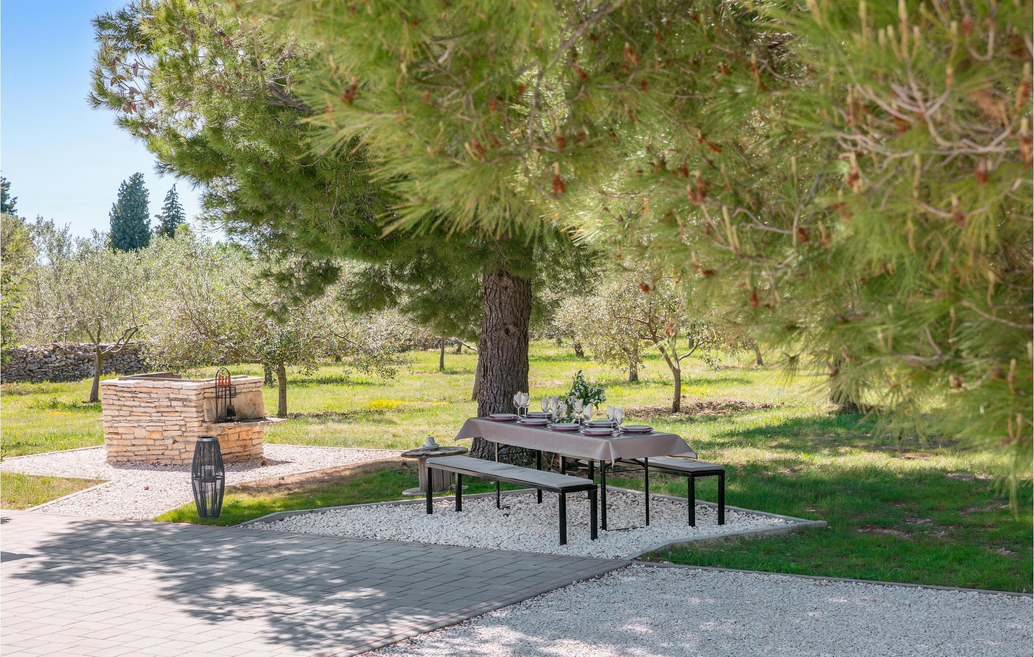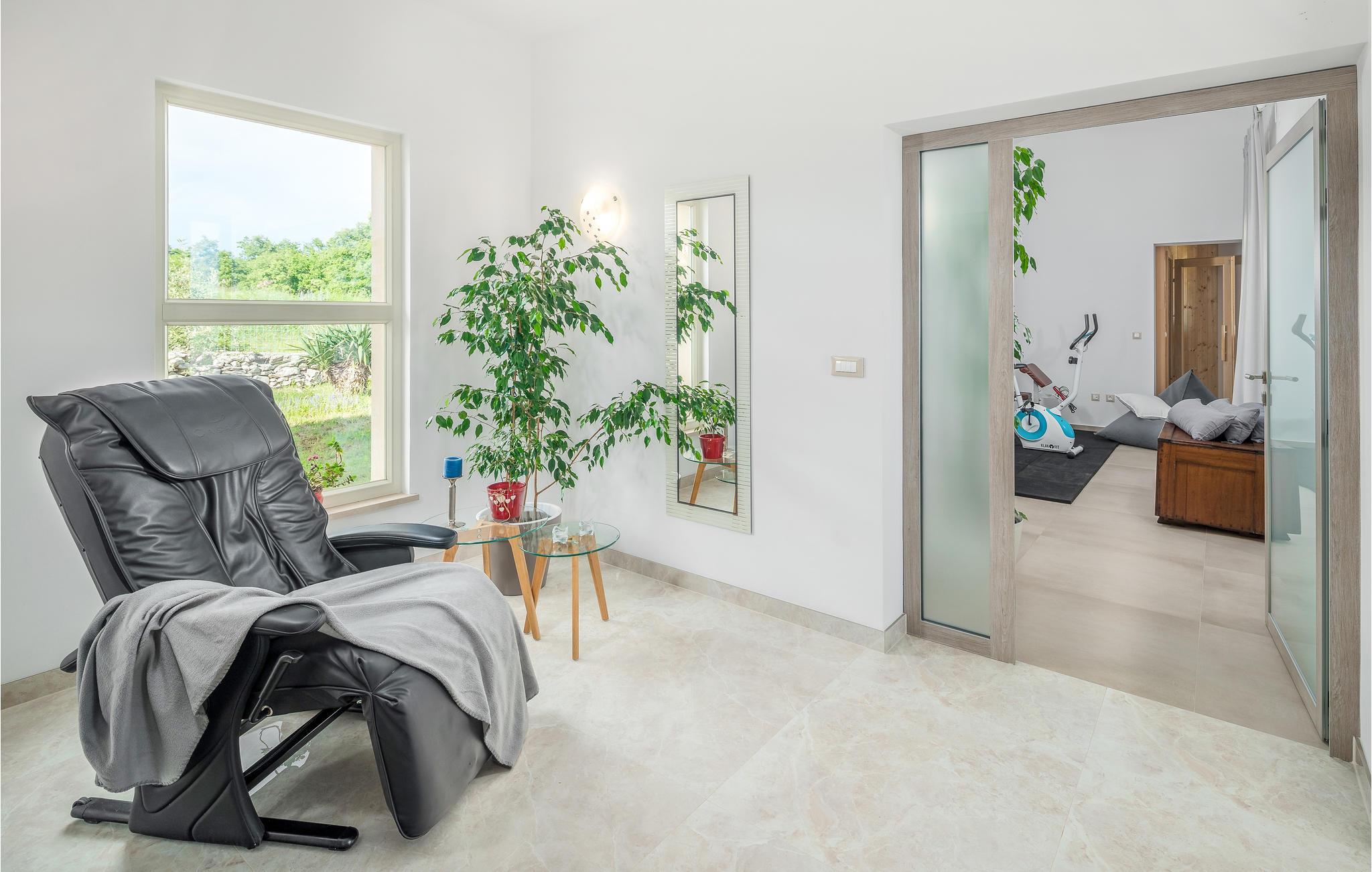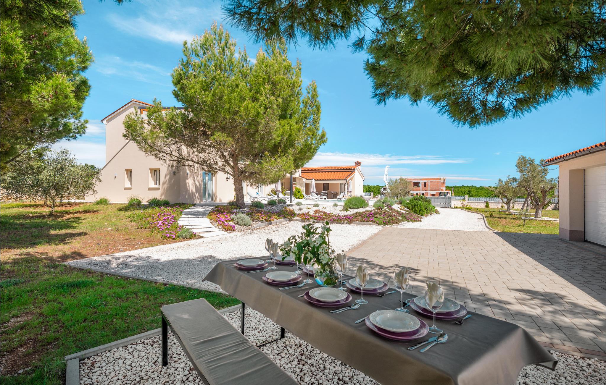 Dieses luxuriöse Ferienhaus mit Pool liegt in einem kleinen istrischen Dorf neben Vodnjan, nicht weit von Pula, der größten Stadt Istriens, entfernt. Das Haus befindet sich auf einem umzäunten Grundstück mit herrlichem Olivenhain und bietet viele Freizeitmöglichkeiten. Jedes Detail im Haus ist liebevoll geplant, für maximalen Komfort und einen angenehmen Aufenthalt. Es stehen Ihnen vier Schlafzimmer zur Verfügung, von denen drei mit Bad en Suite sind. Für Ihre körperliche Wellness gibt es einen Fitnessraum, Sauna und Massagestuhl. Gesellige Stunden erleben Sie in der istrischen „Konoba“. Genießen Sie die vielen überdachten Terrassen und das Sonnendeck am Pool sowie den mediterranen Garten mit aromatischen Kräutern und Pflanzen.