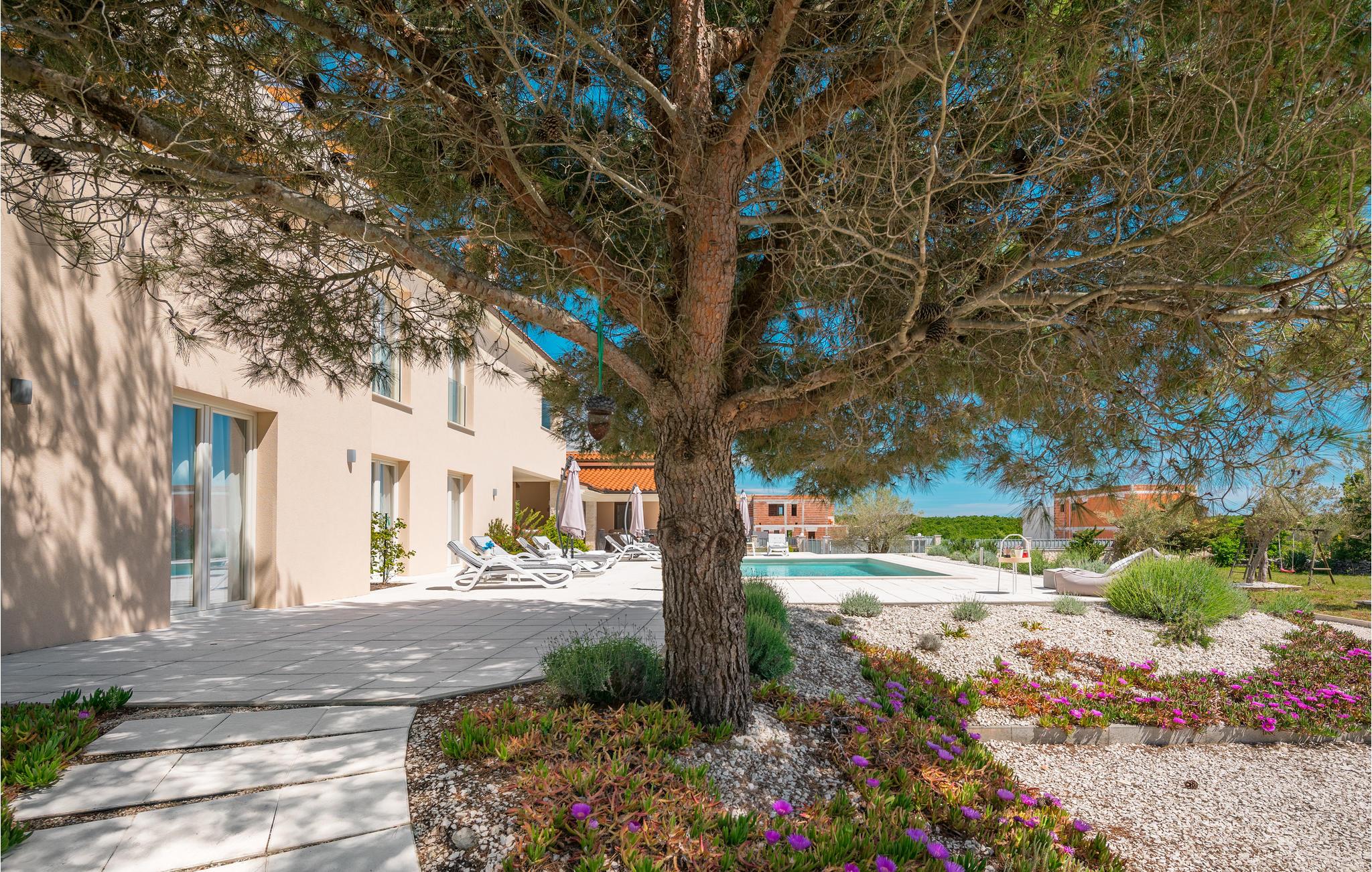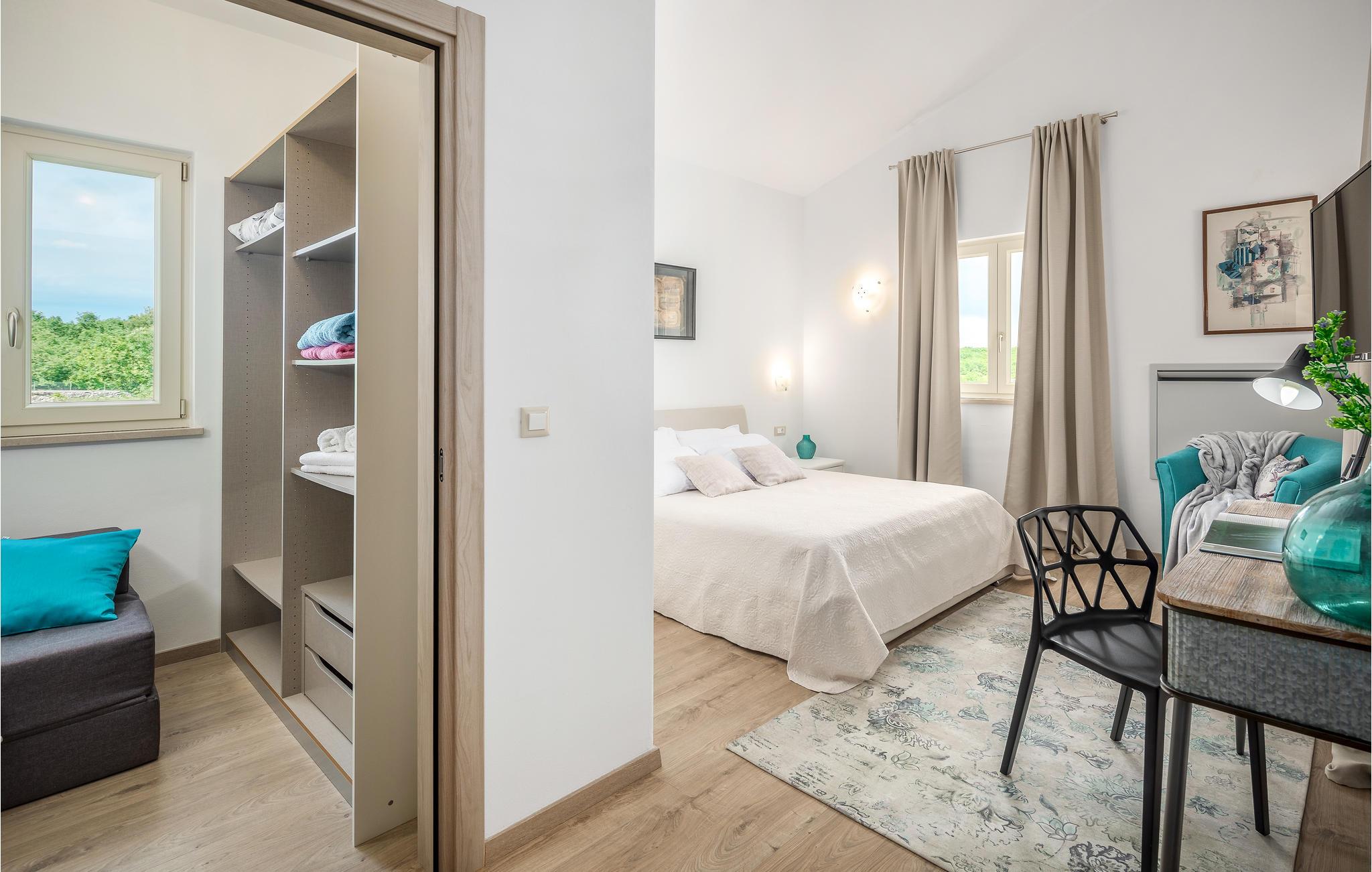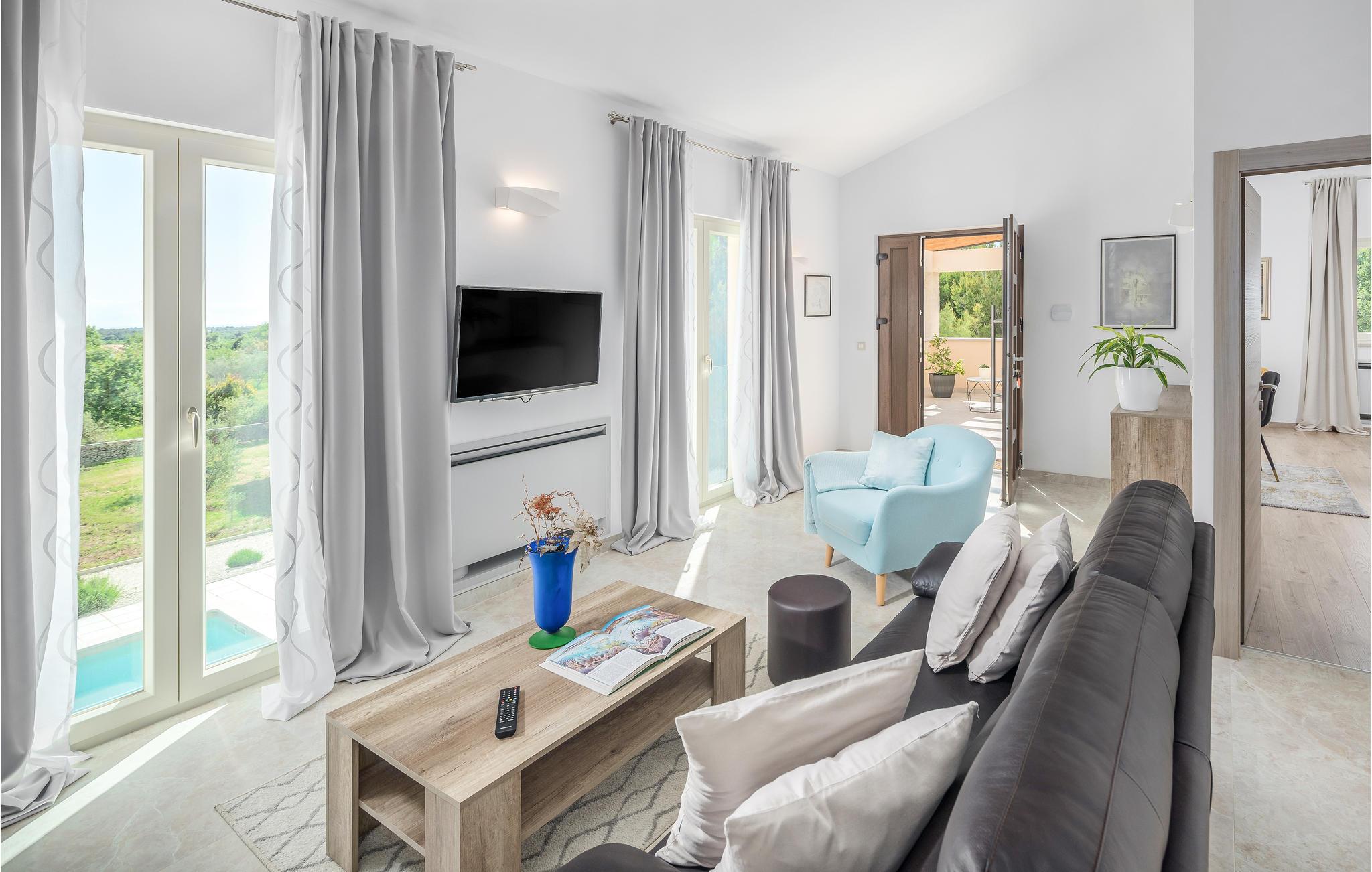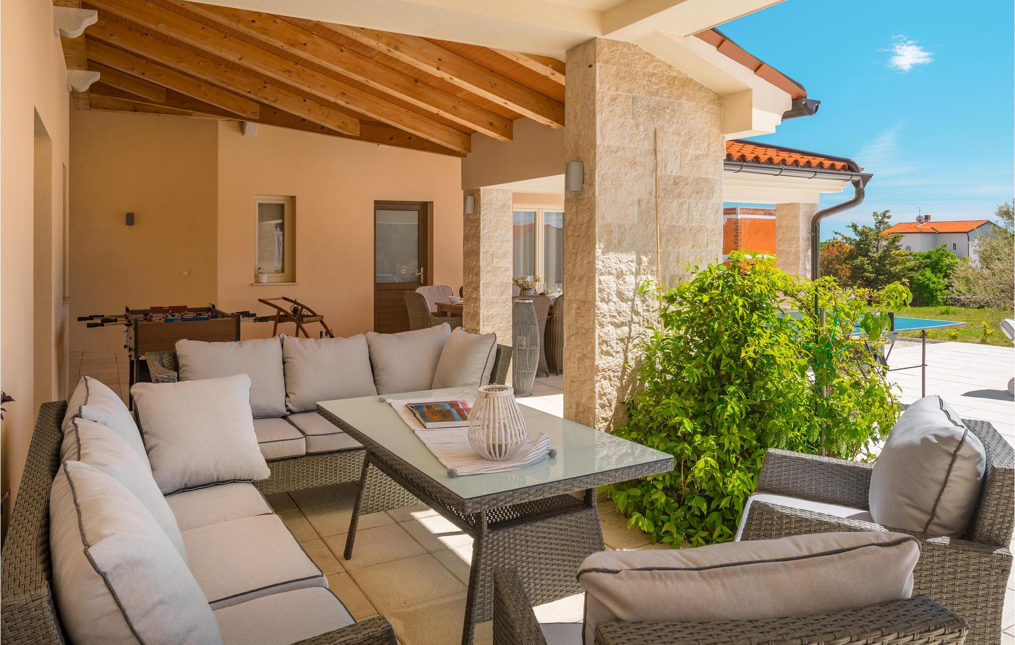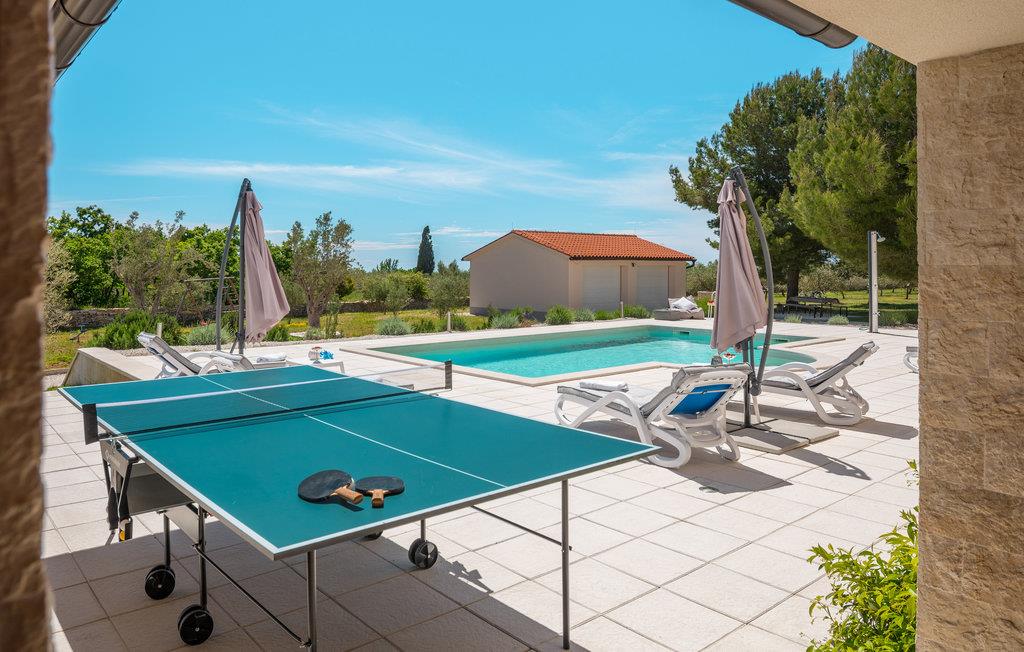 Dieses luxuriöse Ferienhaus mit Pool liegt in einem kleinen istrischen Dorf neben Vodnjan, nicht weit von Pula, der größten Stadt Istriens, entfernt. Das Haus befindet sich auf einem umzäunten Grundstück mit herrlichem Olivenhain und bietet viele Freizeitmöglichkeiten. Jedes Detail im Haus ist liebevoll geplant, für maximalen Komfort und einen angenehmen Aufenthalt. Es stehen Ihnen vier Schlafzimmer zur Verfügung, von denen drei mit Bad en Suite sind. Für Ihre körperliche Wellness gibt es einen Fitnessraum, Sauna und Massagestuhl. Gesellige Stunden erleben Sie in der istrischen „Konoba“. Genießen Sie die vielen überdachten Terrassen und das Sonnendeck am Pool sowie den mediterranen Garten mit aromatischen Kräutern und Pflanzen.