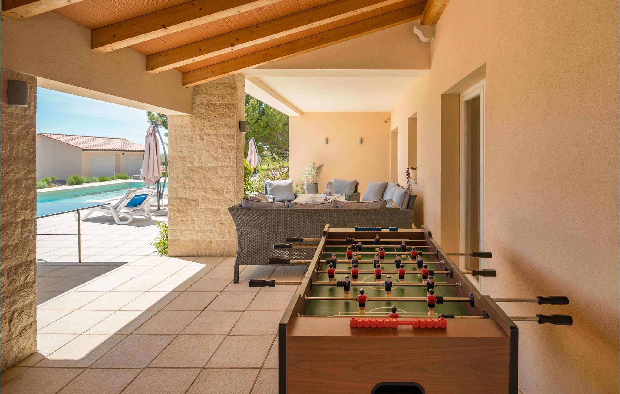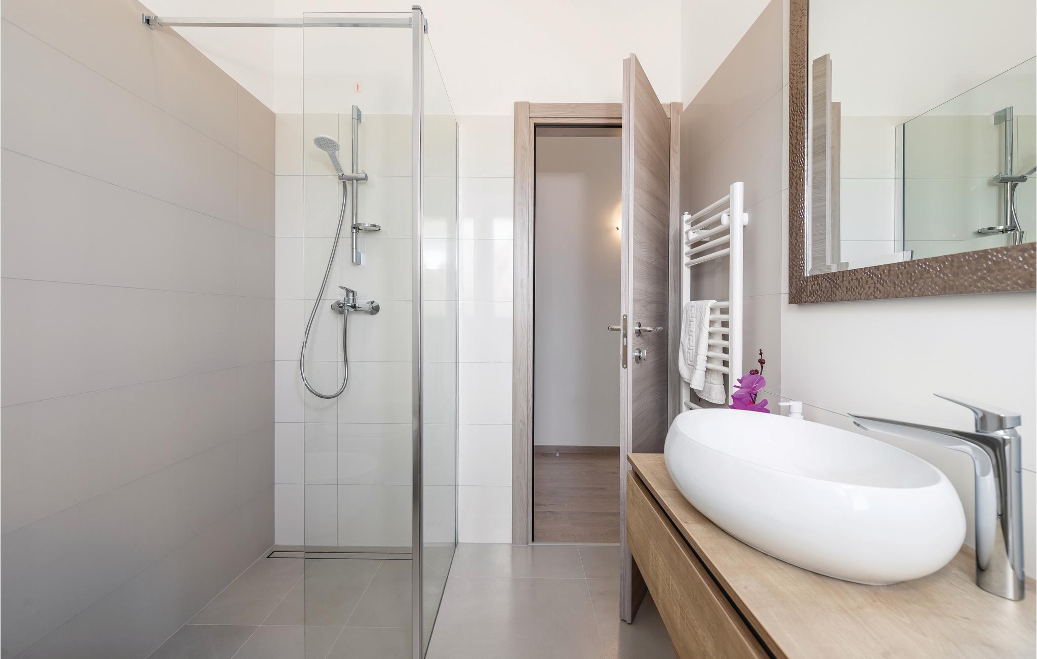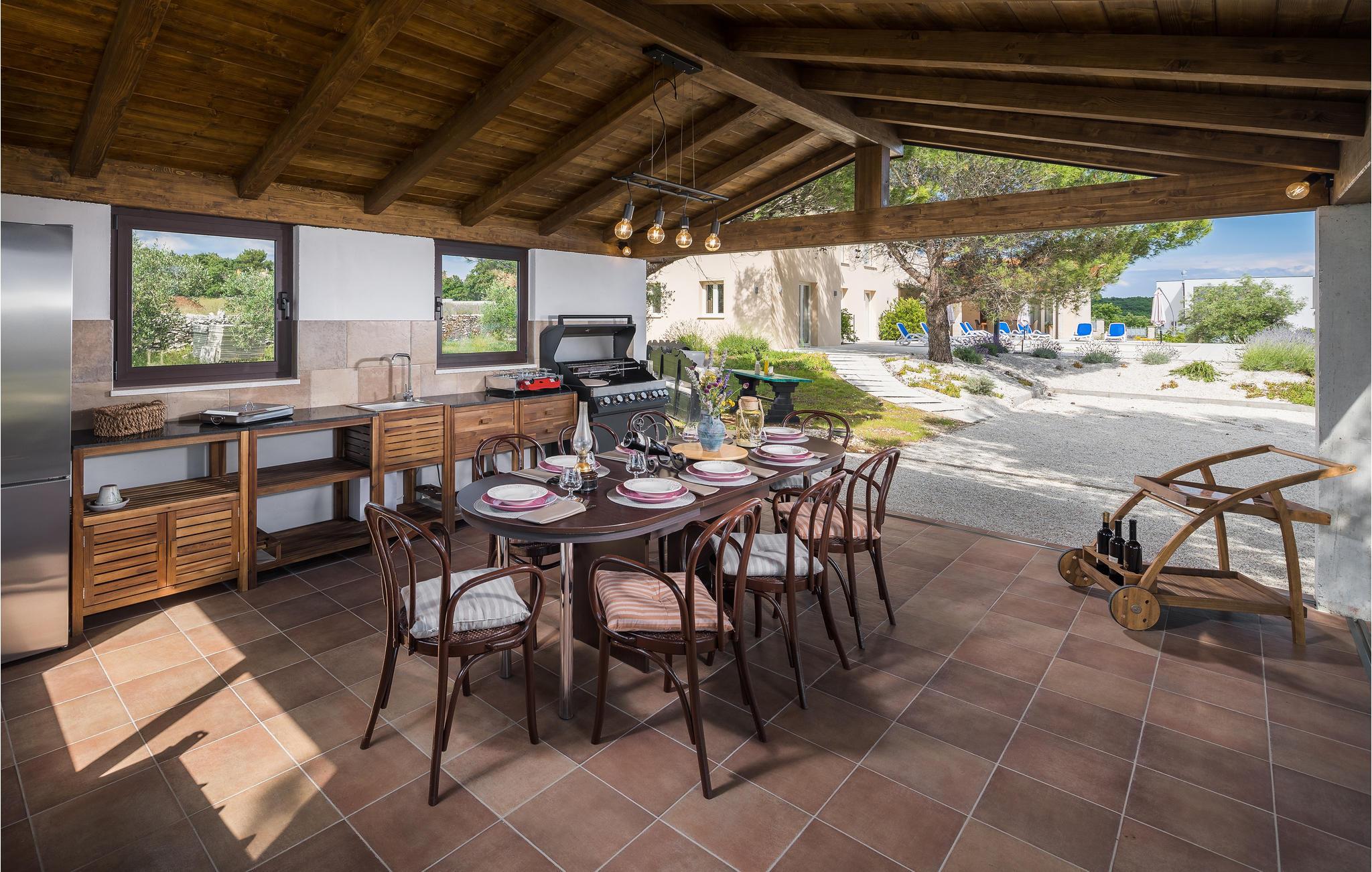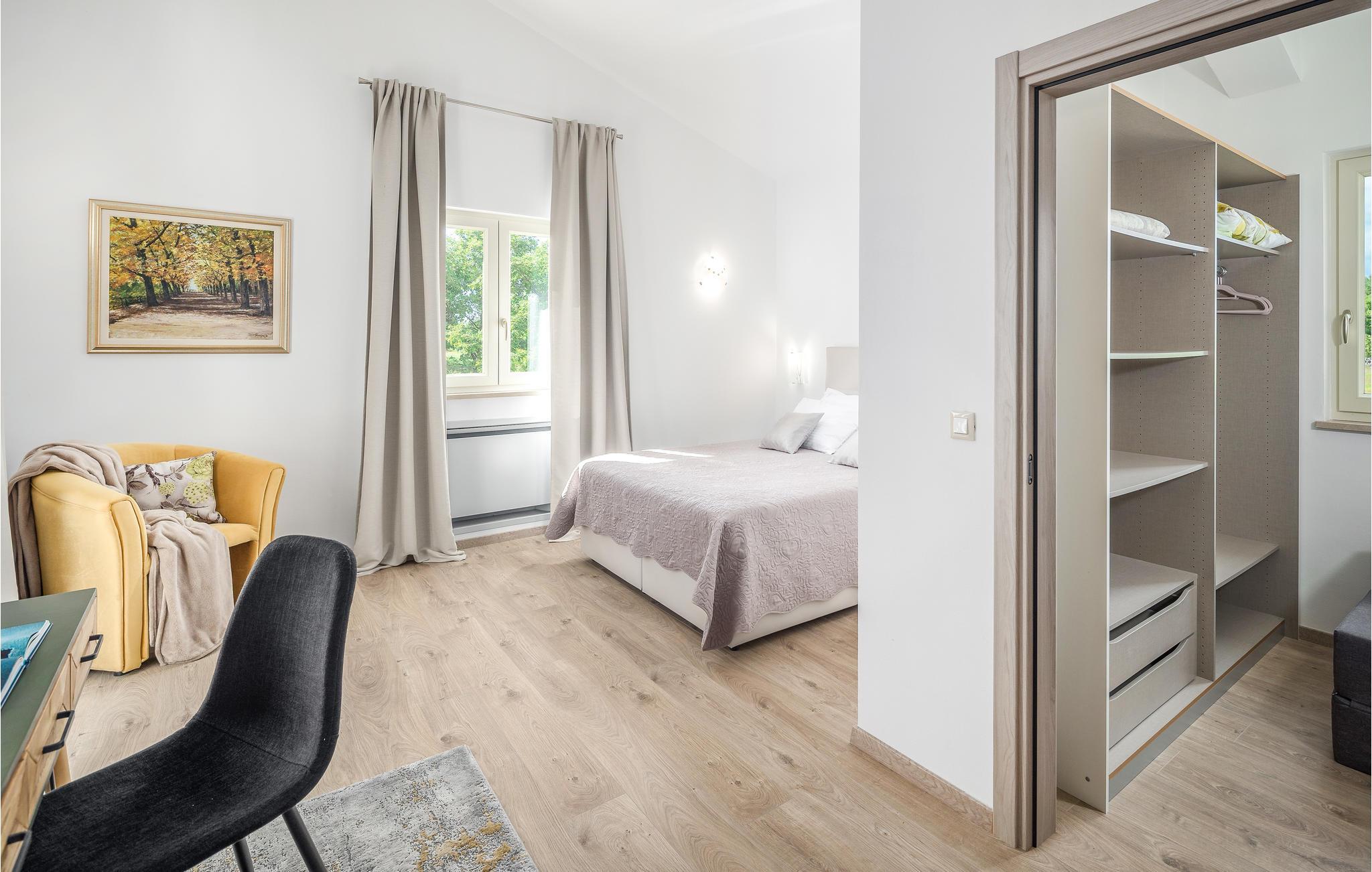 Dieses luxuriöse Ferienhaus mit Pool liegt in einem kleinen istrischen Dorf neben Vodnjan, nicht weit von Pula, der größten Stadt Istriens, entfernt. Das Haus befindet sich auf einem umzäunten Grundstück mit herrlichem Olivenhain und bietet viele Freizeitmöglichkeiten. Jedes Detail im Haus ist liebevoll geplant, für maximalen Komfort und einen angenehmen Aufenthalt. Es stehen Ihnen vier Schlafzimmer zur Verfügung, von denen drei mit Bad en Suite sind. Für Ihre körperliche Wellness gibt es einen Fitnessraum, Sauna und Massagestuhl. Gesellige Stunden erleben Sie in der istrischen „Konoba“. Genießen Sie die vielen überdachten Terrassen und das Sonnendeck am Pool sowie den mediterranen Garten mit aromatischen Kräutern und Pflanzen.