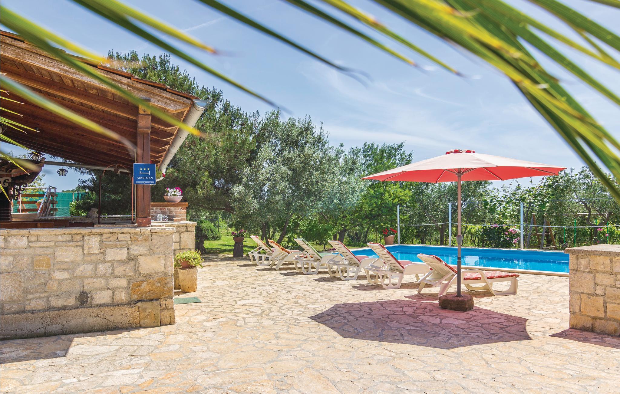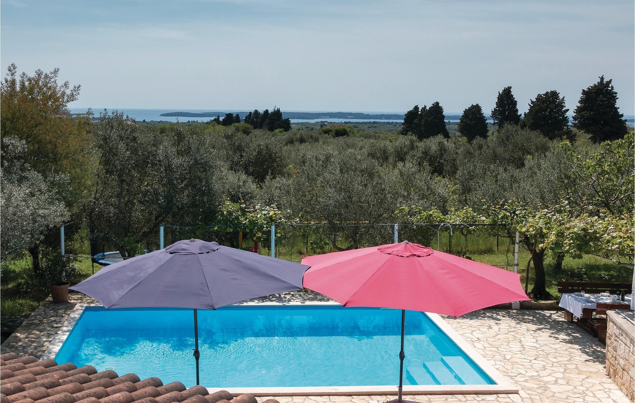 Dieses schöne Ferienhaus ist umgeben vom Weinberg und Olivenhainen. Es ist modern. Das Haus besteht aus 2 Apartments mit Außentreppen. Entspannen Sie sich im Schatten der überdachten Terrasse mit herrlichem Panoramablick auf die Inselgruppe Brioni, der Sie bezaubern wird. In den heißen Sommermonaten erfrischen Sie sich im Swimmingpool, während sich Ihre Kinder die Zeit auf der Schaukel oder auf der Rutsche vertreiben. In der nahe gelegenen Taverne, die kroatische „Konoba“, oder im Restaurant kosten Sie das traditionelle gastronomische Angebot. Unternehmen Sie Fahrradtouren. Eine Fahrradstrecke führt ca. 100m an der Ferienunterkunft vorbei.