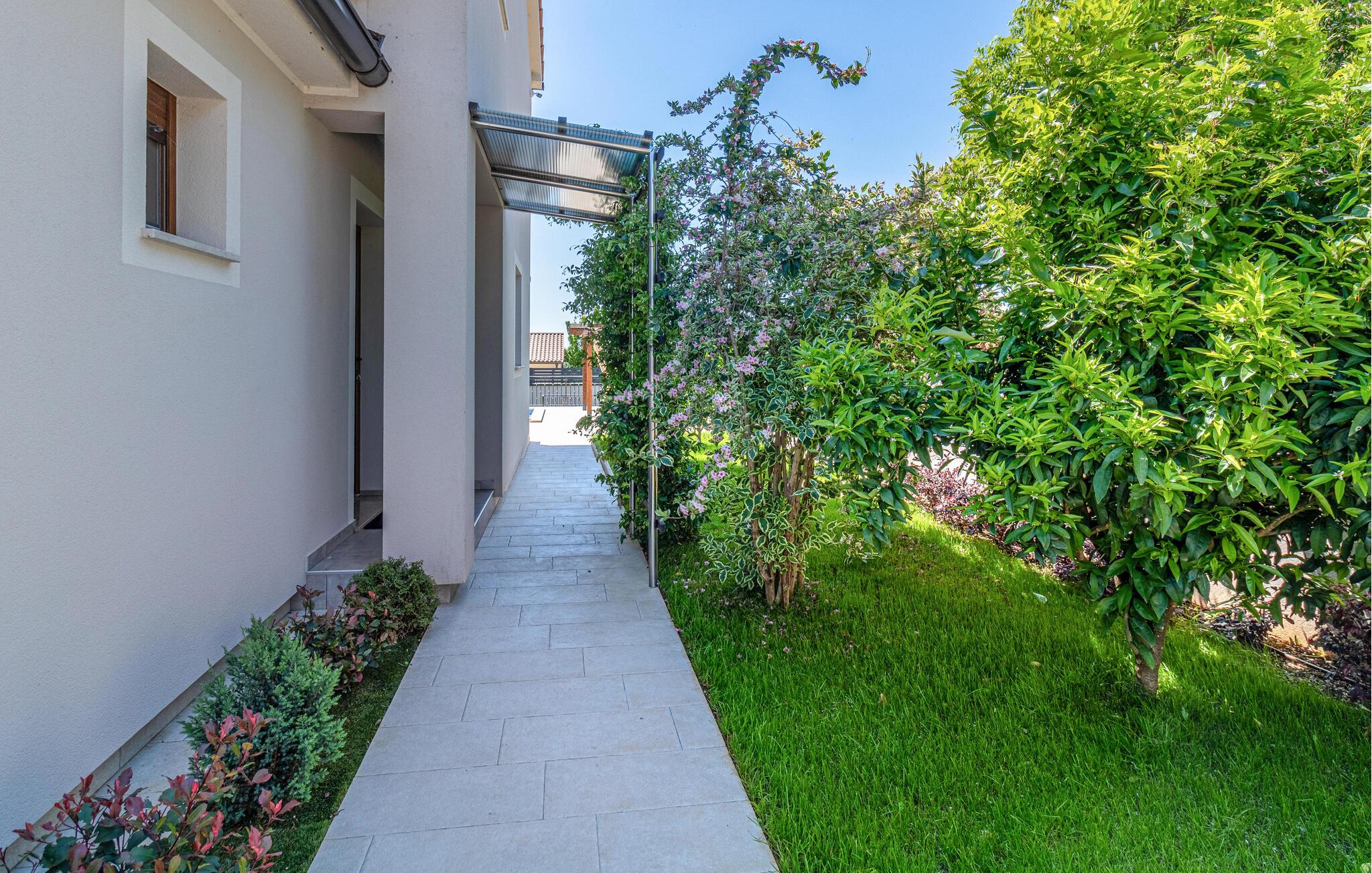 Dieses schöne Haus mit Pool lädt zum Ausruhen und Entspannen ein. Es befindet sich in einem ruhigen Teil von Galižana und ist wunderschön und modern eingerichtet. Die Wohnbereiche sind elegant und machen Ihren Aufenthalt noch angenehmer. Die geräumige überdachte Terrasse bietet Ihnen entspannende Momente, während Sie den Blick auf den Pool, die Landschaft und teilweise auf das Meer genießen. Der Außenpool dominiert im Garten und ist ideal für Erfrischungen an heißen Sommertagen, während die Kleinsten Badespaß erleben werden. Besuchen Sie die Stadt Vodnjan mit zahlreichen Veranstaltungen und das malerische Fazana mit schönen Stränden.