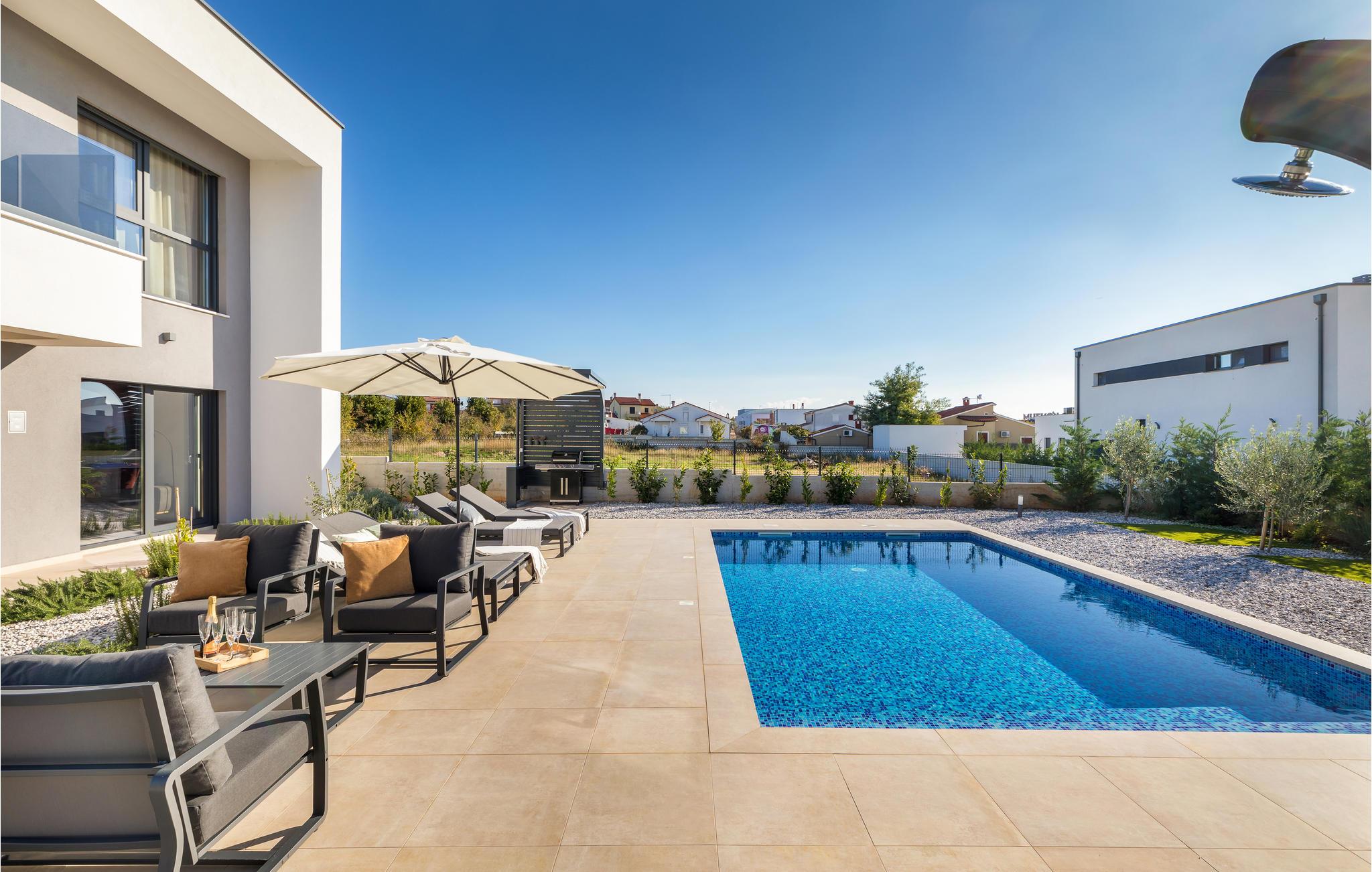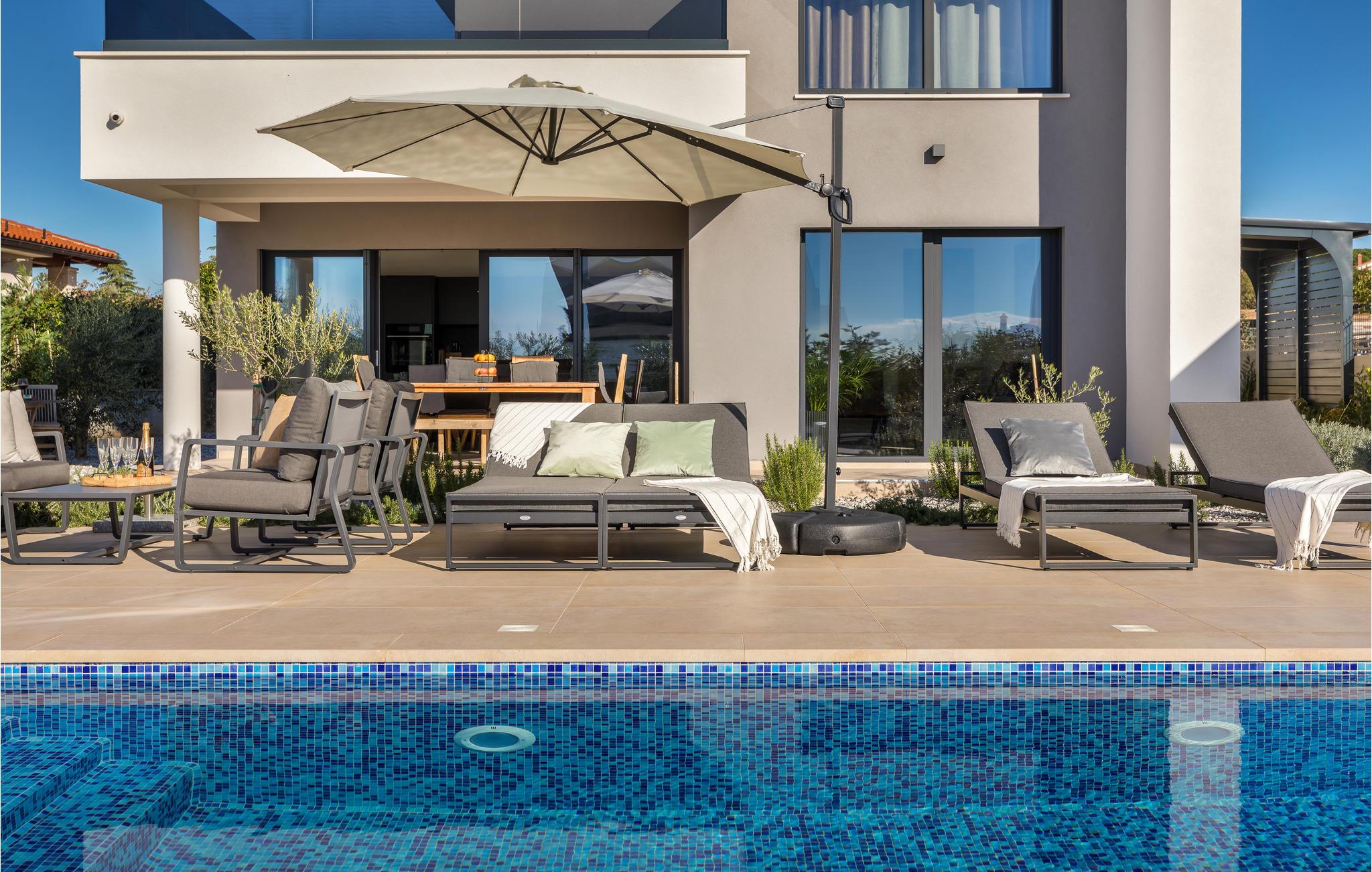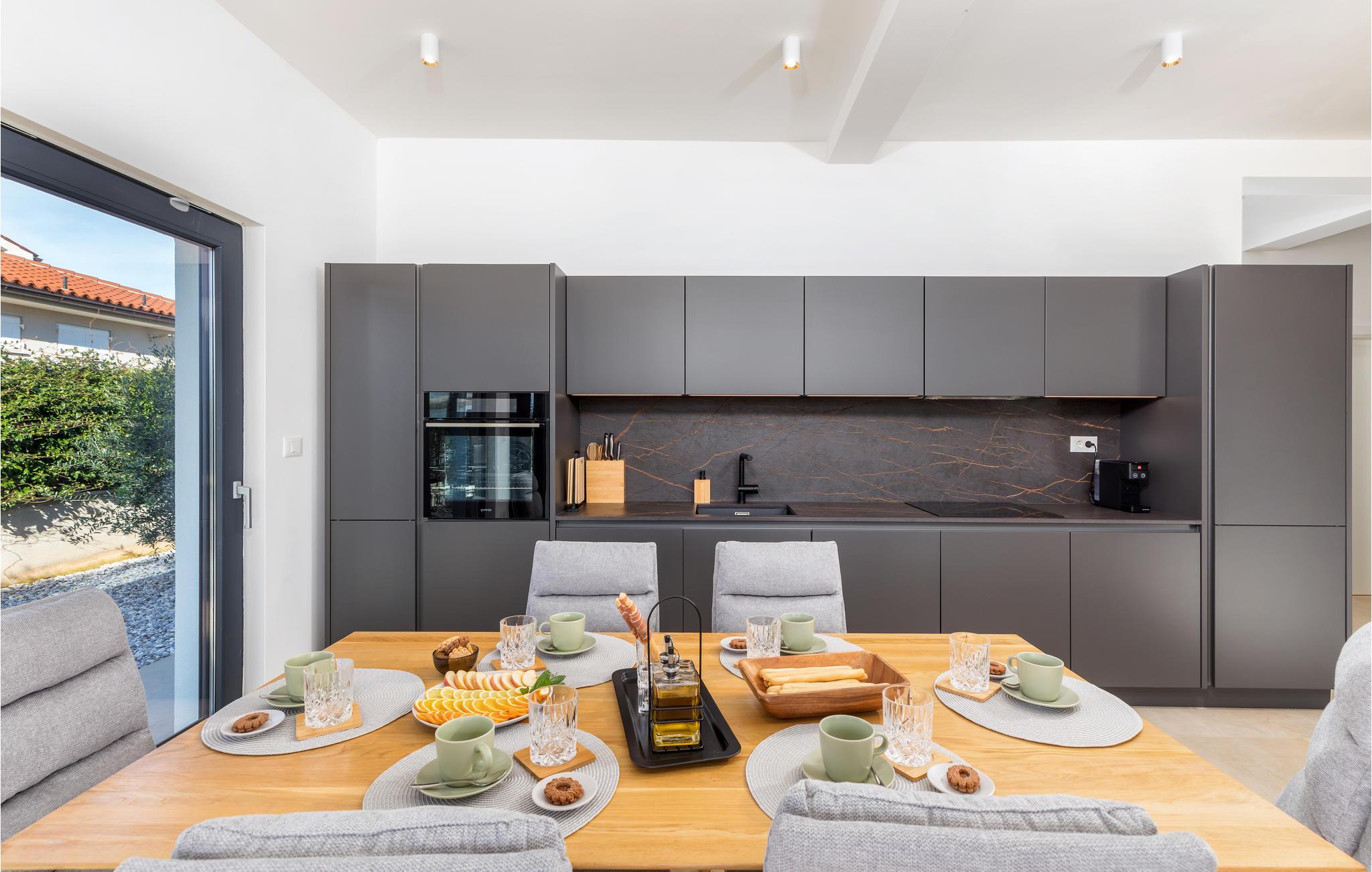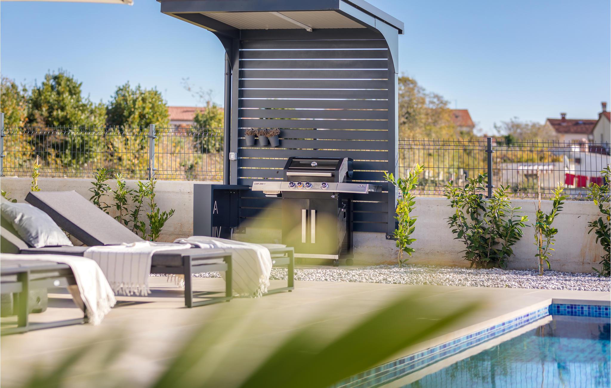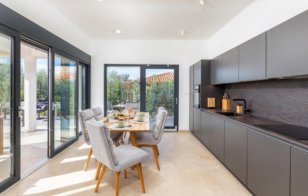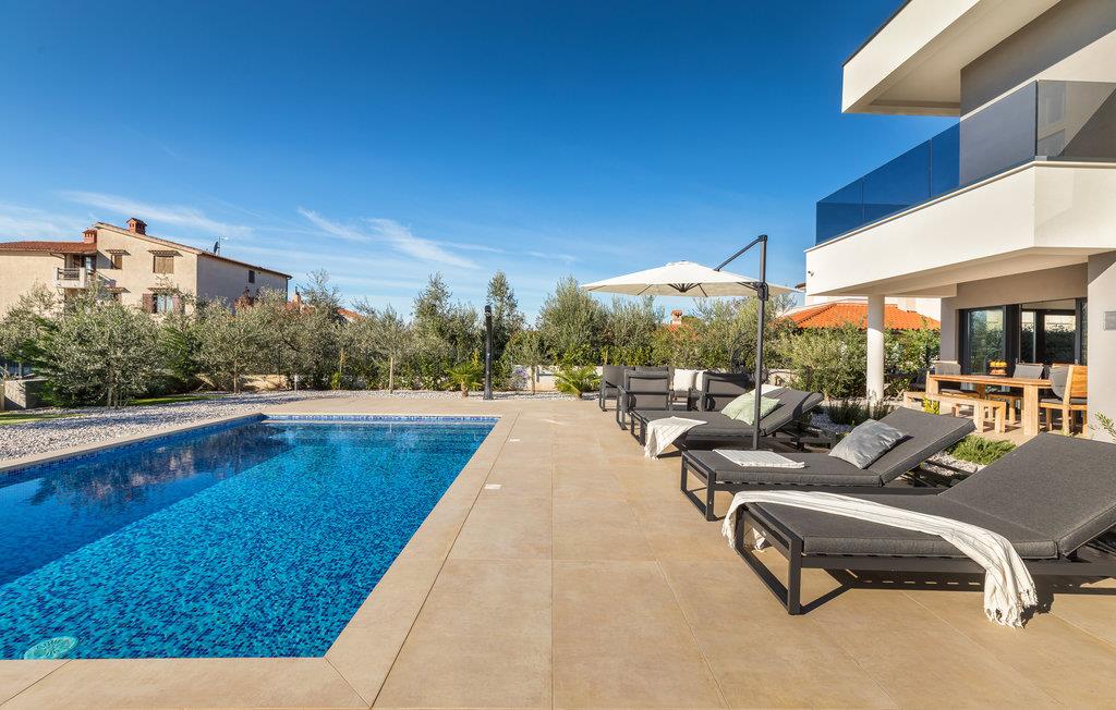 Wenn Sie an Ihren Urlaub in Istrien denken, schweben Ihnen bestimmt ein modernes Haus mit ansprechendem Komfort, schöner Dekoration und gemütlicher Atmosphäre vor. Genau das erwartet Sie in diesem schönen Haus. Freuen Sie sich auf die moderne Einrichtung, die z.B. das Kochen zum Vergnügen machen, auch die hochwertigen Möbel und ausgewählte Kunst an den Wänden schaffen eine Wohlfühlumgebung. Verbringen Sie erholsame Nächte in den Schlafzimmern mit privaten Badezimmern und kommen am Morgen zum Frühstück auf der Terrasse zusammen. Während die einen noch essen, können die Kleinen es wahrscheinlich nicht erwarten in den Pool zu springen und sich zu erfrischen.