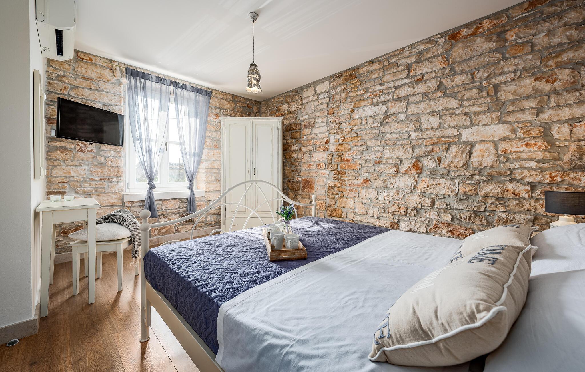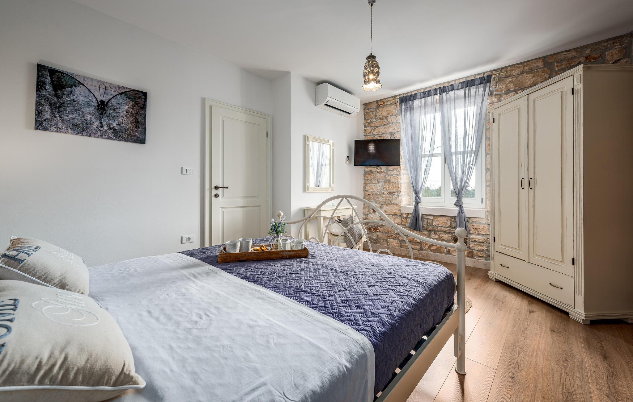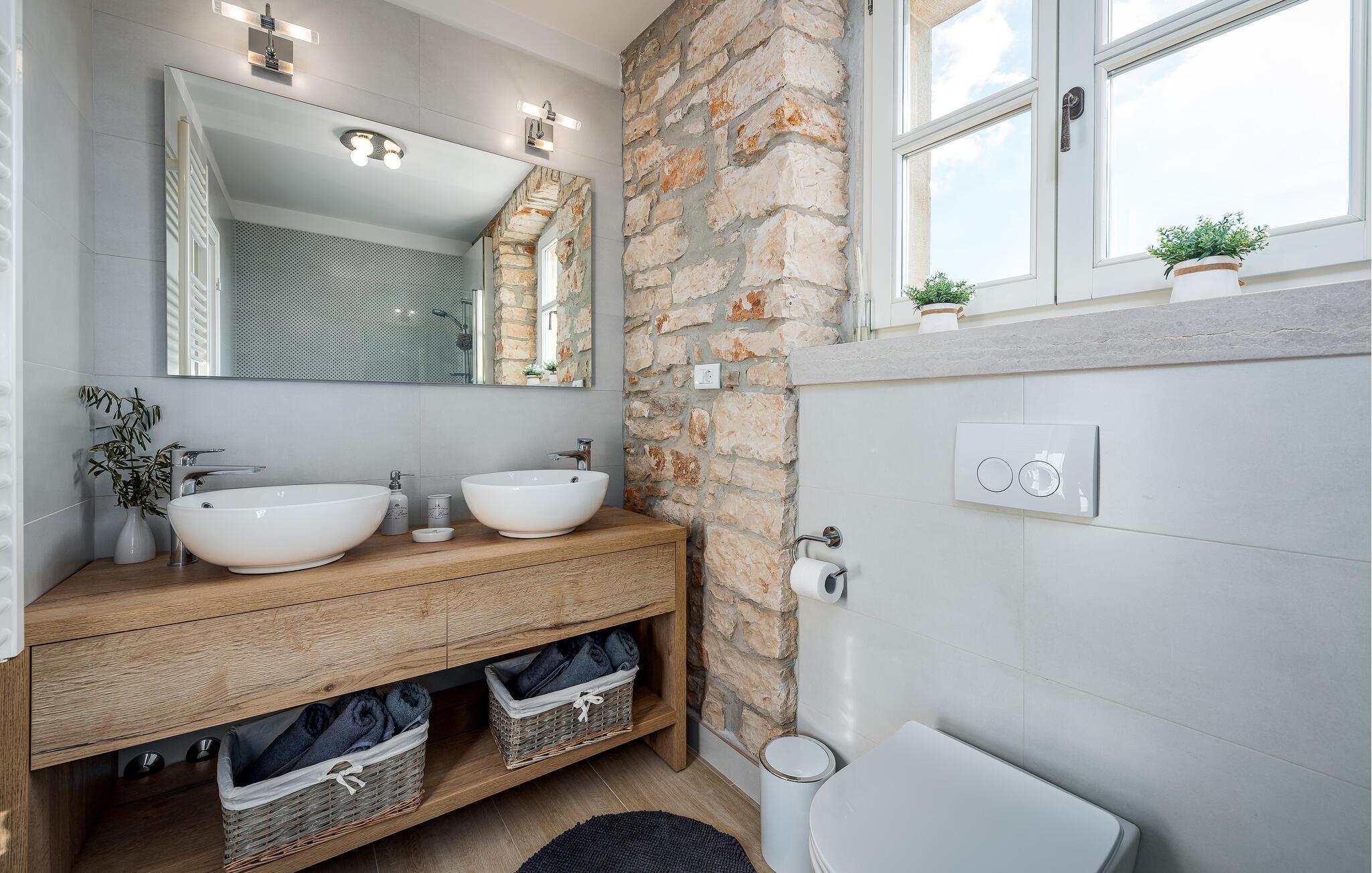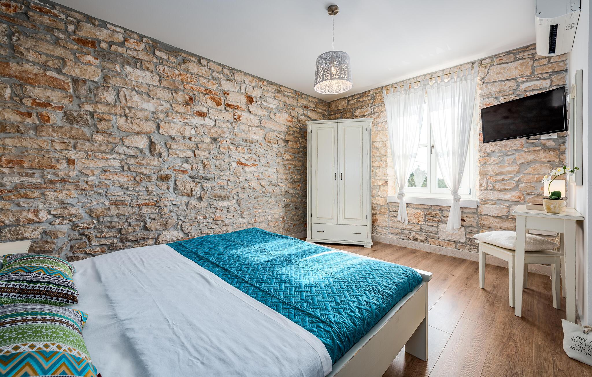 Etwas nördlich von Pula gelegen, begrüßt Sie dieses charmante Ferienhaus zu einem fantastischen Istrien-Urlaub. Die harmonische Kombination aus traditionellem Steinbau und modernem Komfort, die das gesamte Ferienhaus bestimmt, bietet Ihnen eine urgemütliche Stimmung fern vom Stress und der Hektik des Alltags. Die schöne Küche lädt zum gemeinsamen Kochen ein, während der Essbereich mit dem urigen Holztisch der ideale Ort für gesellige Mahlzeiten ist. Entspannen Sie sich im einladenden Wohnzimmer mit dem bequemen Sofa, wo Sie zu lustigen Spieleabenden zusammenkommen oder einfach mit einem guten Buch verweilen können. Auch draußen erwarten Sie zahlreiche Möglichkeiten zum Entspannen und Genießen. Machen Sie einen erfrischenden Sprung in den Pool und relaxen Sie anschließend auf einer der bequemen Liegen. Für sportlich Aktive bietet sich der benachbarte Tennisplatz an, während die überdachte Grillterrasse kulinarische Höhepunkte beim abendlichen Grillen verspricht.