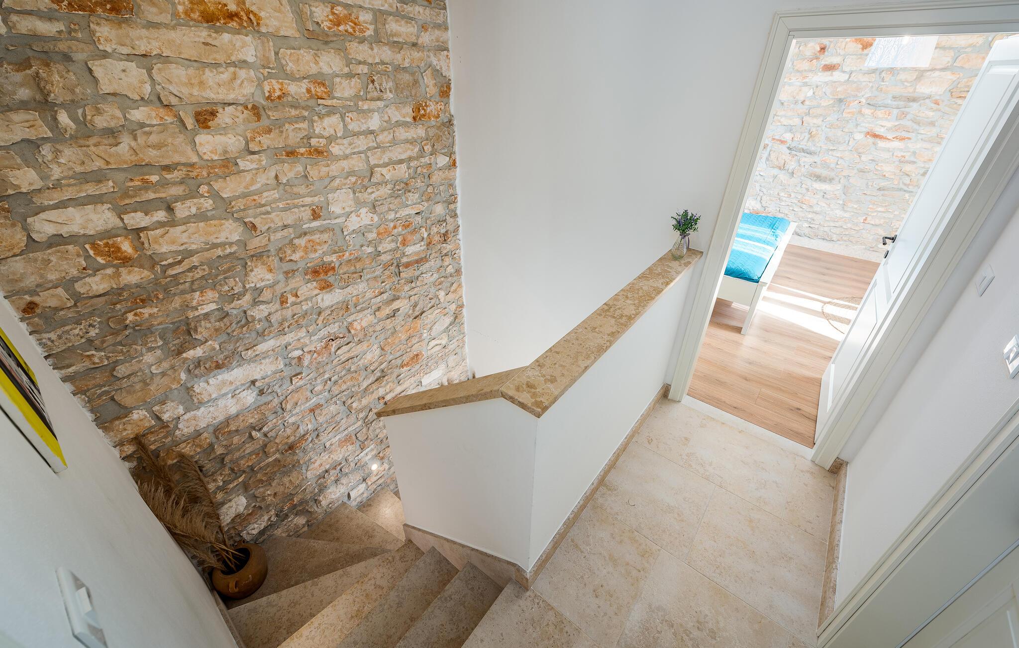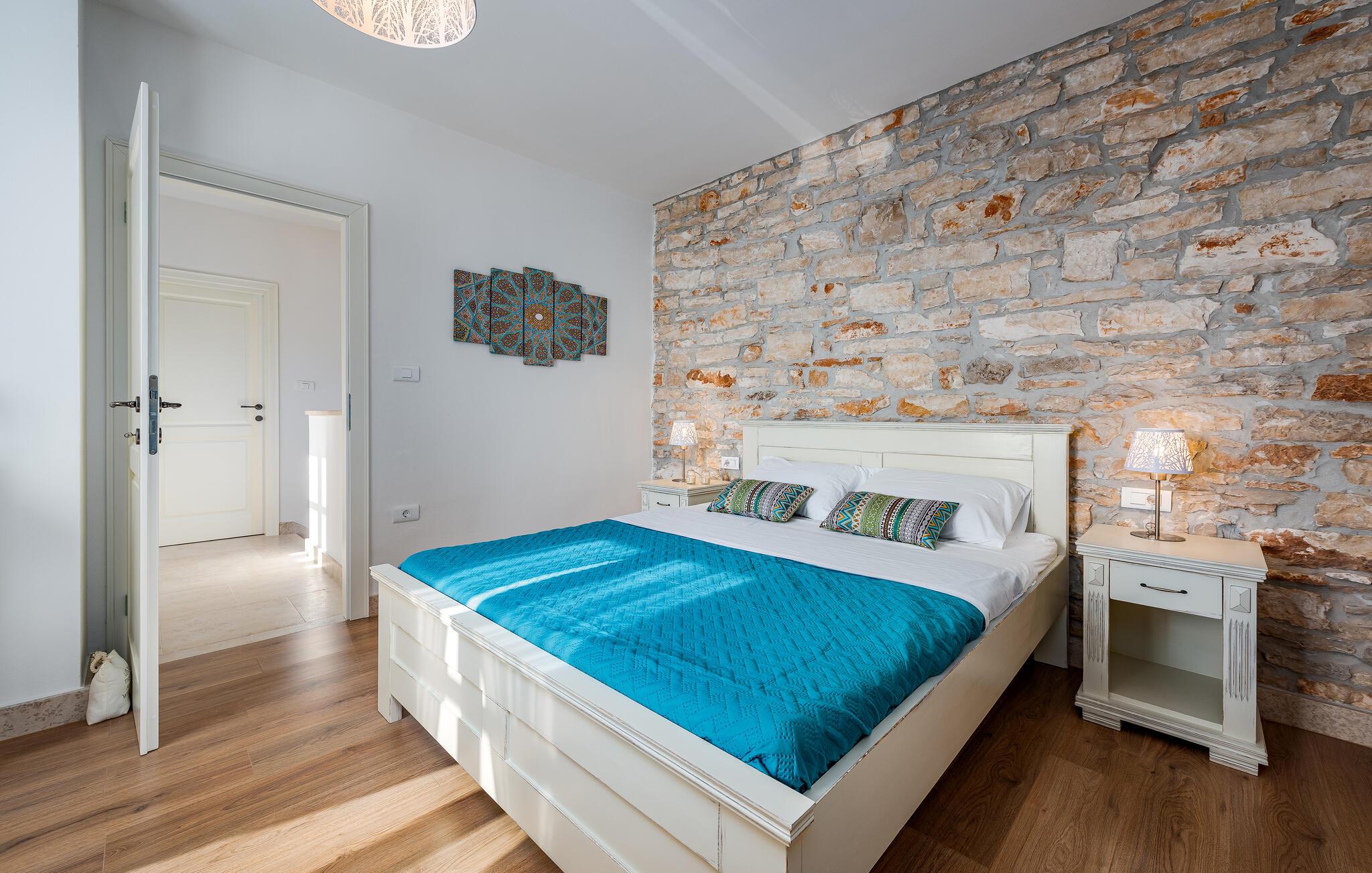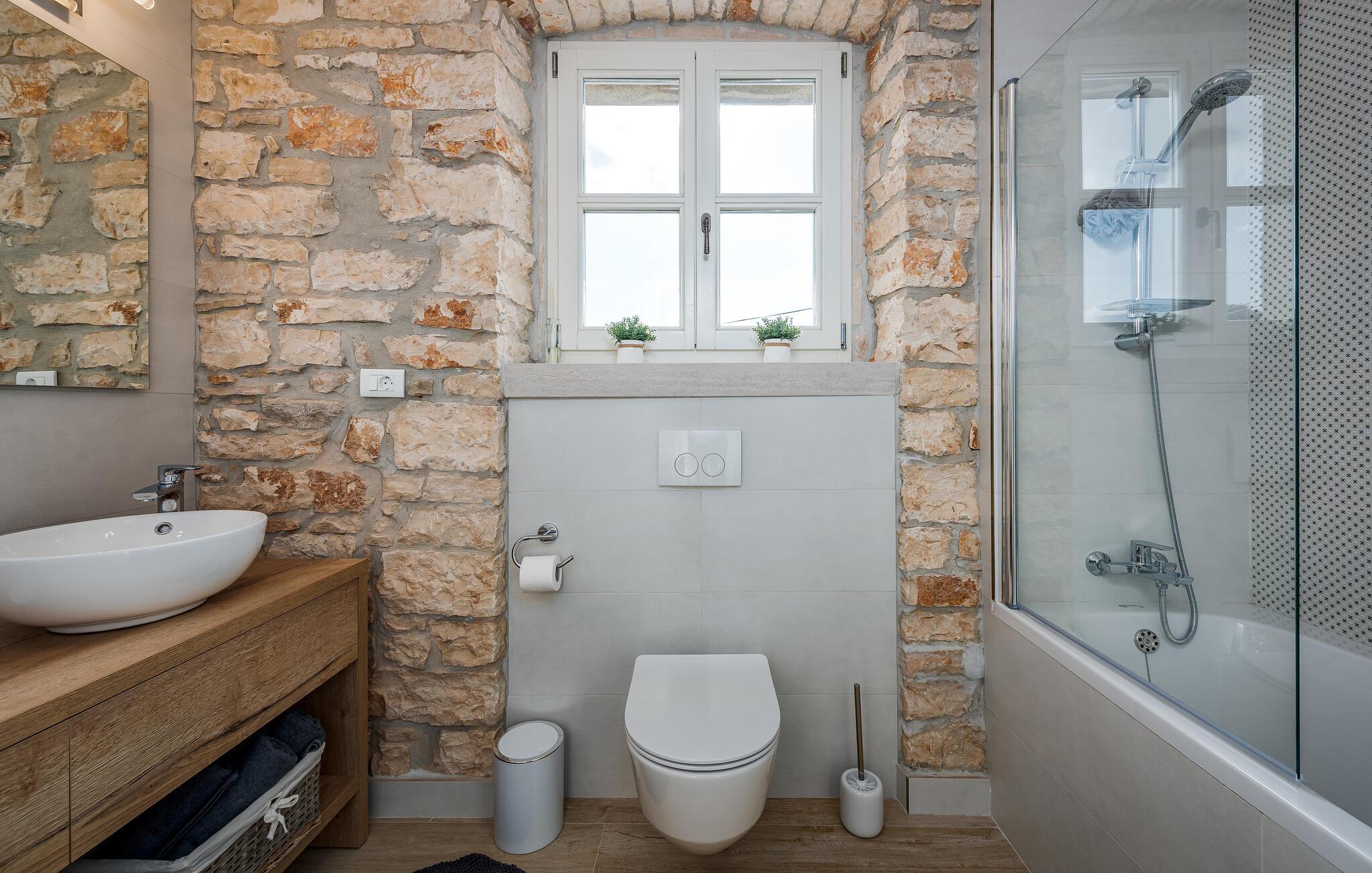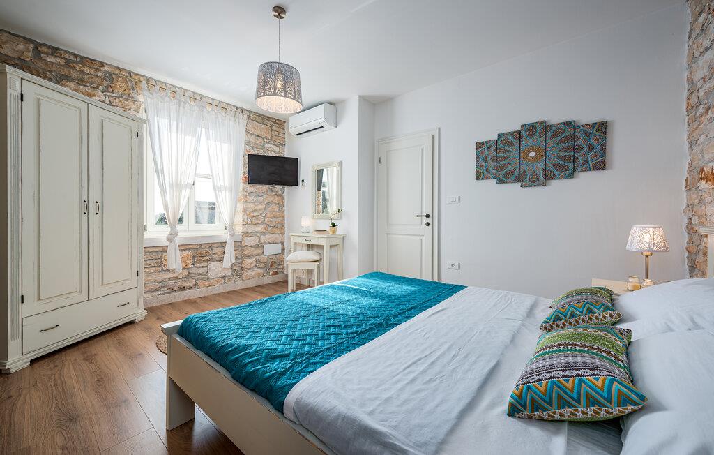 Etwas nördlich von Pula gelegen, begrüßt Sie dieses charmante Ferienhaus zu einem fantastischen Istrien-Urlaub. Die harmonische Kombination aus traditionellem Steinbau und modernem Komfort, die das gesamte Ferienhaus bestimmt, bietet Ihnen eine urgemütliche Stimmung fern vom Stress und der Hektik des Alltags. Die schöne Küche lädt zum gemeinsamen Kochen ein, während der Essbereich mit dem urigen Holztisch der ideale Ort für gesellige Mahlzeiten ist. Entspannen Sie sich im einladenden Wohnzimmer mit dem bequemen Sofa, wo Sie zu lustigen Spieleabenden zusammenkommen oder einfach mit einem guten Buch verweilen können. Auch draußen erwarten Sie zahlreiche Möglichkeiten zum Entspannen und Genießen. Machen Sie einen erfrischenden Sprung in den Pool und relaxen Sie anschließend auf einer der bequemen Liegen. Für sportlich Aktive bietet sich der benachbarte Tennisplatz an, während die überdachte Grillterrasse kulinarische Höhepunkte beim abendlichen Grillen verspricht.