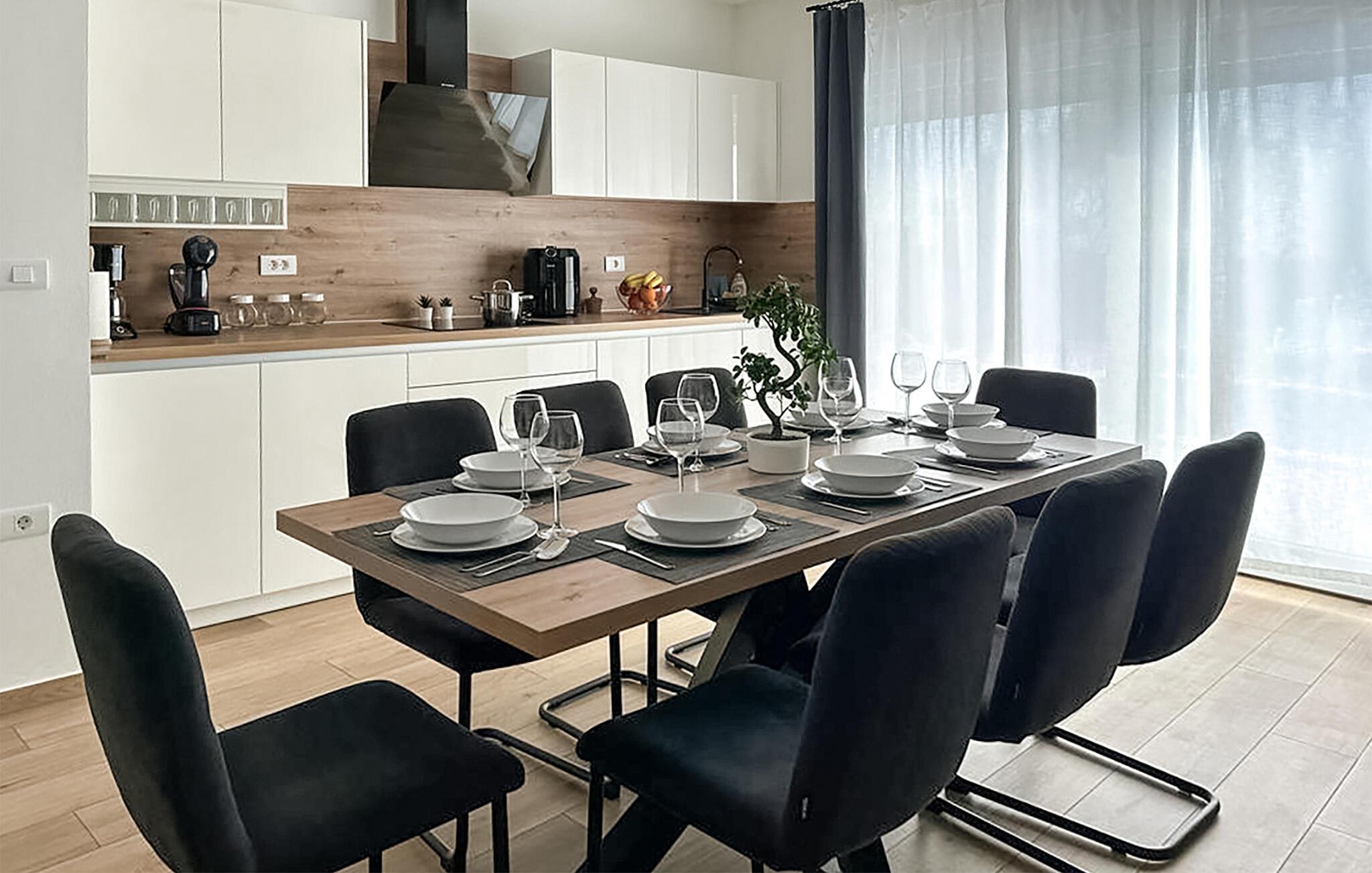 Mit diesem Ferienhaus haben Sie die perfekte Unterkunft für Ihre Großfamilie gefunden. Nicht nur das geräumige Platzangebot sind optimal, auch die komfortable Einrichtung und Ausstattung versprechen Ihnen die perfekte Umgebung für die schönsten Wochen des Jahres. Groß und Klein werden sich hier Wohlfühlen, denn während ei Hobbyköche der Familie in der Küche zaubern, können die Kleinsten im Spielzimmer verweilen oder gemeinsam auf dem Sofa relaxen.