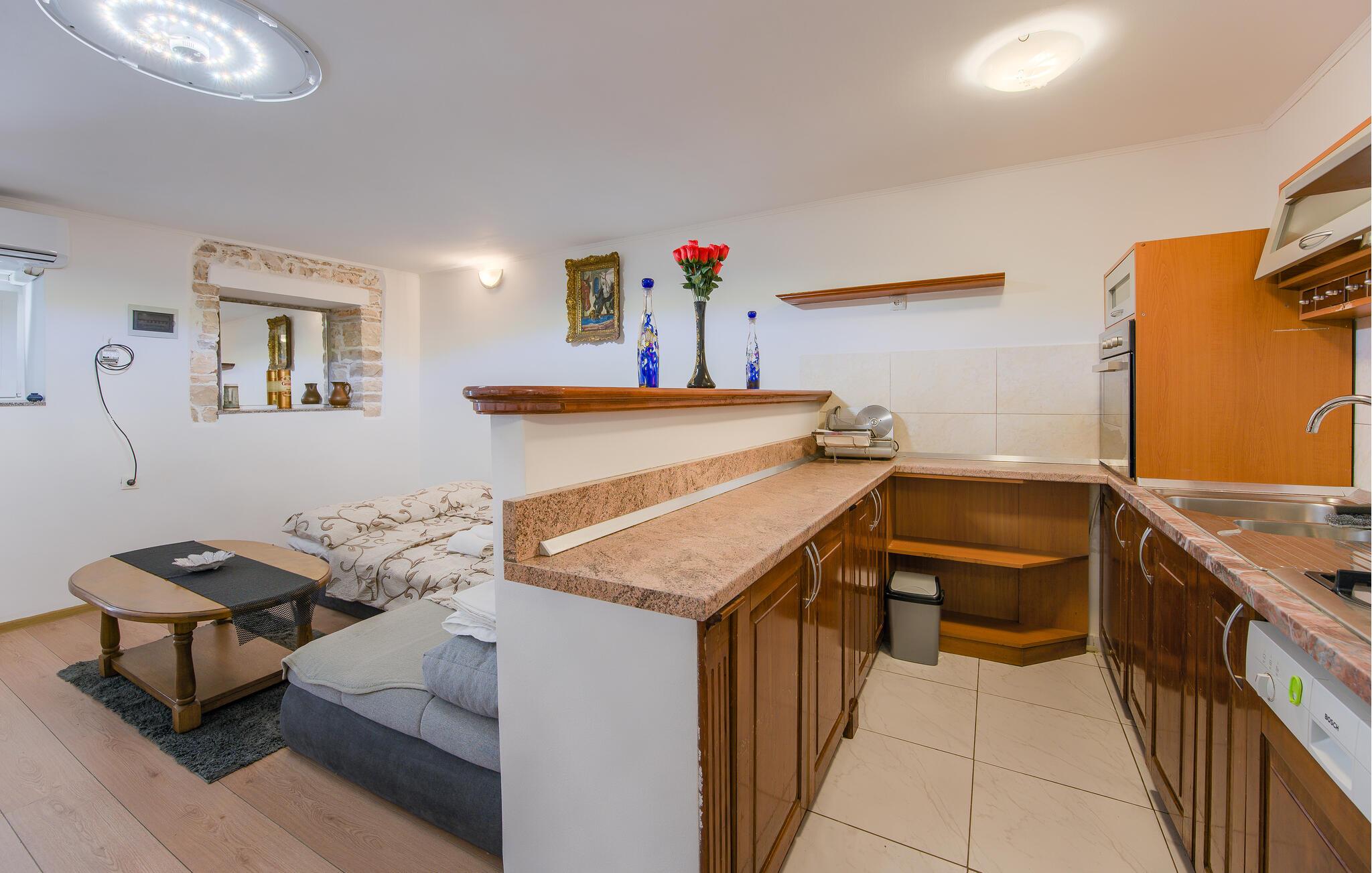 Diese praktisch eingerichtete Erdgeschosswohnung bietet Ihnen im Herzen von Vodnjan ein behagliches Refugium, während Sie den Alltag gegen spannende Ausflüge durch die reizvolle Region eintauschen. Zaubern Sie hier leckere Gerichte aus frischen Produkten vom Markt, planen Sie Ihre Unternehmungen bei entspannten Mahlzeiten und lassen Sie einen langen Tag bei einem Brettspiel oder einem guten Buch ausklingen.