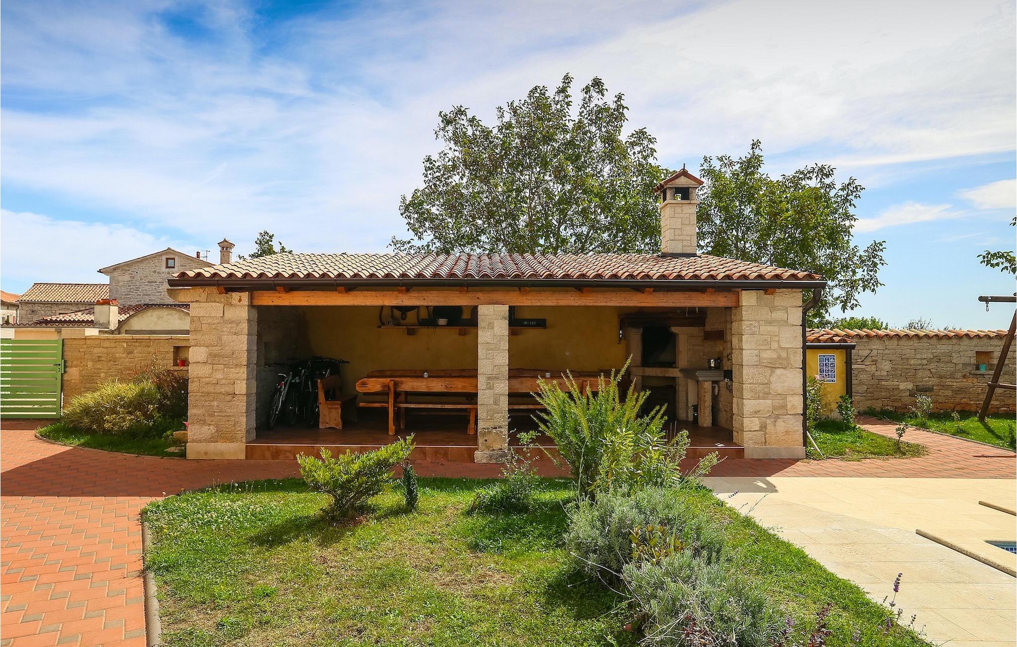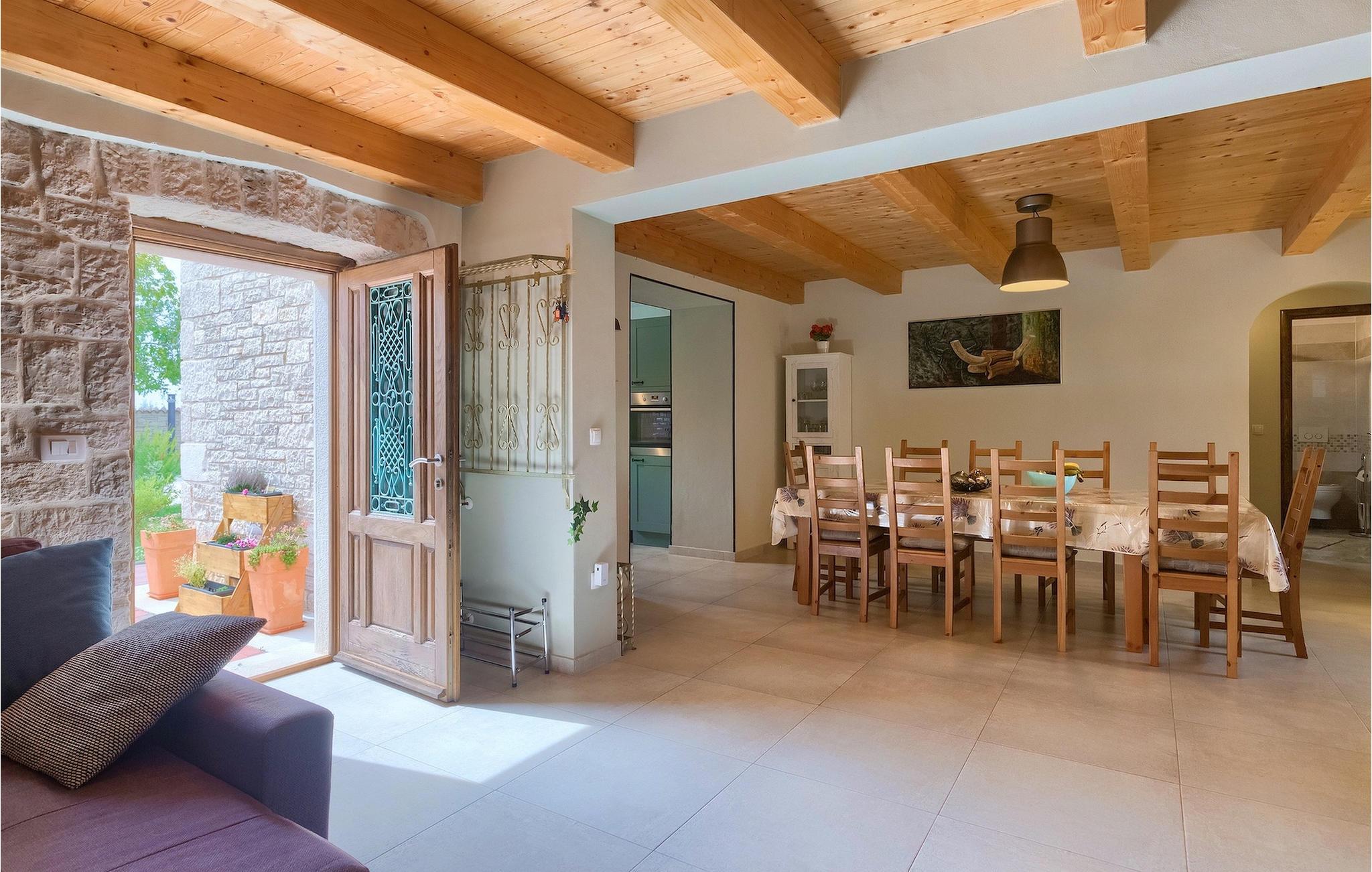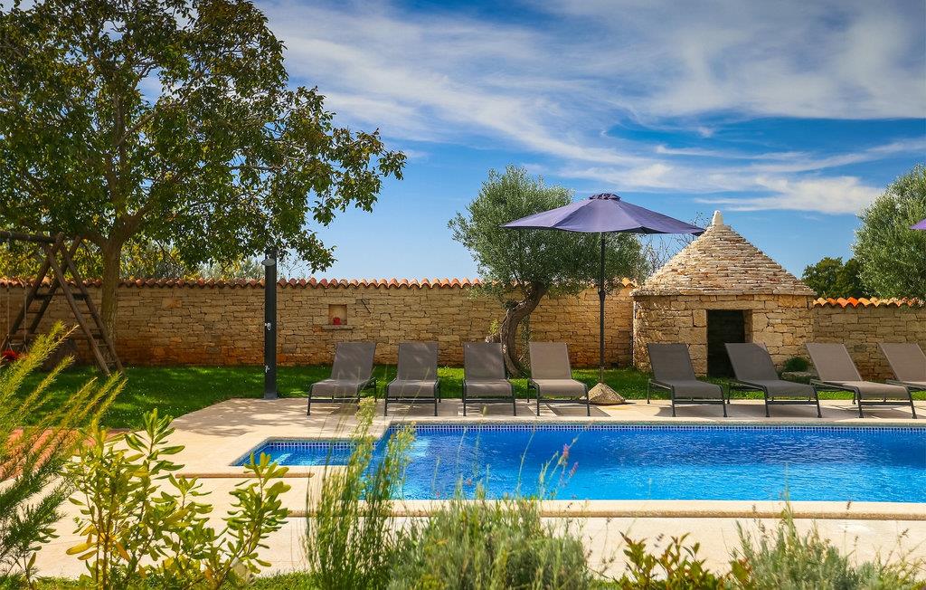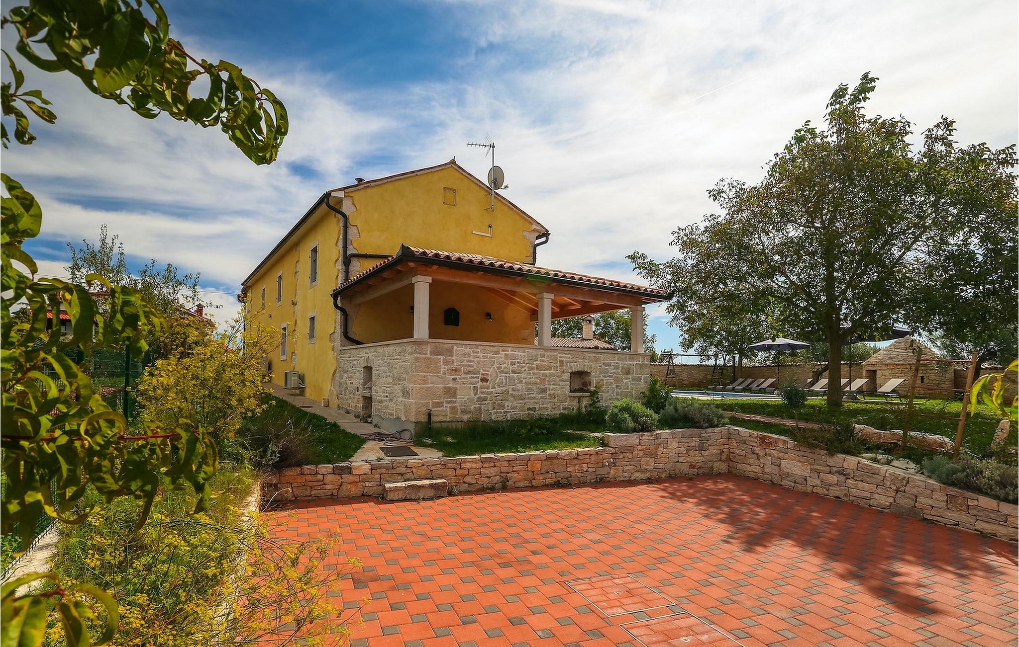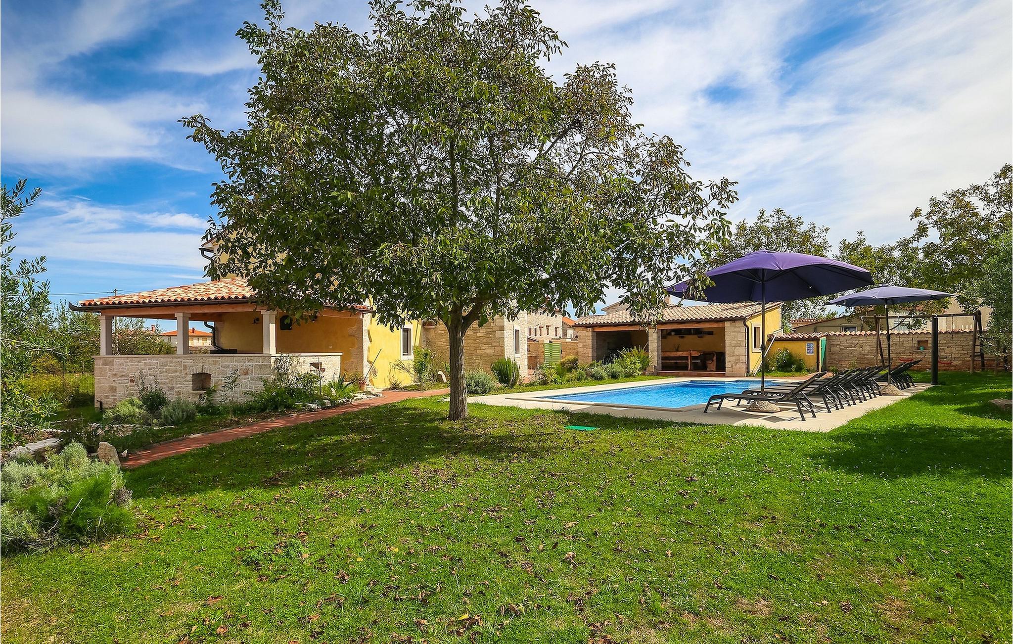 Die authentische Villa Ive befindet sich im istrischen Hinterland nicht weit von touristischen Städten wie Vodnjan oder Pula. Die schöne Villa kombiniert moderne Möbeln mit traditionellen Elementen wie freiliegende Holzbalken und Stein. Hier finden Sie Unterkunft für bis zu 12 Gäste in 5 Schlafzimmer mit Doppelbetten, eines befindet sich im Erdgeschoss, während die anderen 4 im ersten Stock verteilt sind. Alle Schlafzimmer verfügen über Klimaanlagen und zwei Schlafzimmer mit schönen Balkons die auf die grünen Berge und romantische Dörfer im Hintergrund. Das stilvolle und angenehme Wohnzimmer ist mit der komplett ausgestatteten Küche verbunden und bietet auch einen kleinen Kamin an, für kältere Abende. Draußen finden Sie einen herrlichen großen, gepflegten Garten der Villa Ive mit einem istrischen Kazun (antike istrische Siedlungen) direkt neben dem einladenden Pool, umgeben von Liegestühlen, die der perfekte Ort sind, um sich zu entspannen und sich im einladenden Pool zu erfrischen. Es gibt auch einen schönen überdachten Essbereich im Freien mit einem großen Holztisch und einem traditionellen Grillplatz, der sich perfekt für Versammlungen und Abendessen mit Blick auf den Pool eignet. Genießen Sie den großen, gepflegten Garten, der auch Aktivitäten für Kinder bietet, falls Sie mit der Familie verreisen. Beginnen Sie Ihren Urlaub in dieser fantastischen Villa!Die traumhafte Villa Ive befindet sich im kleinen, malerischen Ort Orbanici in Zentralistrien. Hier können Sie das magische Istrische Hinterland entdecken mit wunderbarer Natur und allen köstlichen Spezialitäten wie Trüffel, hausgemachter Honig, Käse, Prosciutto-Schinken und vieles mehr! Die ersten Strände befinden sich 10 km entfernt von der Villa in der Nähe von Fazana. Von hier kommen Sie schnell zu der beeindruckenden Insel und Nationalpark Brijuni mit der Fähre oder mit einem Bootsausflug. In der Nähe befindet sich auch das größte Touristenzentrum Pula mit dem atemberaubenden Amphitheater und zahlreichen Restaurants, Bars und reichen Nachtleben. Etwa 5 km entfernt von der Villa befindet sich auch ein Adrenalin Park, ideal für einen amüsanten Tagesausflug für die ganze Familie. Wenn Sie charmante Kleinstädte erkunden möchten, besuchen Sie auch mittelalterlichen Orte wie Svetvincenat, Vodnjan und Bale, die für ihre malerischen Plätze, engen Gassen, Tavernen, Geschäfte und Bars bekannt sind. Villa Ive erwartet Sie!