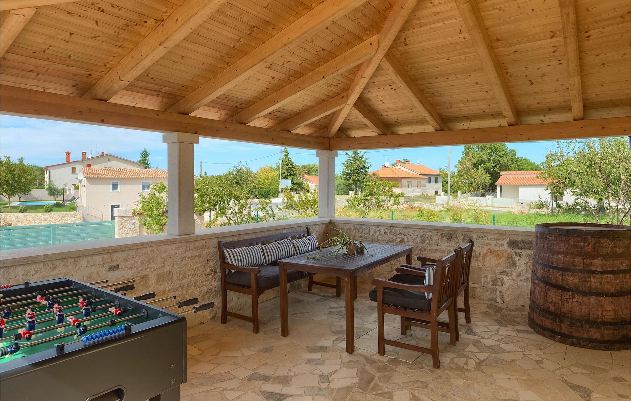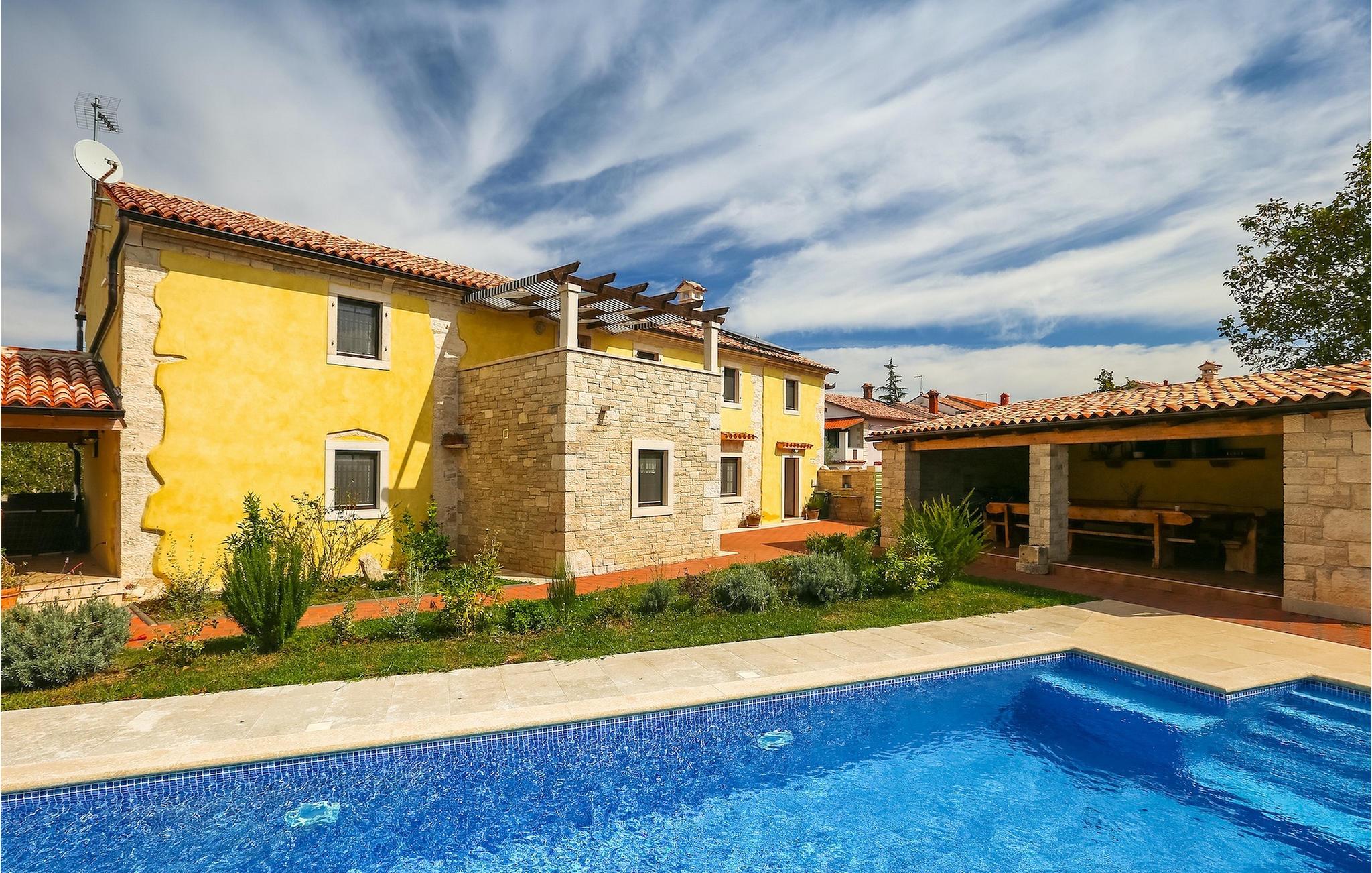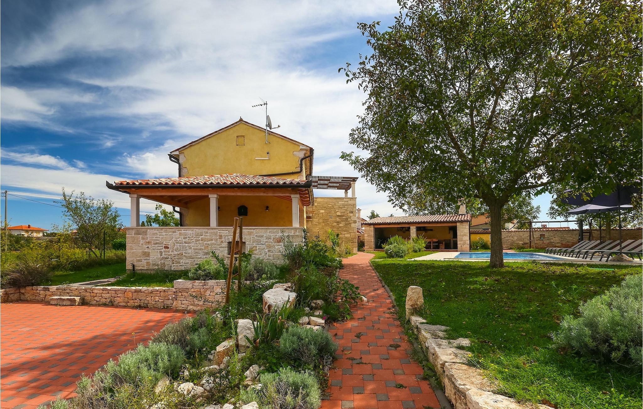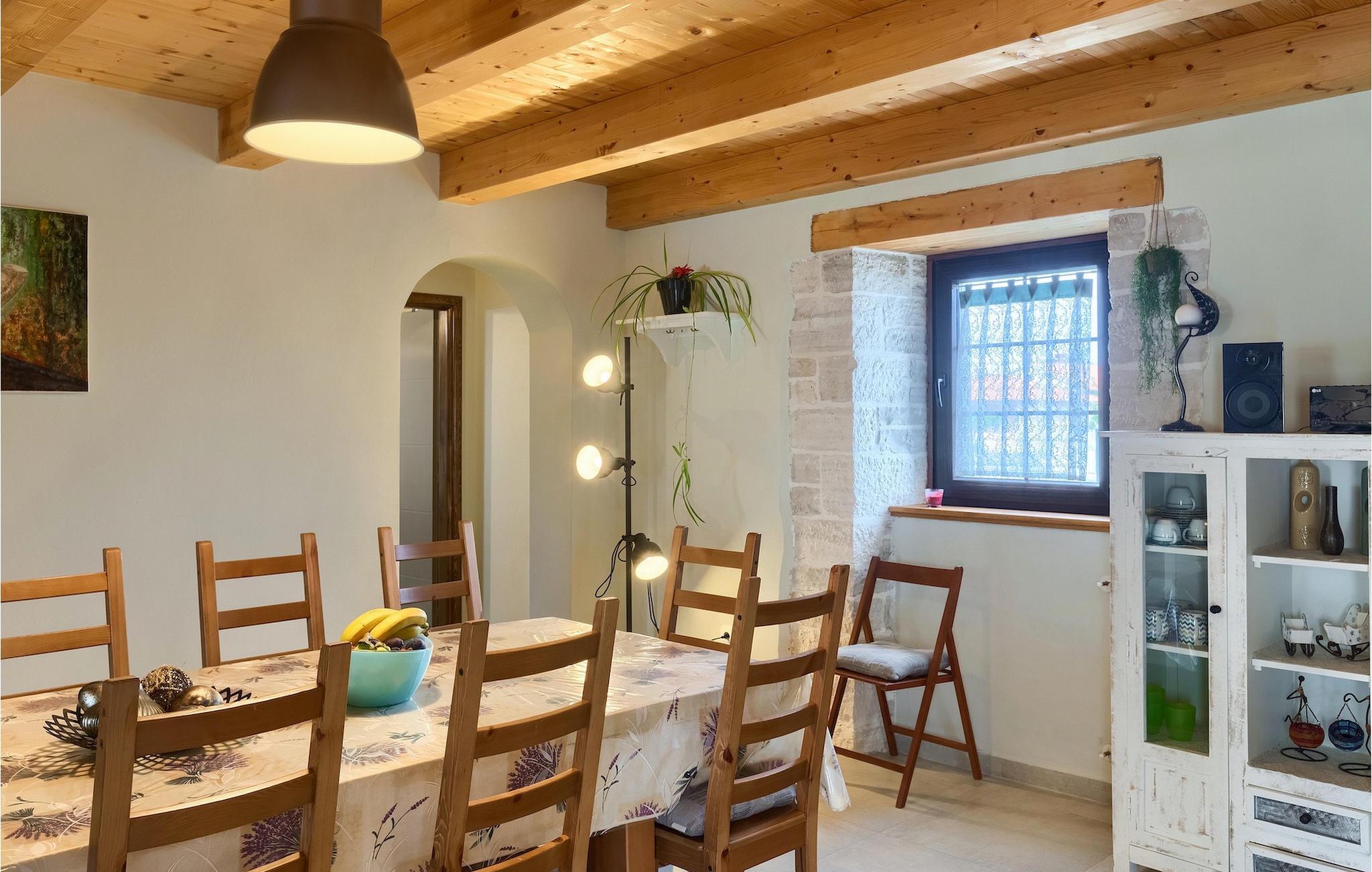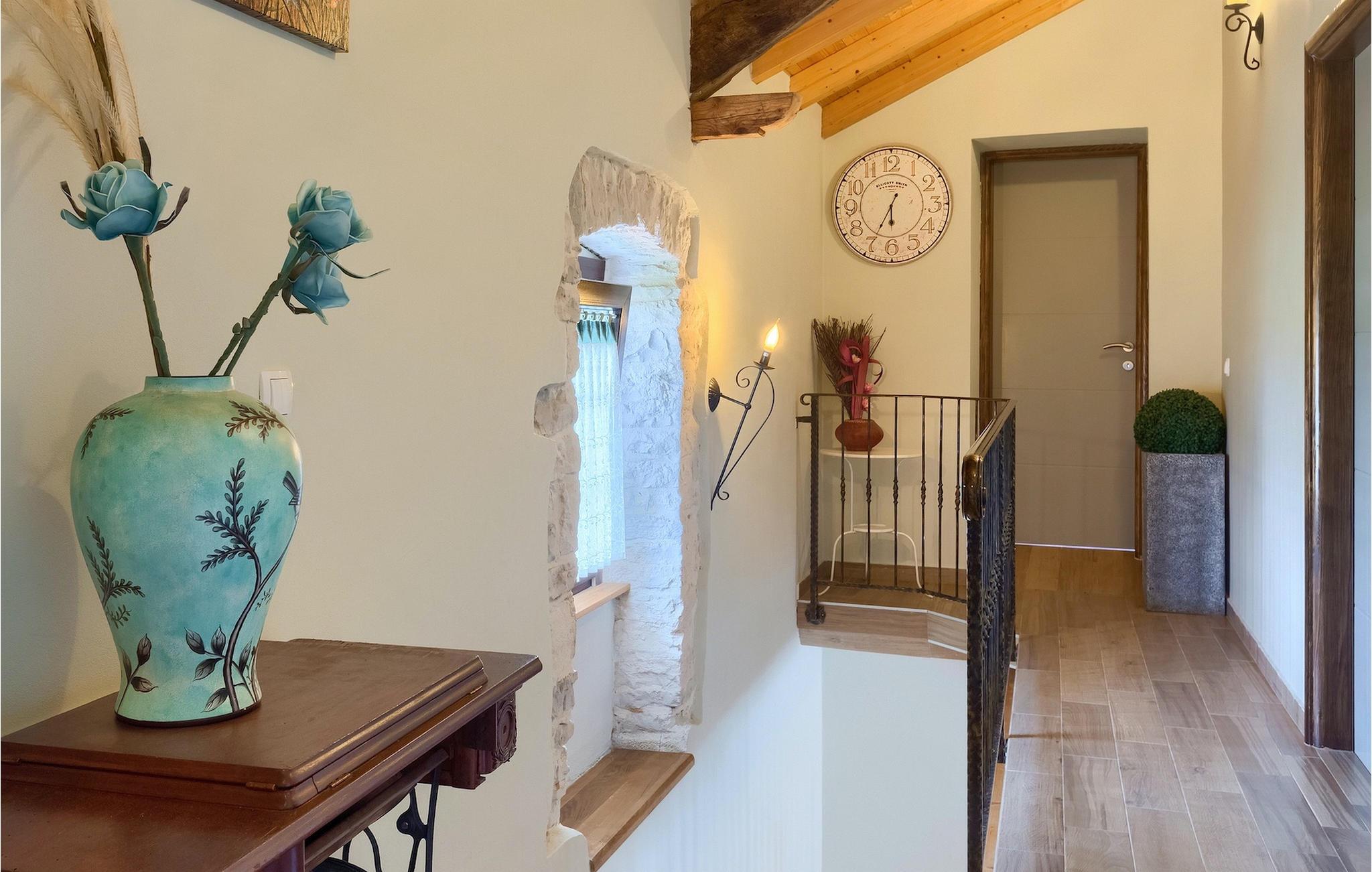Die authentische Villa Ive befindet sich im istrischen Hinterland nicht weit von touristischen Städten wie Vodnjan oder Pula. Die schöne Villa kombiniert moderne Möbeln mit traditionellen Elementen wie freiliegende Holzbalken und Stein. Hier finden Sie Unterkunft für bis zu 12 Gäste in 5 Schlafzimmer mit Doppelbetten, eines befindet sich im Erdgeschoss, während die anderen 4 im ersten Stock verteilt sind. Alle Schlafzimmer verfügen über Klimaanlagen und zwei Schlafzimmer mit schönen Balkons die auf die grünen Berge und romantische Dörfer im Hintergrund. Das stilvolle und angenehme Wohnzimmer ist mit der komplett ausgestatteten Küche verbunden und bietet auch einen kleinen Kamin an, für kältere Abende. Draußen finden Sie einen herrlichen großen, gepflegten Garten der Villa Ive mit einem istrischen Kazun (antike istrische Siedlungen) direkt neben dem einladenden Pool, umgeben von Liegestühlen, die der perfekte Ort sind, um sich zu entspannen und sich im einladenden Pool zu erfrischen. Es gibt auch einen schönen überdachten Essbereich im Freien mit einem großen Holztisch und einem traditionellen Grillplatz, der sich perfekt für Versammlungen und Abendessen mit Blick auf den Pool eignet. Genießen Sie den großen, gepflegten Garten, der auch Aktivitäten für Kinder bietet, falls Sie mit der Familie verreisen. Beginnen Sie Ihren Urlaub in dieser fantastischen Villa!Die traumhafte Villa Ive befindet sich im kleinen, malerischen Ort Orbanici in Zentralistrien. Hier können Sie das magische Istrische Hinterland entdecken mit wunderbarer Natur und allen köstlichen Spezialitäten wie Trüffel, hausgemachter Honig, Käse, Prosciutto-Schinken und vieles mehr! Die ersten Strände befinden sich 10 km entfernt von der Villa in der Nähe von Fazana. Von hier kommen Sie schnell zu der beeindruckenden Insel und Nationalpark Brijuni mit der Fähre oder mit einem Bootsausflug. In der Nähe befindet sich auch das größte Touristenzentrum Pula mit dem atemberaubenden Amphitheater und zahlreichen Restaurants, Bars und reichen Nachtleben. Etwa 5 km entfernt von der Villa befindet sich auch ein Adrenalin Park, ideal für einen amüsanten Tagesausflug für die ganze Familie. Wenn Sie charmante Kleinstädte erkunden möchten, besuchen Sie auch mittelalterlichen Orte wie Svetvincenat, Vodnjan und Bale, die für ihre malerischen Plätze, engen Gassen, Tavernen, Geschäfte und Bars bekannt sind. Villa Ive erwartet Sie!