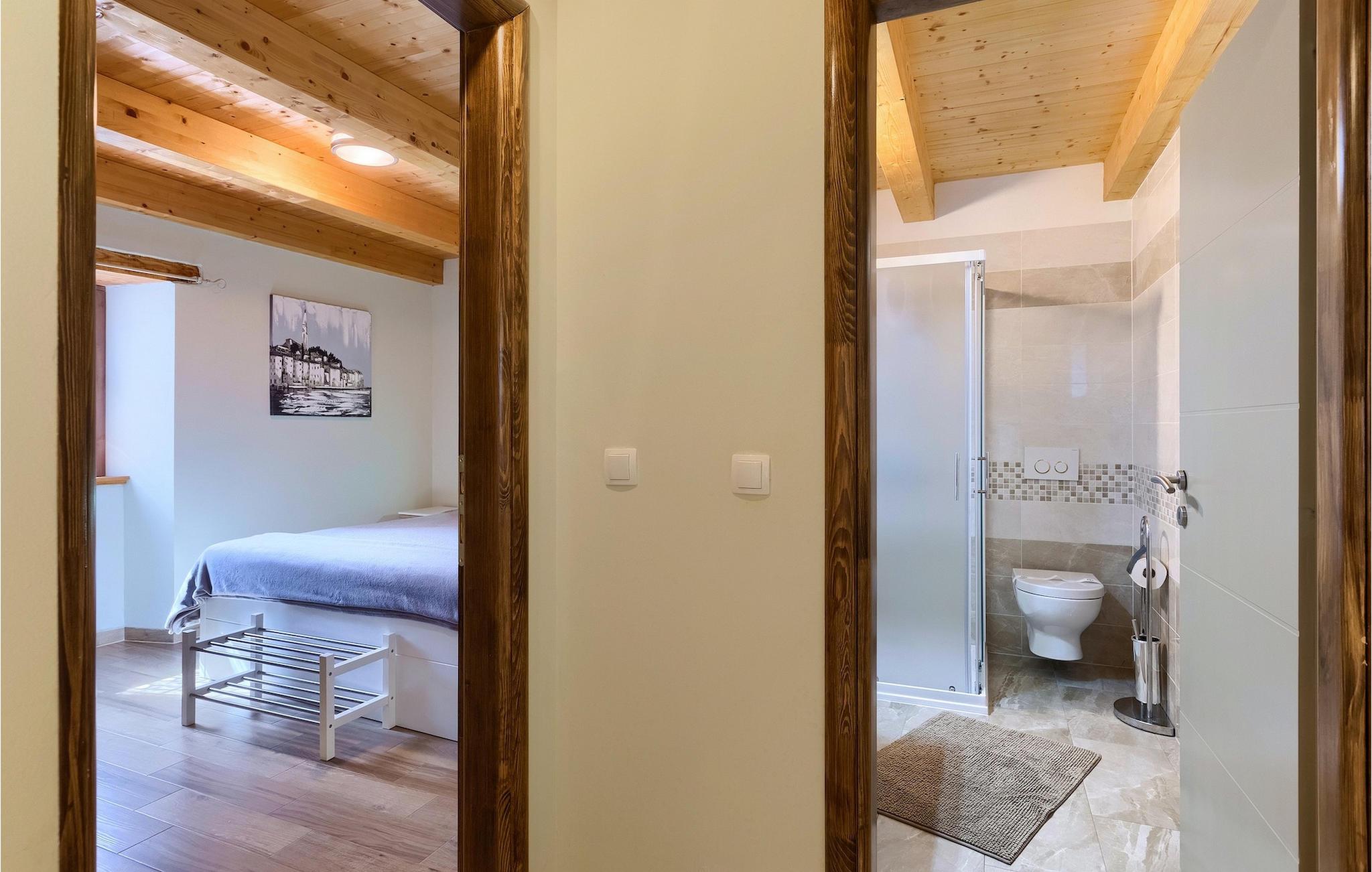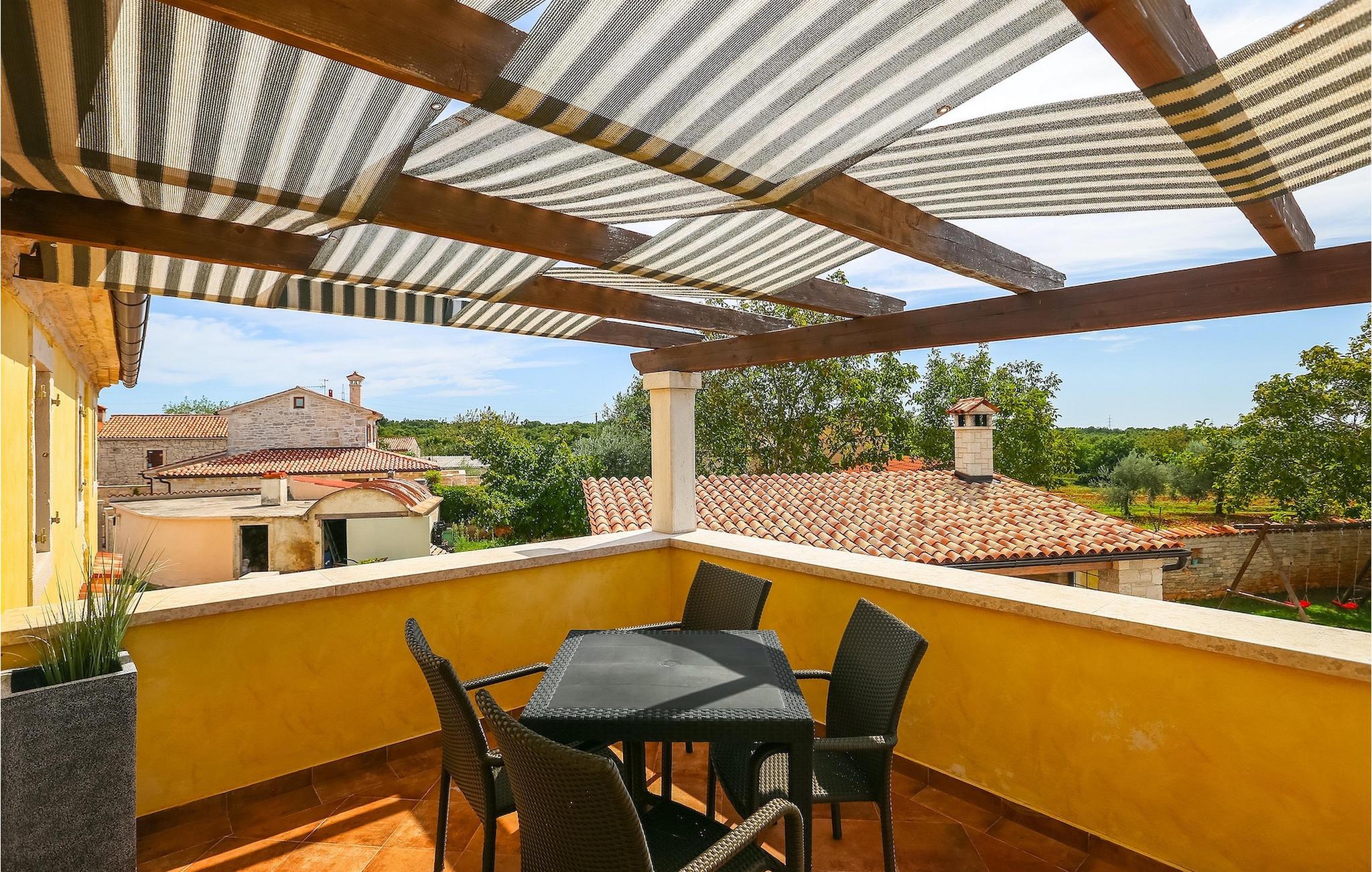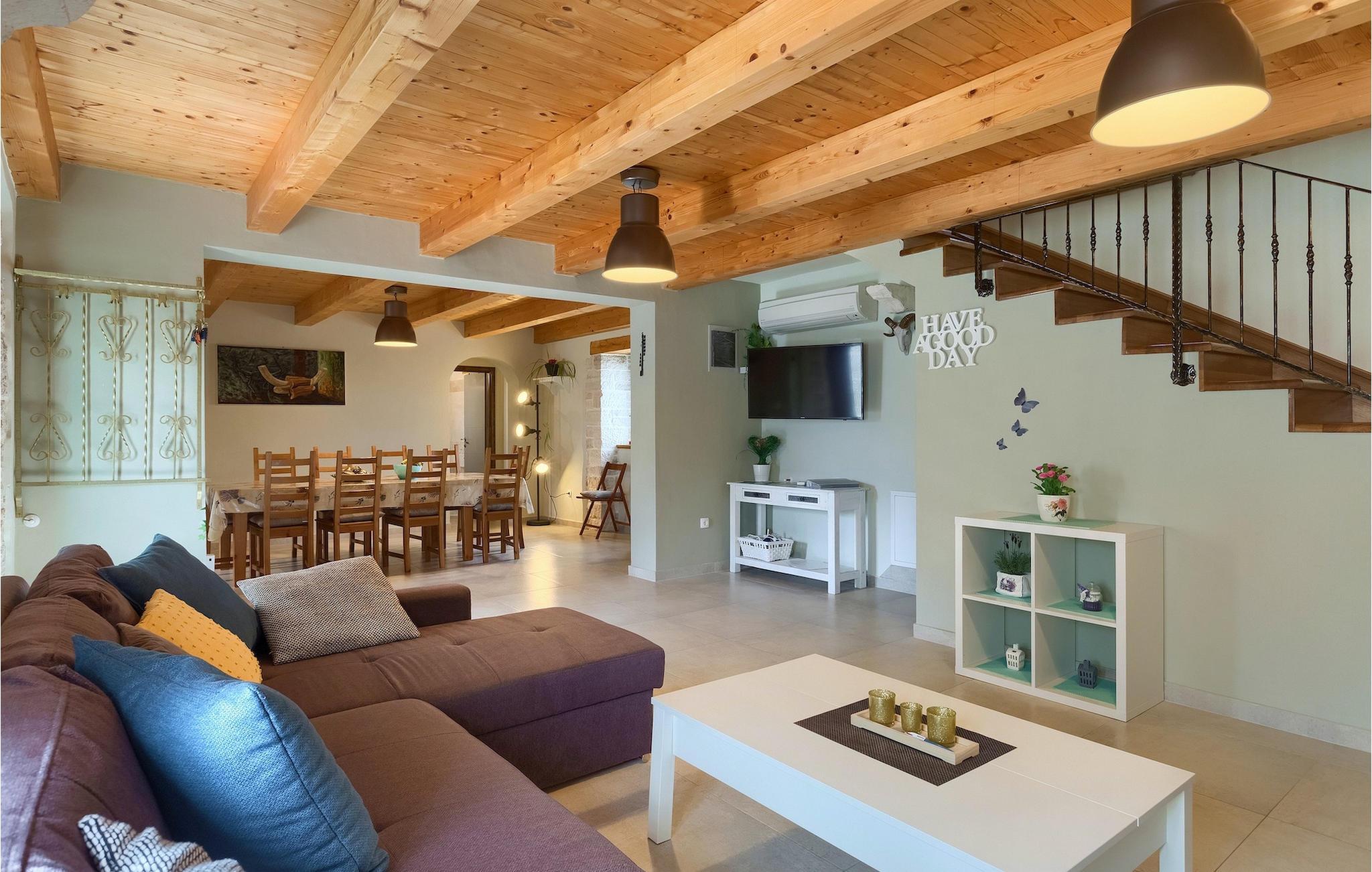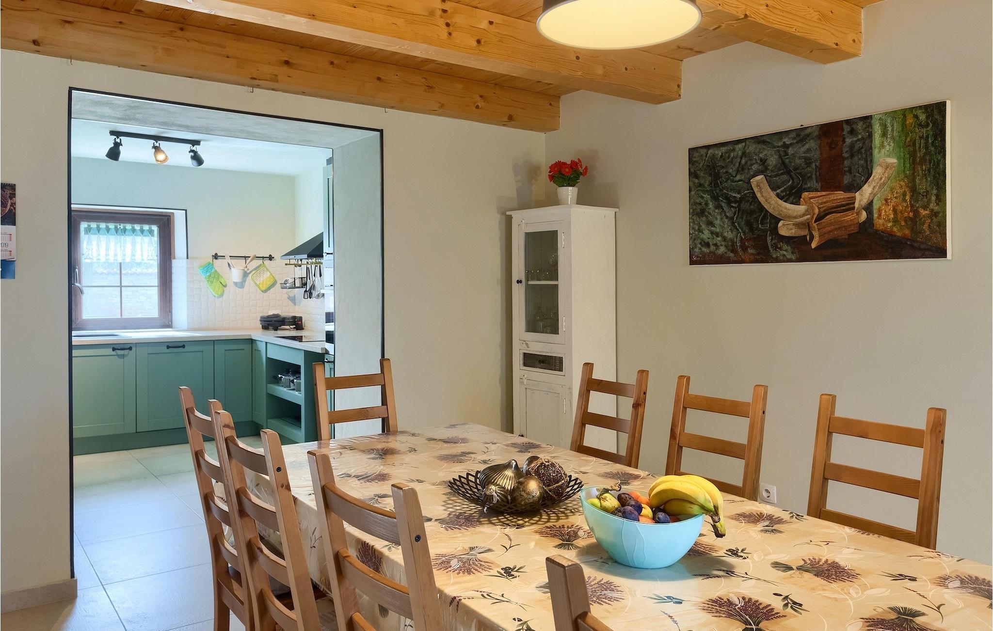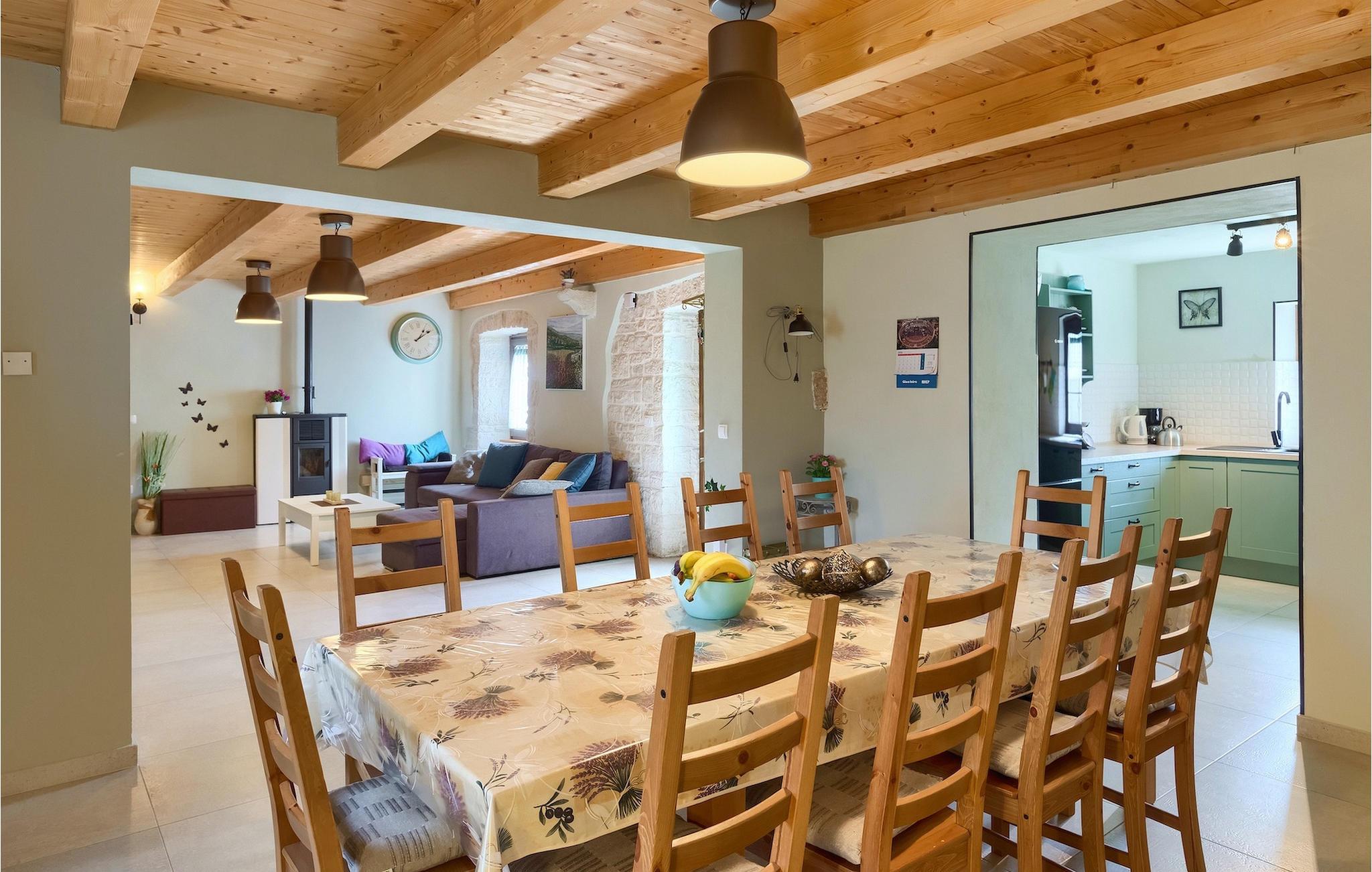 Die authentische Villa Ive befindet sich im istrischen Hinterland nicht weit von touristischen Städten wie Vodnjan oder Pula. Die schöne Villa kombiniert moderne Möbeln mit traditionellen Elementen wie freiliegende Holzbalken und Stein. Hier finden Sie Unterkunft für bis zu 12 Gäste in 5 Schlafzimmer mit Doppelbetten, eines befindet sich im Erdgeschoss, während die anderen 4 im ersten Stock verteilt sind. Alle Schlafzimmer verfügen über Klimaanlagen und zwei Schlafzimmer mit schönen Balkons die auf die grünen Berge und romantische Dörfer im Hintergrund. Das stilvolle und angenehme Wohnzimmer ist mit der komplett ausgestatteten Küche verbunden und bietet auch einen kleinen Kamin an, für kältere Abende. Draußen finden Sie einen herrlichen großen, gepflegten Garten der Villa Ive mit einem istrischen Kazun (antike istrische Siedlungen) direkt neben dem einladenden Pool, umgeben von Liegestühlen, die der perfekte Ort sind, um sich zu entspannen und sich im einladenden Pool zu erfrischen. Es gibt auch einen schönen überdachten Essbereich im Freien mit einem großen Holztisch und einem traditionellen Grillplatz, der sich perfekt für Versammlungen und Abendessen mit Blick auf den Pool eignet. Genießen Sie den großen, gepflegten Garten, der auch Aktivitäten für Kinder bietet, falls Sie mit der Familie verreisen. Beginnen Sie Ihren Urlaub in dieser fantastischen Villa!Die traumhafte Villa Ive befindet sich im kleinen, malerischen Ort Orbanici in Zentralistrien. Hier können Sie das magische Istrische Hinterland entdecken mit wunderbarer Natur und allen köstlichen Spezialitäten wie Trüffel, hausgemachter Honig, Käse, Prosciutto-Schinken und vieles mehr! Die ersten Strände befinden sich 10 km entfernt von der Villa in der Nähe von Fazana. Von hier kommen Sie schnell zu der beeindruckenden Insel und Nationalpark Brijuni mit der Fähre oder mit einem Bootsausflug. In der Nähe befindet sich auch das größte Touristenzentrum Pula mit dem atemberaubenden Amphitheater und zahlreichen Restaurants, Bars und reichen Nachtleben. Etwa 5 km entfernt von der Villa befindet sich auch ein Adrenalin Park, ideal für einen amüsanten Tagesausflug für die ganze Familie. Wenn Sie charmante Kleinstädte erkunden möchten, besuchen Sie auch mittelalterlichen Orte wie Svetvincenat, Vodnjan und Bale, die für ihre malerischen Plätze, engen Gassen, Tavernen, Geschäfte und Bars bekannt sind. Villa Ive erwartet Sie!