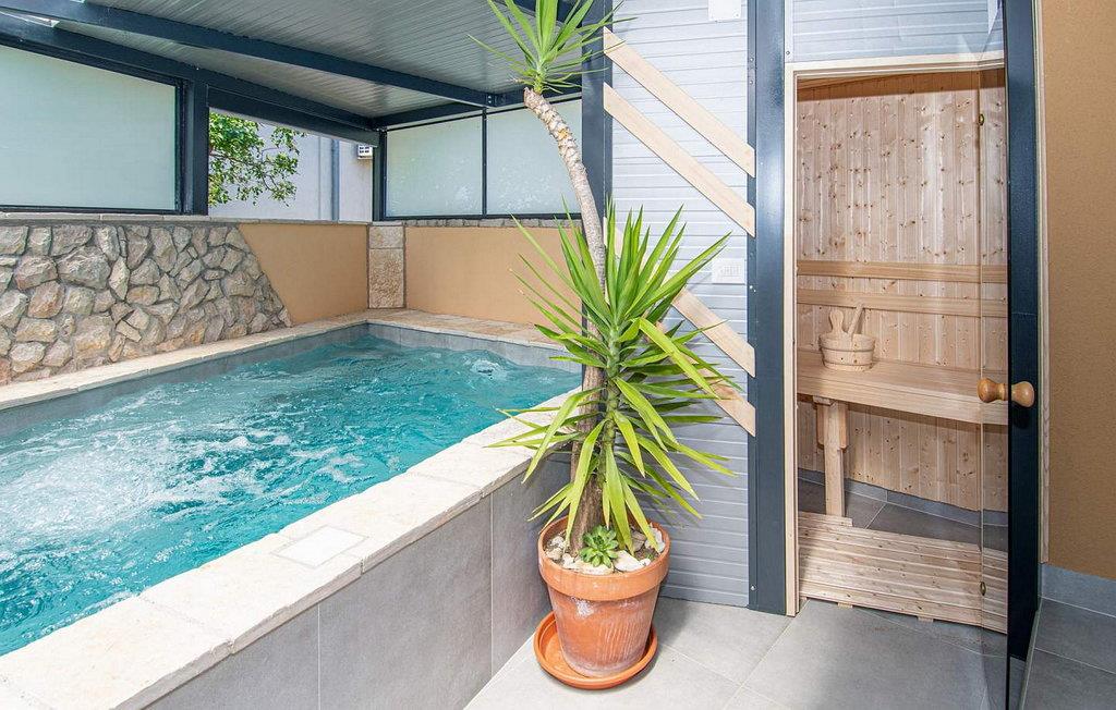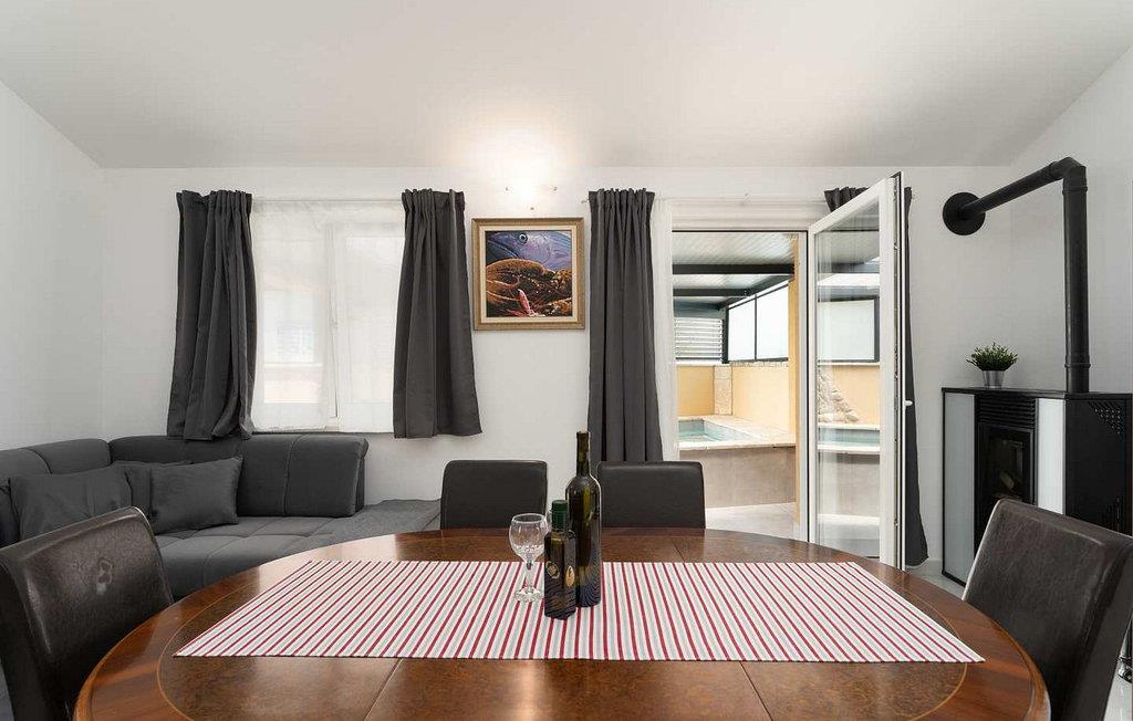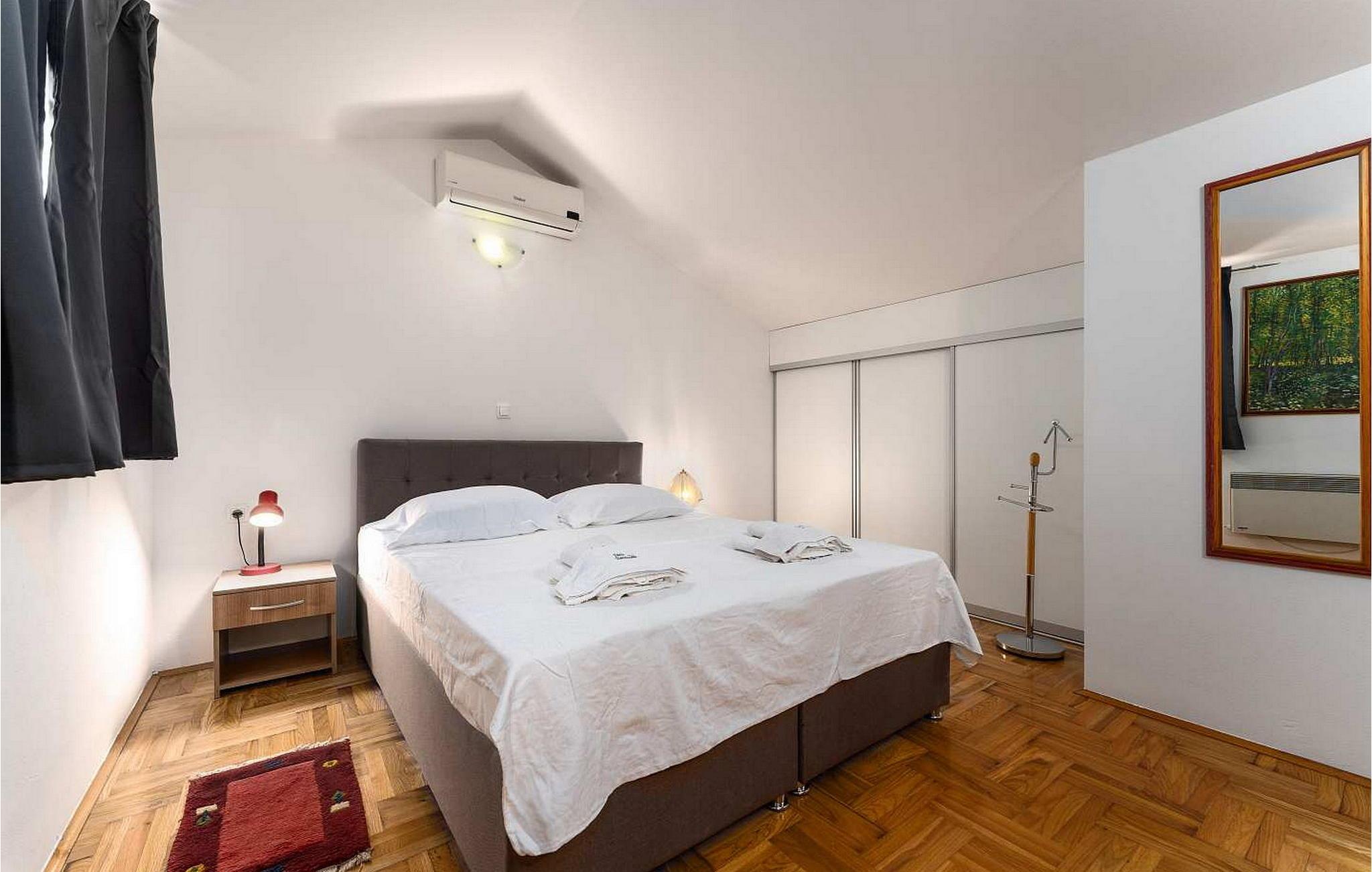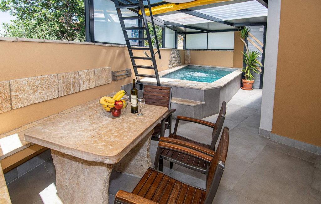 Das Haus wurde im Jahr 2011 gebaut und ist mit neueren und modernen Möbeln ausgestattet. Es befindet sich auf einem eigenen 100 qm großem abgeschlossenen Grundstück und bietet seinen Gästen einen kleinen Innenpool mit Hydromassage-Funktion, Sommerküche, Dachterrassemit Sitzgarnitur und Liegenstühle, Parkplatz für 2 Autos. Der Eigentümer wohnt nicht am Grundstück.