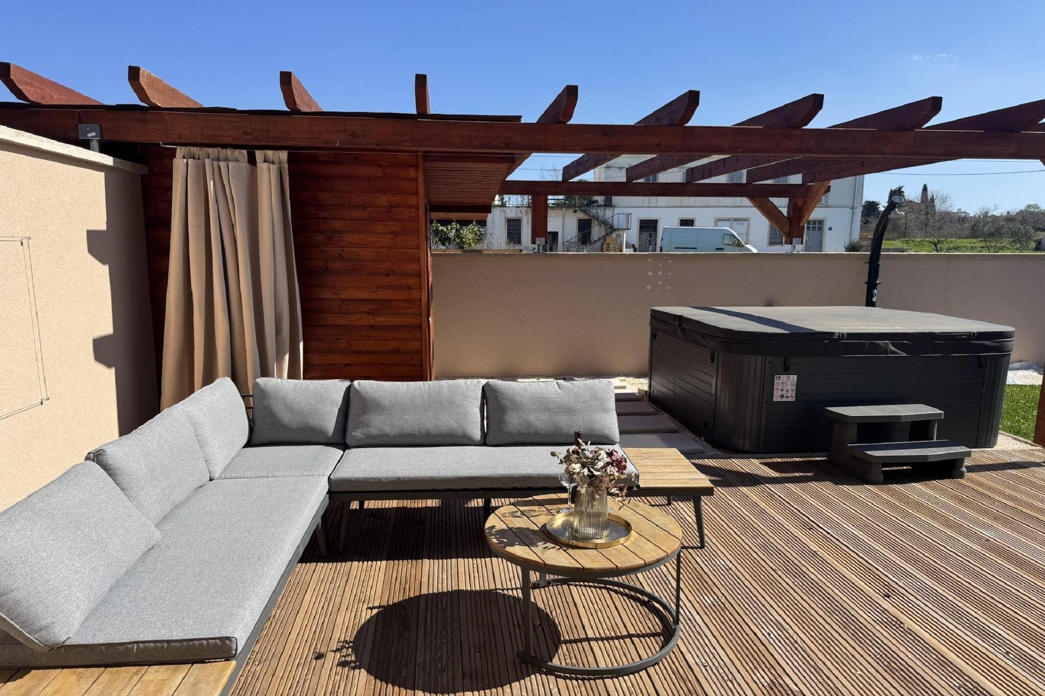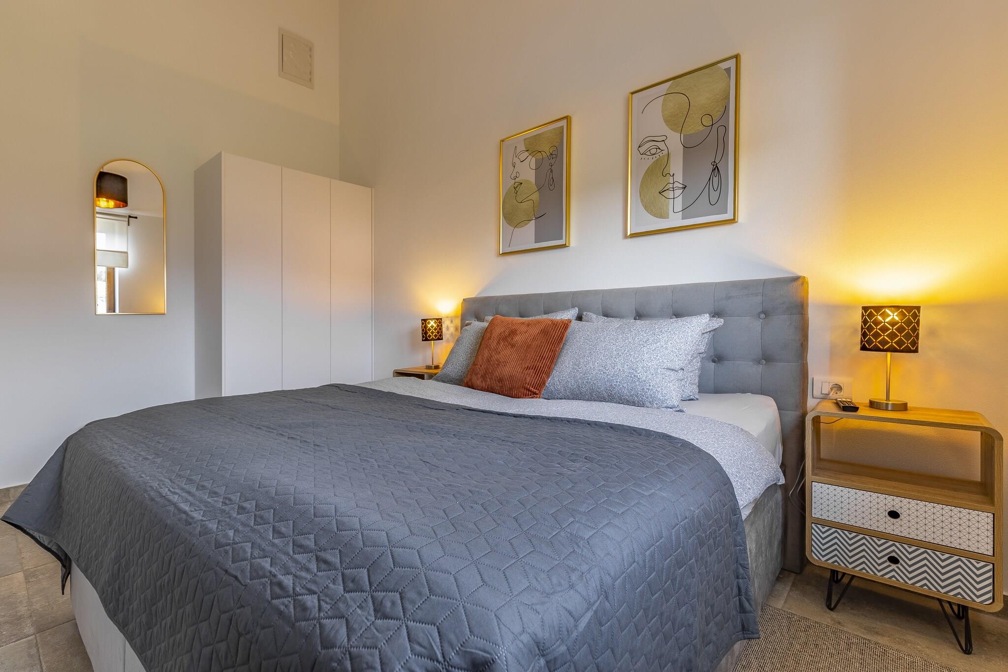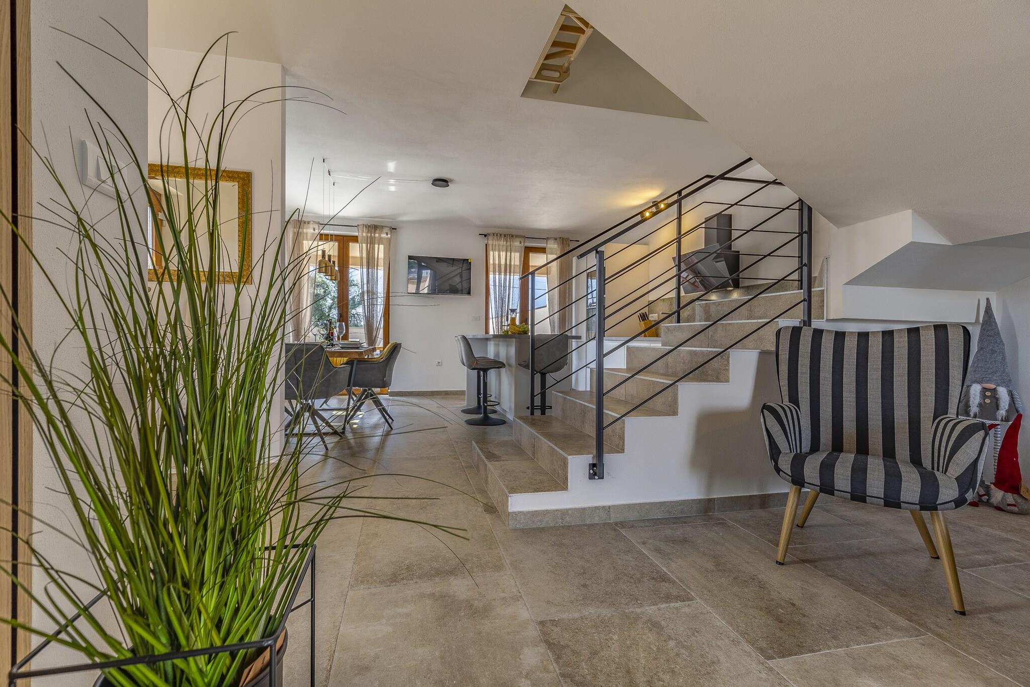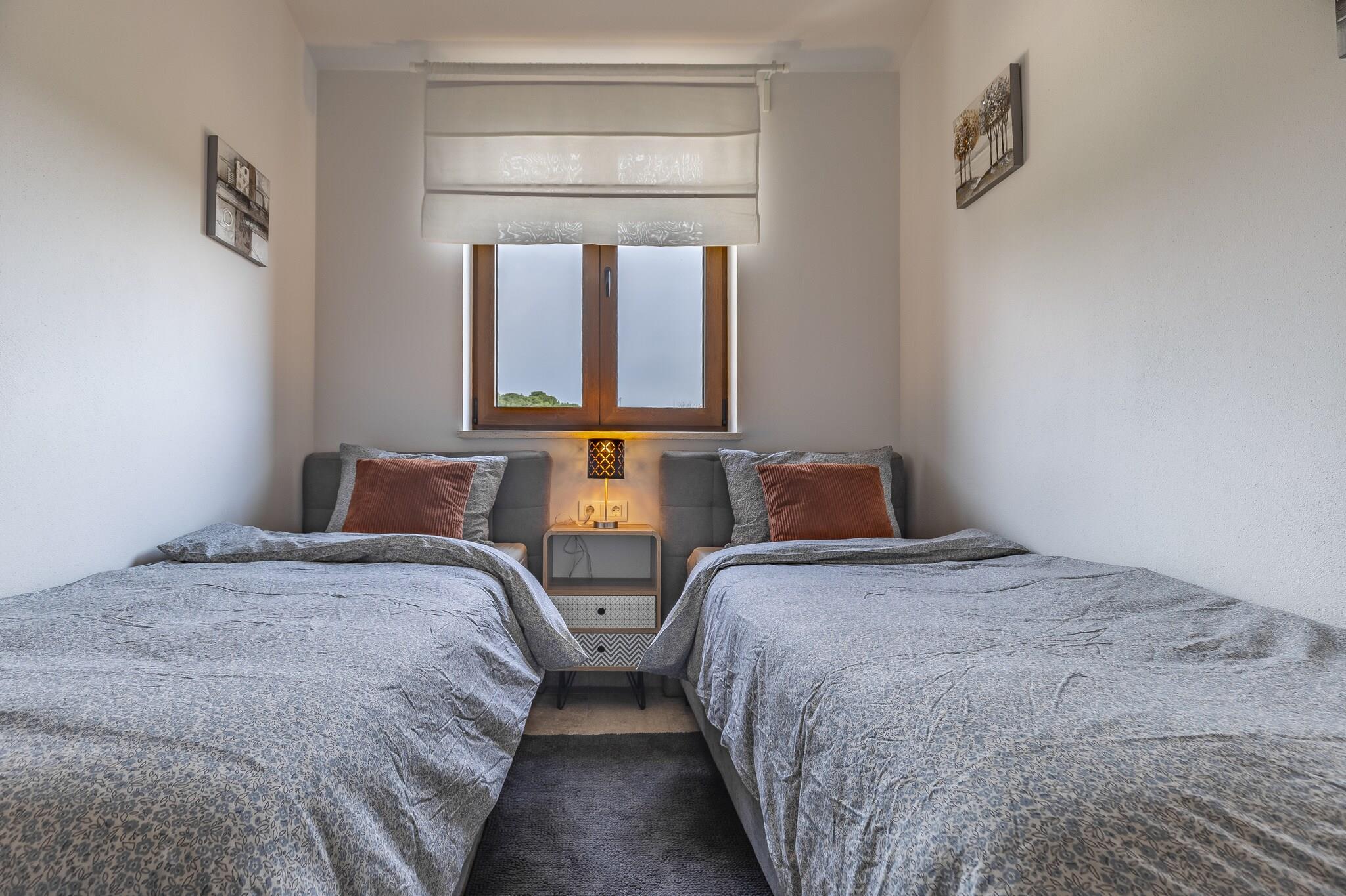 Diese geräumige Villa mit 3 Schlafzimmern liegt nur 1 km vom Zentrum von Vodnjan entfernt und bietet Platz für bis zu 7 Gäste. Sie bietet einen erholsamen Rückzugsort nahe der istrischen Küste. Meer und Strand sind nur 5 km und der Flughafen Pula nur 9 km entfernt. Somit ist sie ein idealer Ausgangspunkt, um die kulturellen und natürlichen Highlights der Region zu erkunden. Die Villa verfügt über eine voll ausgestattete Küche, ein gemütliches Wohnzimmer mit Sat-TV und zwei Badezimmer, eines davon en-suite mit Balkon. Die Schlafzimmer sind klimatisiert. Zur weiteren Ausstattung gehören ein Waschraum, ein Kinderbett und ein Hochstuhl. Im Außenbereich erwarten Sie eine private Terrasse, ein eingezäunter Garten und ein Grillplatz – ideal für Mahlzeiten im Freien. Gäste können im privaten Whirlpool, in der Sauna oder im Außenpool entspannen. Kinder werden die Spielgeräte, Tischtennis und Tischfußball lieben, während Erwachsene auf den Sonnenliegen entspannen oder sich im Gartenmöbel entspannen können. Kostenlose Parkplätze und WLAN sind inklusive.