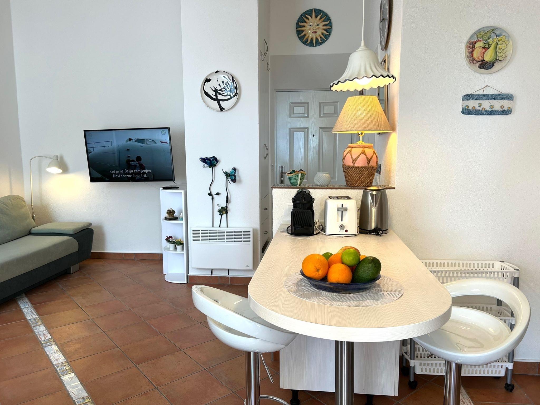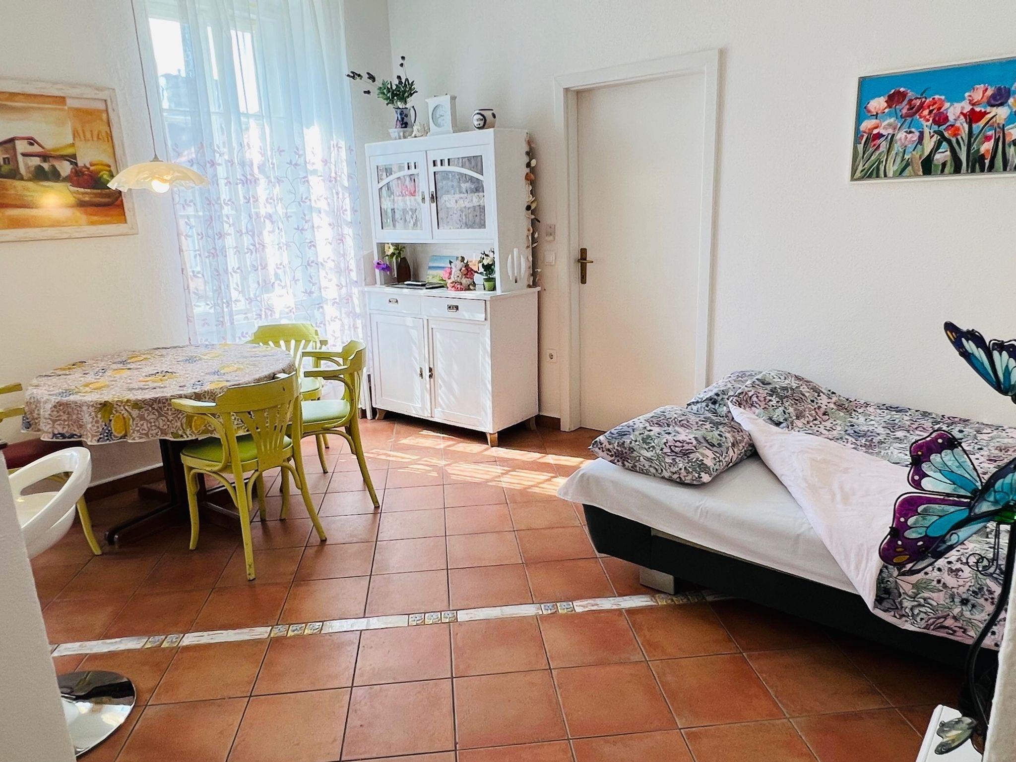 Ferienwohnung bietet Platz für 4 Gäste. Die Betten sind in Schlafzimmern, die es 1 gibt, und in Wohnzimmer, innerhalb einer Gesamtfläche von 36m2, angeordnet. Die Gäste haben einen eigenen Balkon zur Verfügung, auf der sie in warmen Sommernächten genießen können. Das Apartment bietet Meerblick. IM PREIS INBEGRIFFEN: Kurtaxe, Endreinigung, Klimatisierung, Internet, Bügeleisen, Bügelbrett, Föhn. Die Verfügbarkeit zusätzlicher Dienstleistungen in Ihrem reservierten Termin und die Preise derselben (falls nicht aufgeführt) müssen im Voraus überprüft werden. Zusätzliche Dienstleistungen die in der Zahlungsaufforderung nicht aufgeführt sind werden direkt beim Vermieter bezahlt, angenommen der Gast nutzt auch diese.