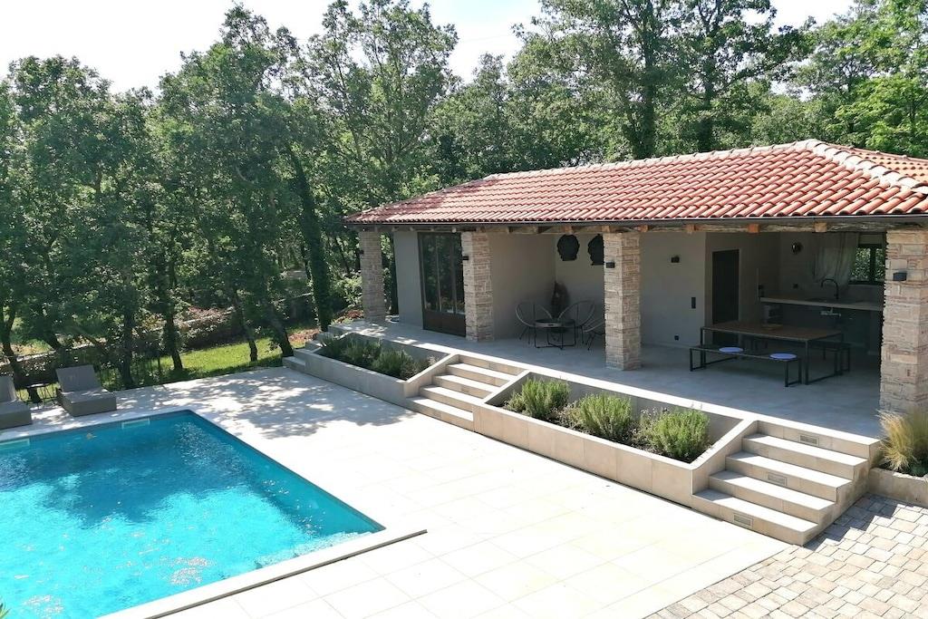 Die Villa VinoSelo erwartet Sie mit einem saisonalen Außenpool und kostenfreiem WLAN in Vižinada, 19 km von Porec und Novigrad entfernt. Die Villa ist unterteilt in 2 Bereiche, beide mit Pool- und Gartenblick. Sie nutzen bei Buchung beide Wohnbereiche und somit das ganze Haus und Grundstück. Sie werden in unseren Boxspringbetten einen wundervoll erholsamen Schlaf finden. In der Outdoorküche können Sie sich leckere Mahlzeiten zubereiten um diese gemeinsam zu geniessen. Freuen Sie sich auf einen Garten mit Spielmöglichkeiten. Entspannen Sie sich in der Kingsize-Hängematte zwischen den Bäumen.