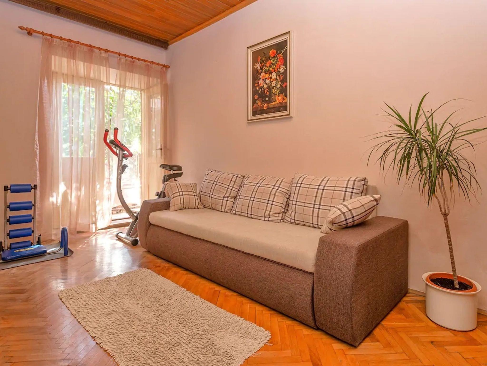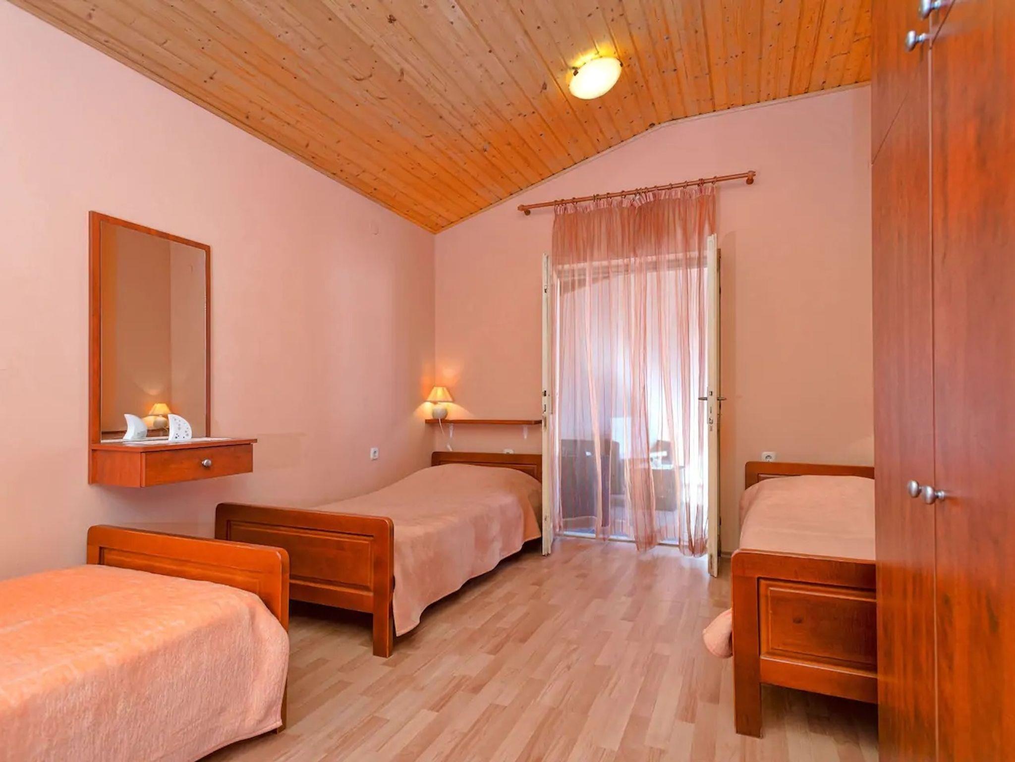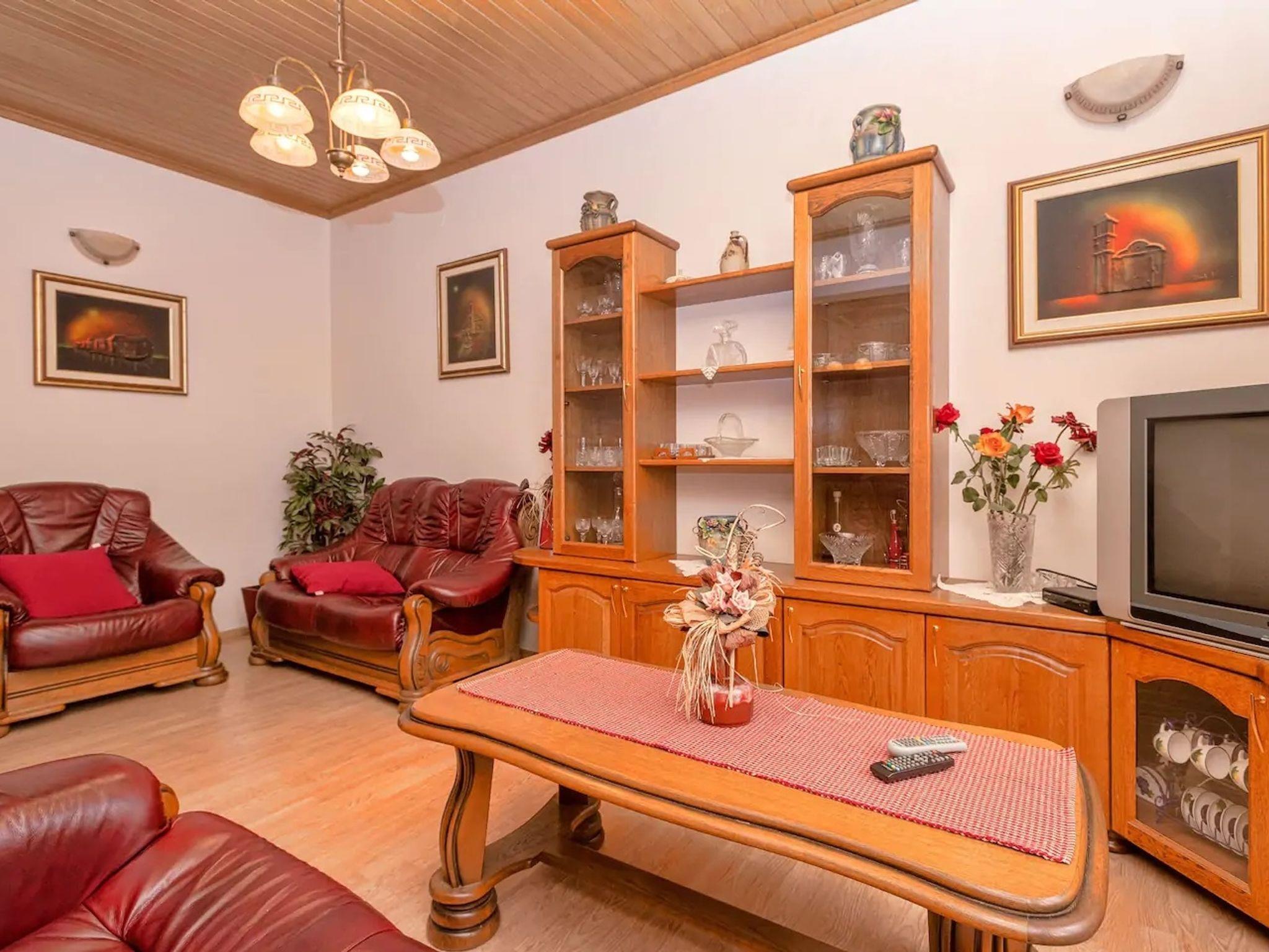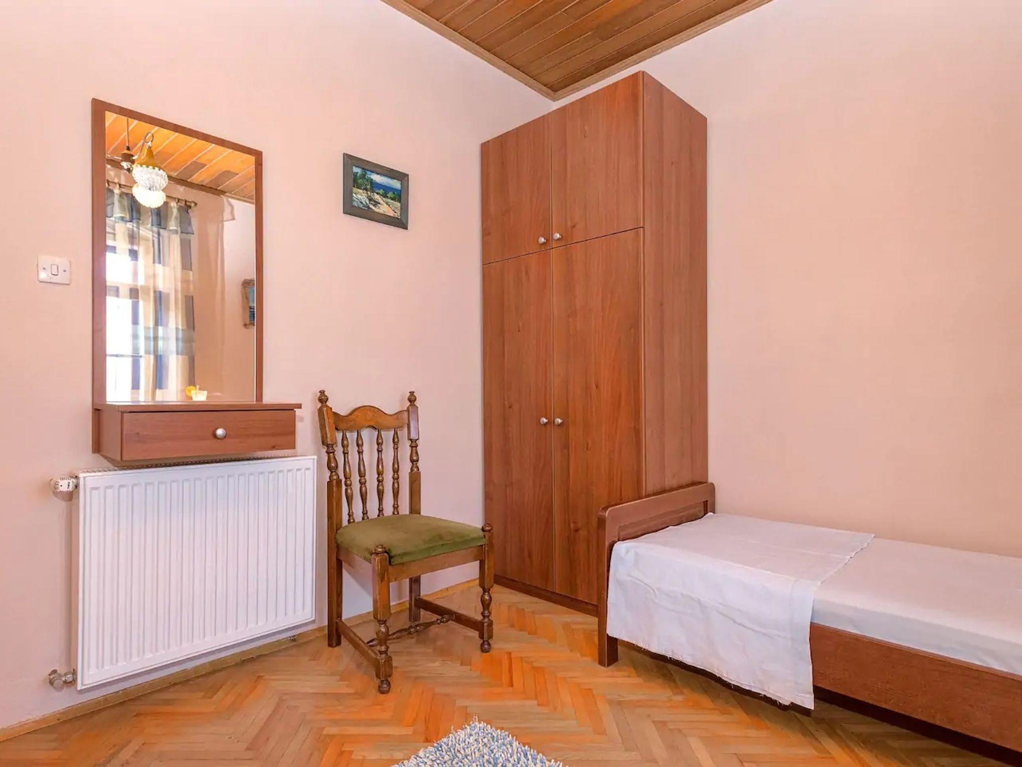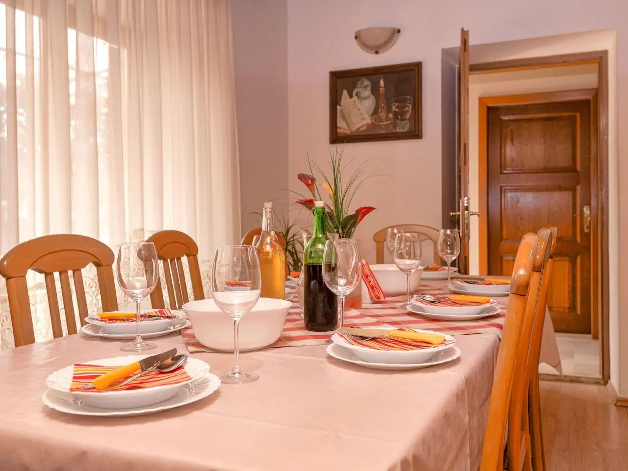 Haus bietet Platz für 11 Gäste. Die Betten sind in Schlafzimmern, die es 4 gibt, und in Wohnzimmer, innerhalb einer Gesamtfläche von 131m2, angeordnet. Die Gäste haben eine eigene Terrasse zur Verfügung, auf der sie in warmen Sommernächten genießen können. Für vollen Genuss und Entspannung gibt es einen privaten Grill für Gäste dieser Unterkunft. In der Unterkunftseinheit besteht die Möglichkeit des Mitbringens von Haustieren gegen Aufpreis. Räume der gebuchten Unterkunftseinheit werden nicht in eine Ganze verbunden. IM PREIS INBEGRIFFEN: Kurtaxe, Endreinigung, Klimatisierung, Parkplatz, Internet, Kinderbett, Zusatzbett, Bügeleisen, Bügelbrett, Föhn, tragbarer Grill. VERBINDLICHE ZUSÄTZLICHE KOSTEN: Aufzahlung für Kurzaufenthalte (prozentualer Zuschlag pro Nächtigungsanzahl: 30% - 1, 20% - 2, 10% - 3). UNVERBINDLICHE ZUSÄTZLICHE KOSTEN: Haustiere (7,00 € pro Nacht). Die Verfügbarkeit zusätzlicher Dienstleistungen in Ihrem reservierten Termin und die Preise derselben (falls nicht aufgeführt) müssen im Voraus überprüft werden. Zusätzliche Dienstleistungen die in der Zahlungsaufforderung nicht aufgeführt sind werden direkt beim Vermieter bezahlt, angenommen der Gast nutzt auch diese. Ermäßigung auf den Grundpreis: Gratistag 21=19 (bei einem Aufenthalt von 21 Tagen oder mehr erhalten Sie 2 Gratistage für den Aufenthalt bis 31.12.26).