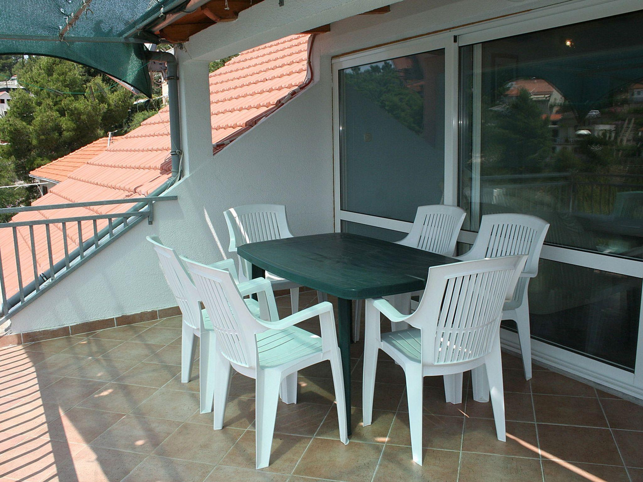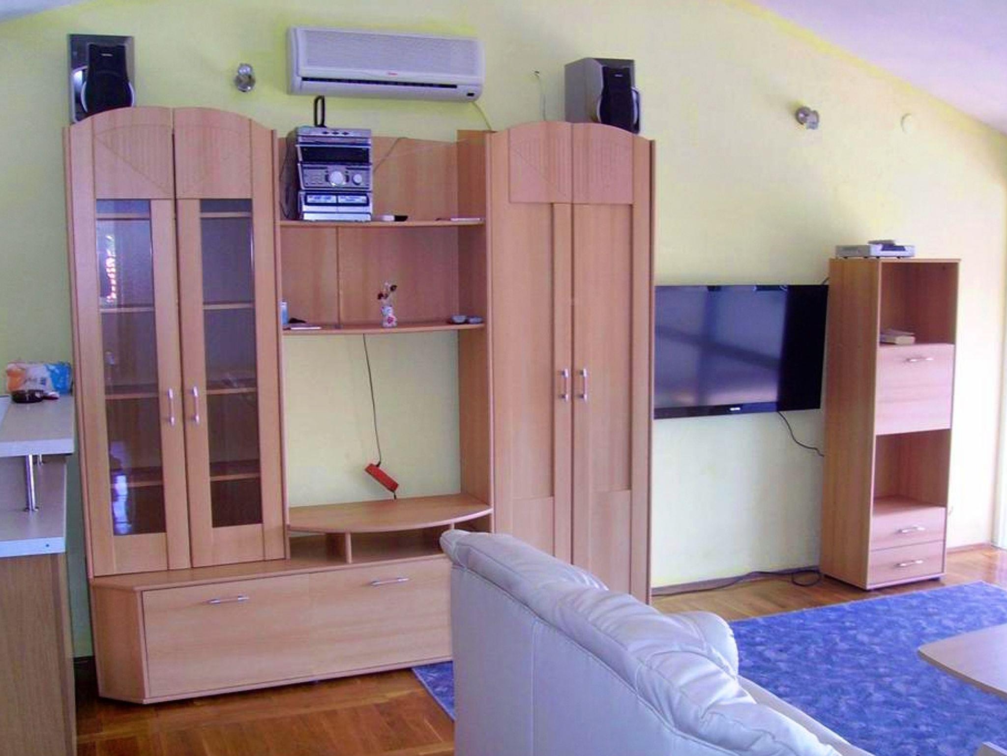 Ferienwohnung bietet Platz für 6 Gäste. Die Betten sind in Schlafzimmern, die es 3 gibt, innerhalb einer Gesamtfläche von 78m2, angeordnet. Die Gäste haben eine eigene Terrasse zur Verfügung, auf der sie in warmen Sommernächten genießen können. Das Apartment bietet Meerblick. Es ist erlaubt, Speisen auf dem Gemeinschafts-Grill vorzubereiten. In der Unterkunftseinheit besteht die Möglichkeit des Mitbringens von Haustieren gegen Aufpreis. IM PREIS INBEGRIFFEN: Kurtaxe, Endreinigung, Klimatisierung, Parkplatz, Bügeleisen, Föhn. VERBINDLICHE ZUSÄTZLICHE KOSTEN: Aufzahlung für Kurzaufenthalte (prozentualer Zuschlag pro Nächtigungsanzahl: 30% - 1, 20% - 2, 10% - 3). UNVERBINDLICHE ZUSÄTZLICHE KOSTEN: Wäschewaschen (5,00 € Waschen), Bootsanlegeplatz (7,00 € pro Nacht), Haustiere (7,00 € pro Nacht). Die Verfügbarkeit zusätzlicher Dienstleistungen in Ihrem reservierten Termin und die Preise derselben (falls nicht aufgeführt) müssen im Voraus überprüft werden. Zusätzliche Dienstleistungen die in der Zahlungsaufforderung nicht aufgeführt sind werden direkt beim Vermieter bezahlt, angenommen der Gast nutzt auch diese.