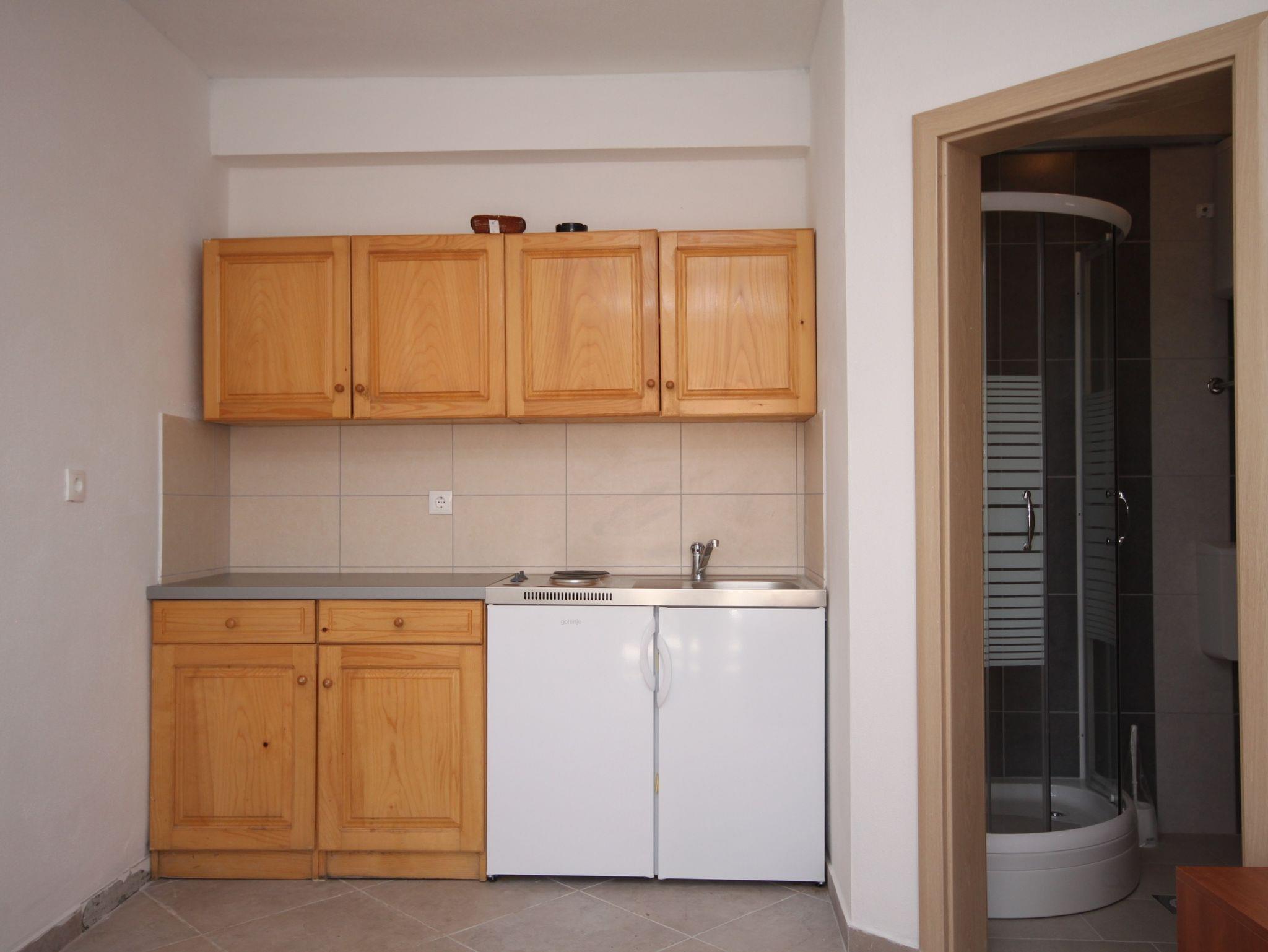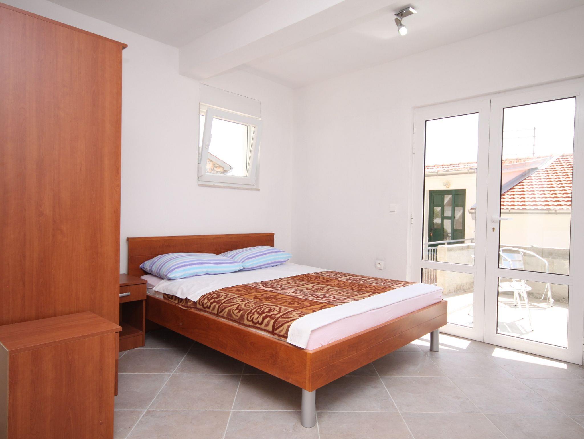 Studio bietet Platz für 2 Gäste. Die Betten sind in Schlafzimmern, die es 1 gibt, innerhalb einer Gesamtfläche von 20m2, angeordnet. Die Gäste haben eine eigene Terrasse zur Verfügung, auf der sie in warmen Sommernächten genießen können. Das Studio-Apartment bietet Meerblick. Es ist erlaubt, Speisen auf dem Gemeinschafts-Grill vorzubereiten. In der Unterkunftseinheit besteht die Möglichkeit des Mitbringens von Haustieren gegen Aufpreis. IM PREIS INBEGRIFFEN: Kurtaxe, Endreinigung, Parkplatz, Internet, Bügeleisen, Föhn. VERBINDLICHE ZUSÄTZLICHE KOSTEN: Aufzahlung für Kurzaufenthalte (prozentualer Zuschlag pro Nächtigungsanzahl: 30% - 1, 20% - 2, 10% - 3). UNVERBINDLICHE ZUSÄTZLICHE KOSTEN: Wäschewaschen (5,00 € Waschen), Bootsanlegeplatz (5,00 € pro Nacht), Haustiere (7,00 € pro Nacht). Die Verfügbarkeit zusätzlicher Dienstleistungen in Ihrem reservierten Termin und die Preise derselben (falls nicht aufgeführt) müssen im Voraus überprüft werden. Zusätzliche Dienstleistungen die in der Zahlungsaufforderung nicht aufgeführt sind werden direkt beim Vermieter bezahlt, angenommen der Gast nutzt auch diese.