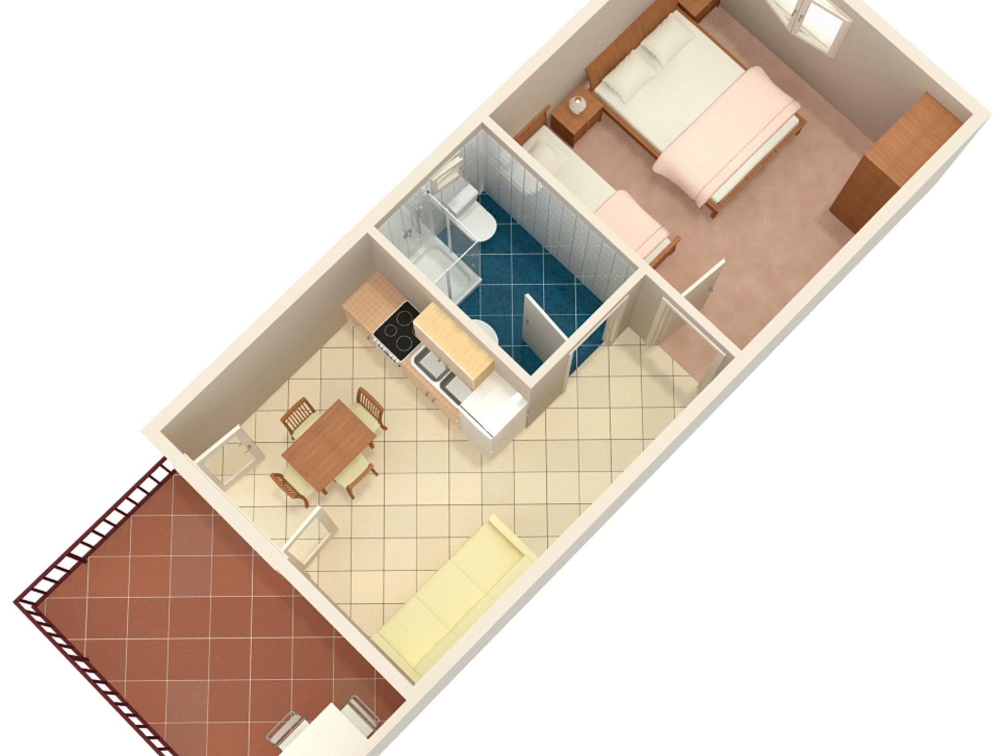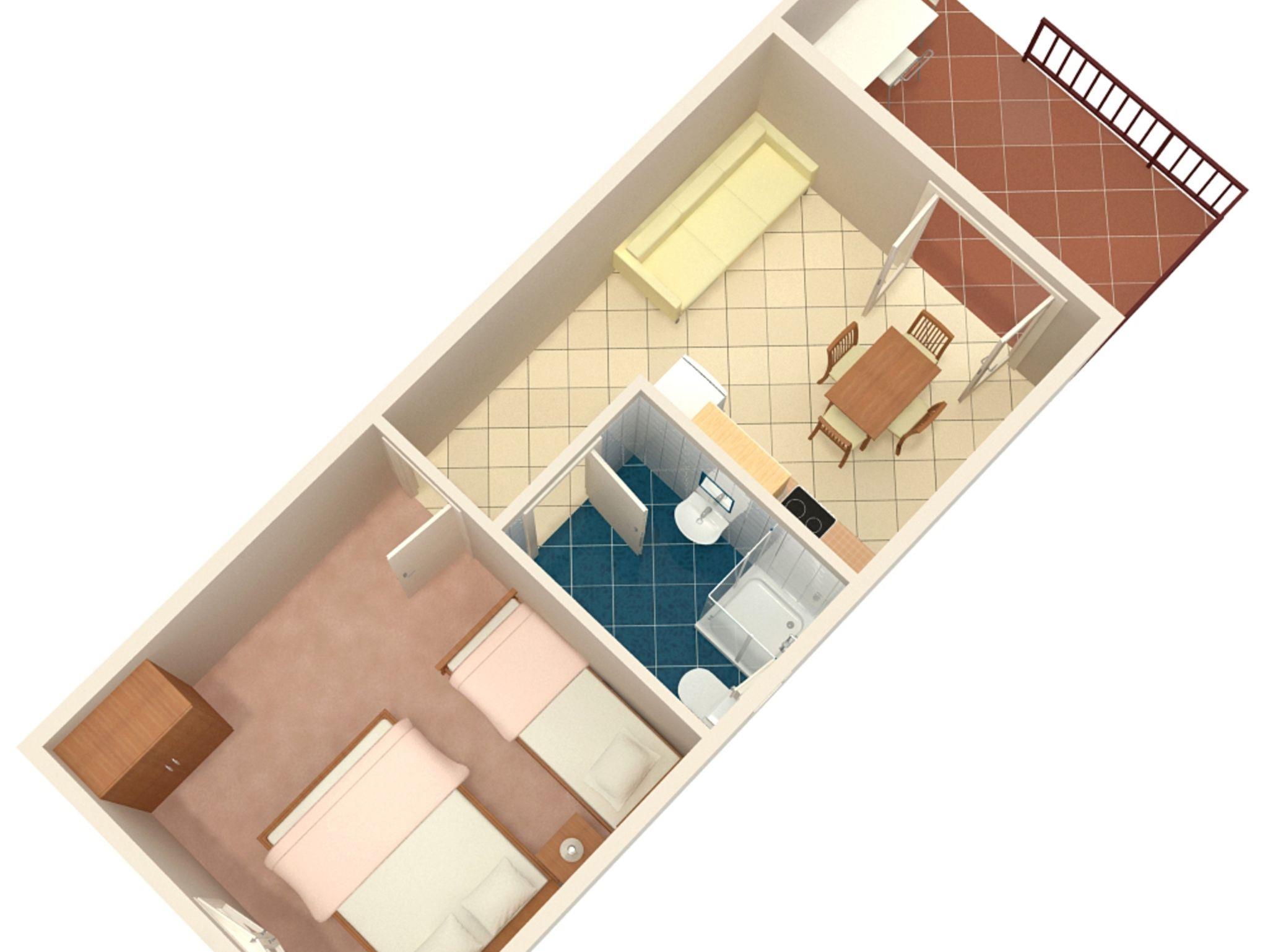Ferienwohnung bietet Platz für 4 Gäste. Die Betten sind in Schlafzimmern, die es 1 gibt, und in Esszimmer, innerhalb einer Gesamtfläche von 28m2, angeordnet. Die Gäste haben eine eigene Terrasse zur Verfügung, auf der sie in warmen Sommernächten genießen können. Es ist erlaubt, Speisen auf dem Gemeinschafts-Grill vorzubereiten. In der Unterkunftseinheit besteht die Möglichkeit des Mitbringens von Haustieren gegen Aufpreis. IM PREIS INBEGRIFFEN: Kurtaxe, Endreinigung, Klimatisierung, Parkplatz, Internet, Bootsanlegeplatz. VERBINDLICHE ZUSÄTZLICHE KOSTEN: Aufzahlung für Kurzaufenthalte (prozentualer Zuschlag pro Nächtigungsanzahl: 30% - 1, 20% - 2, 10% - 3). UNVERBINDLICHE ZUSÄTZLICHE KOSTEN: Haustiere (10,00 € pro Nacht). Die Verfügbarkeit zusätzlicher Dienstleistungen in Ihrem reservierten Termin und die Preise derselben (falls nicht aufgeführt) müssen im Voraus überprüft werden. Zusätzliche Dienstleistungen die in der Zahlungsaufforderung nicht aufgeführt sind werden direkt beim Vermieter bezahlt, angenommen der Gast nutzt auch diese. Ermäßigung auf den Grundpreis: Gratistag 14=13 (bei einem Aufenthalt von 14 Tagen oder mehr erhalten Sie einen Gratistag für den Aufenthalt bis 31.12.26).