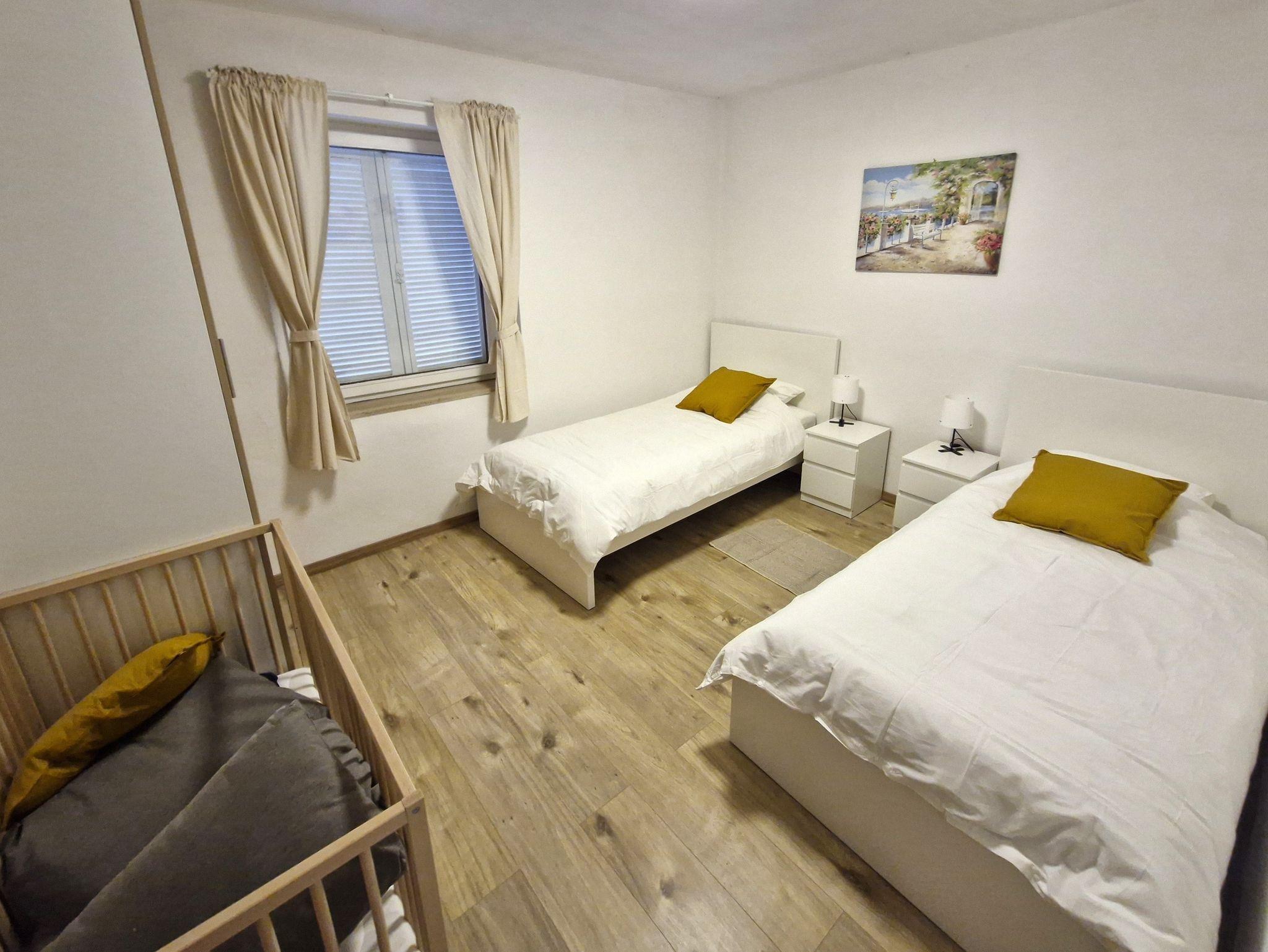 Ferienwohnung bietet Platz für 6 Gäste. Die Betten sind in Schlafzimmern, die es 3 gibt, innerhalb einer Gesamtfläche von 64m2, angeordnet. Die Gäste haben eine eigene Terrasse zur Verfügung, auf der sie in warmen Sommernächten genießen können. Für vollen Genuss und Entspannung gibt es einen privaten Grill für Gäste dieser Unterkunft. In der Unterkunftseinheit besteht die Möglichkeit des Mitbringens von Haustieren gegen Aufpreis. IM PREIS INBEGRIFFEN: Kurtaxe, Endreinigung, Klimatisierung, Parkplatz, Internet. UNVERBINDLICHE ZUSÄTZLICHE KOSTEN: Haustiere (10,00 € pro Nacht). Die Verfügbarkeit zusätzlicher Dienstleistungen in Ihrem reservierten Termin und die Preise derselben (falls nicht aufgeführt) müssen im Voraus überprüft werden. Zusätzliche Dienstleistungen die in der Zahlungsaufforderung nicht aufgeführt sind werden direkt beim Vermieter bezahlt, angenommen der Gast nutzt auch diese.