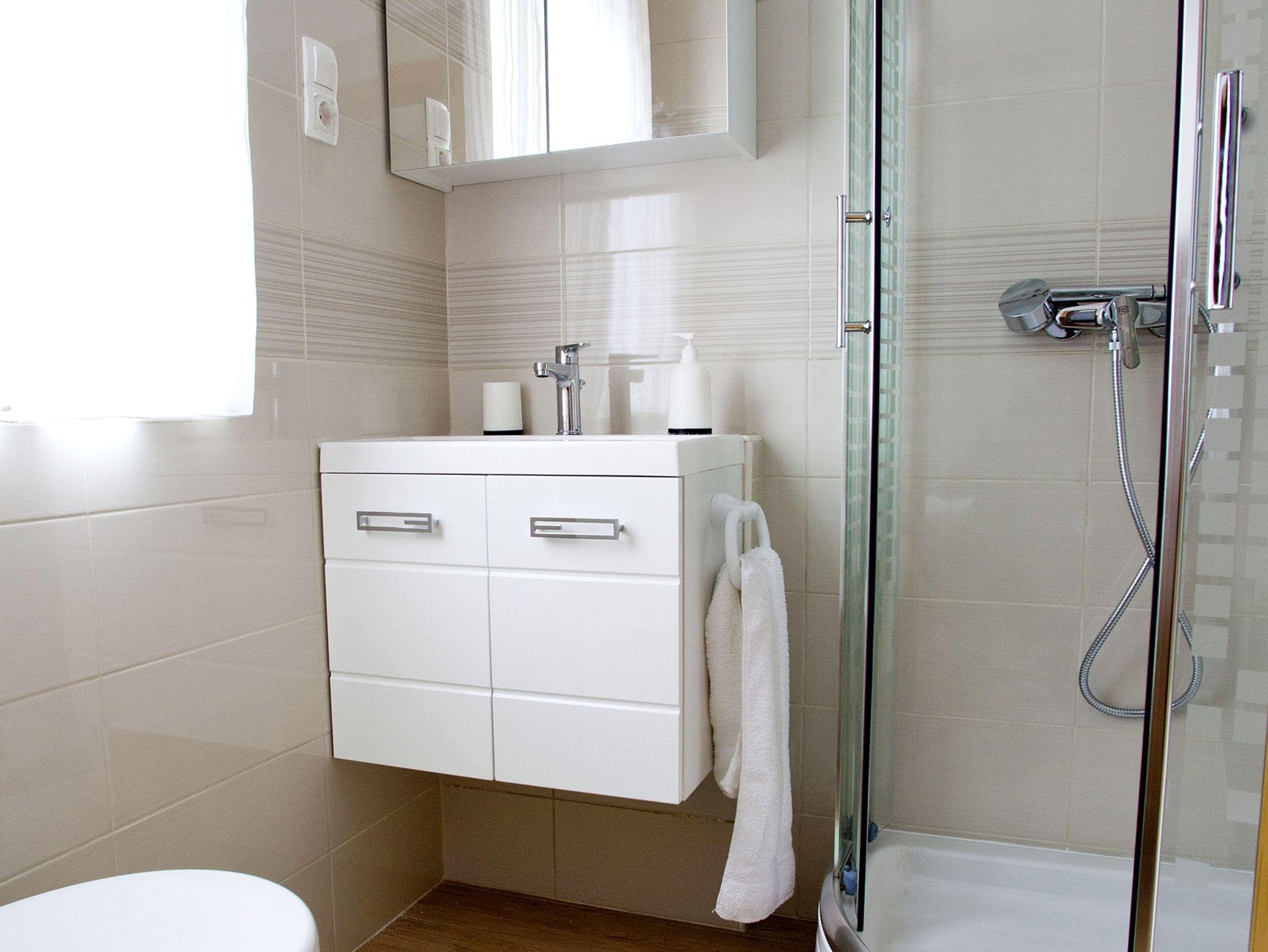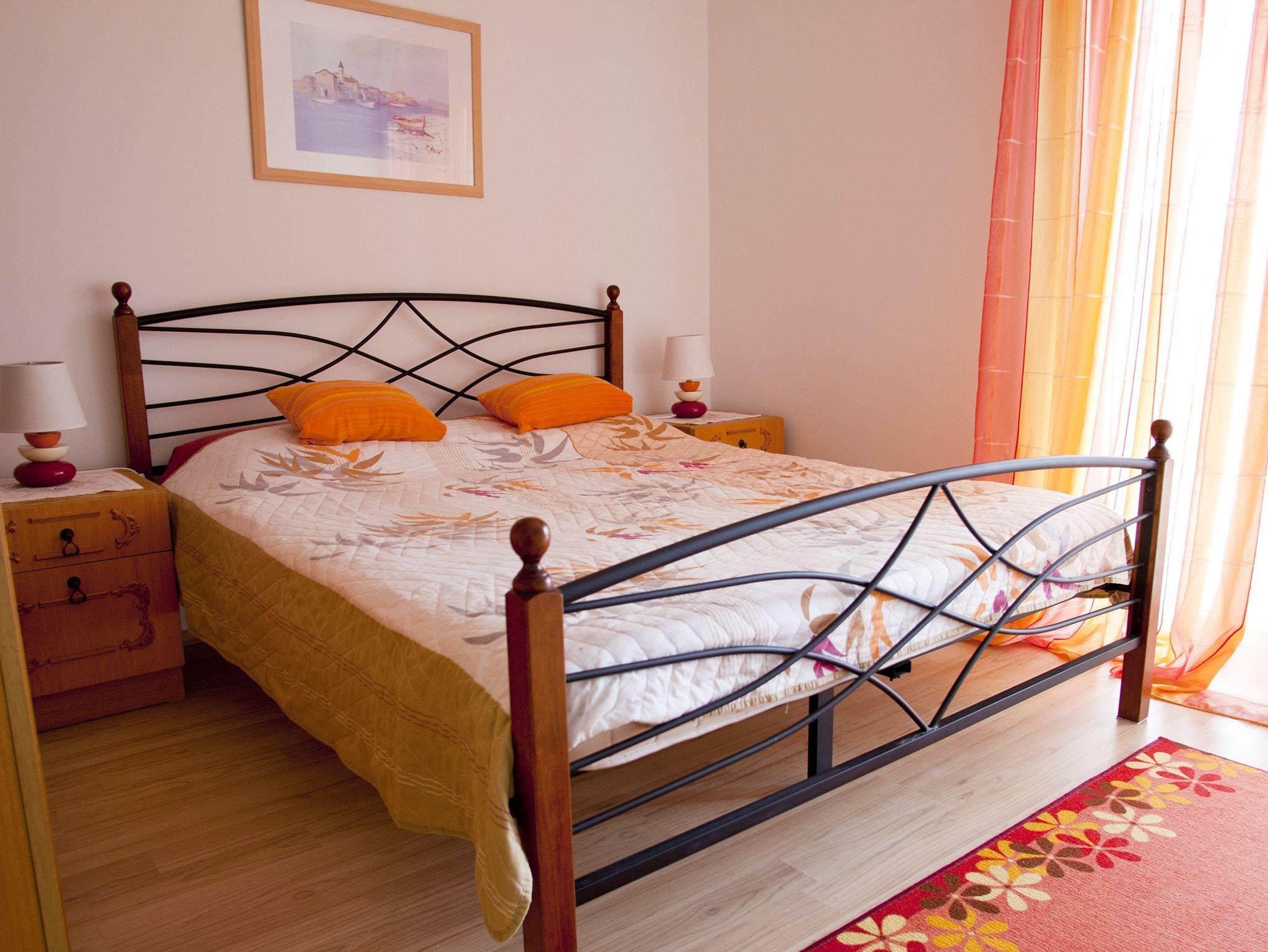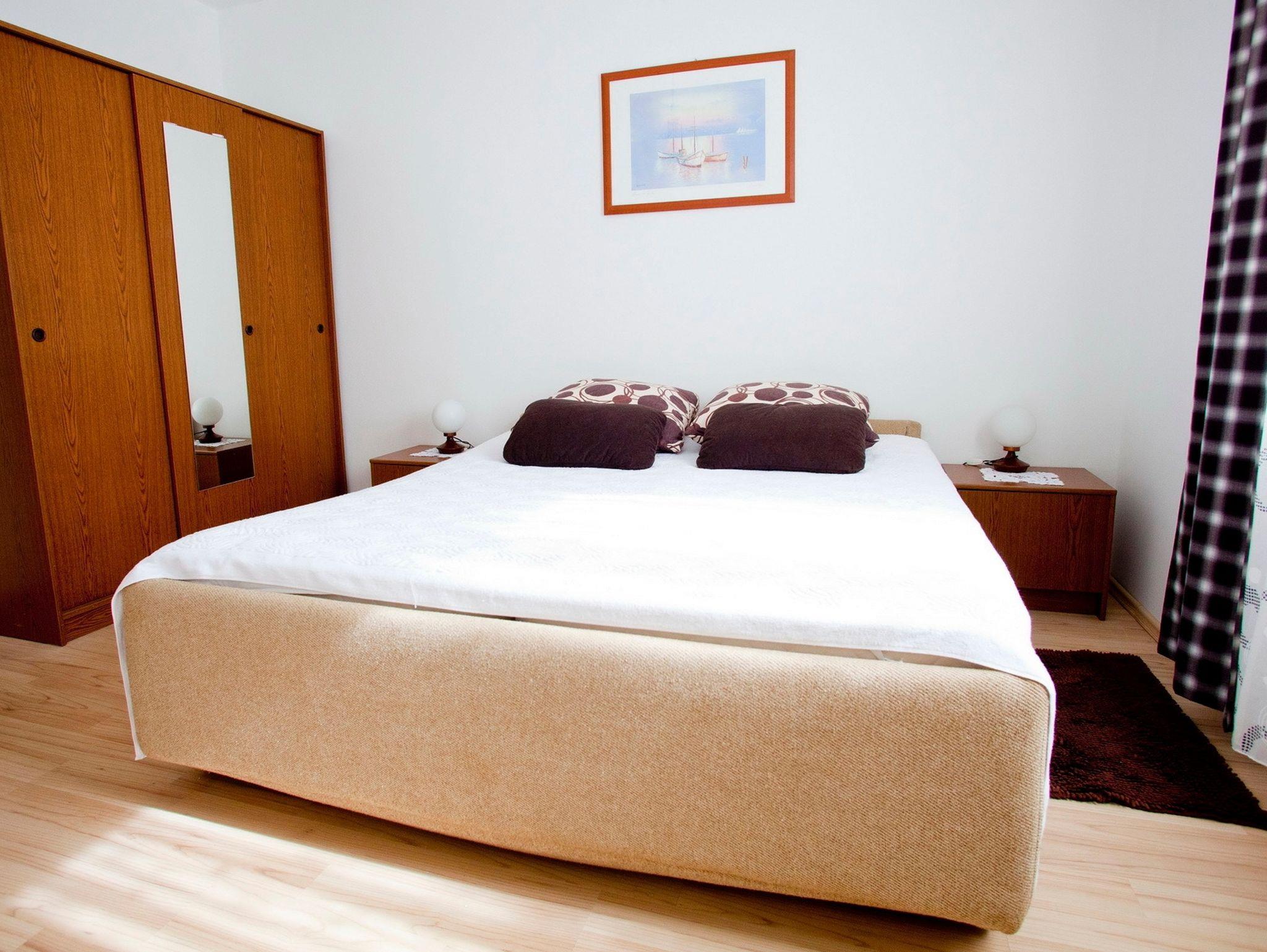 Ferienwohnung bietet Platz für 6 Gäste. Die Betten sind in Schlafzimmern, die es 2 gibt, und in Wohnzimmer, innerhalb einer Gesamtfläche von 46m2, angeordnet. Die Gäste haben eine eigene Terrasse zur Verfügung, auf der sie in warmen Sommernächten genießen können. Das Apartment bietet Meerblick. Für vollen Genuss und Entspannung gibt es einen privaten Grill für Gäste dieser Unterkunft. IM PREIS INBEGRIFFEN: Kurtaxe, Endreinigung, Klimatisierung, Parkplatz, Internet, Bügeleisen, Bügelbrett, Föhn. VERBINDLICHE ZUSÄTZLICHE KOSTEN: Aufzahlung für Kurzaufenthalte (prozentualer Zuschlag pro Nächtigungsanzahl: 30% - 1, 20% - 2, 10% - 3). UNVERBINDLICHE ZUSÄTZLICHE KOSTEN: Wäschewaschen (7,00 € Waschen). Die Verfügbarkeit zusätzlicher Dienstleistungen in Ihrem reservierten Termin und die Preise derselben (falls nicht aufgeführt) müssen im Voraus überprüft werden. Zusätzliche Dienstleistungen die in der Zahlungsaufforderung nicht aufgeführt sind werden direkt beim Vermieter bezahlt, angenommen der Gast nutzt auch diese.