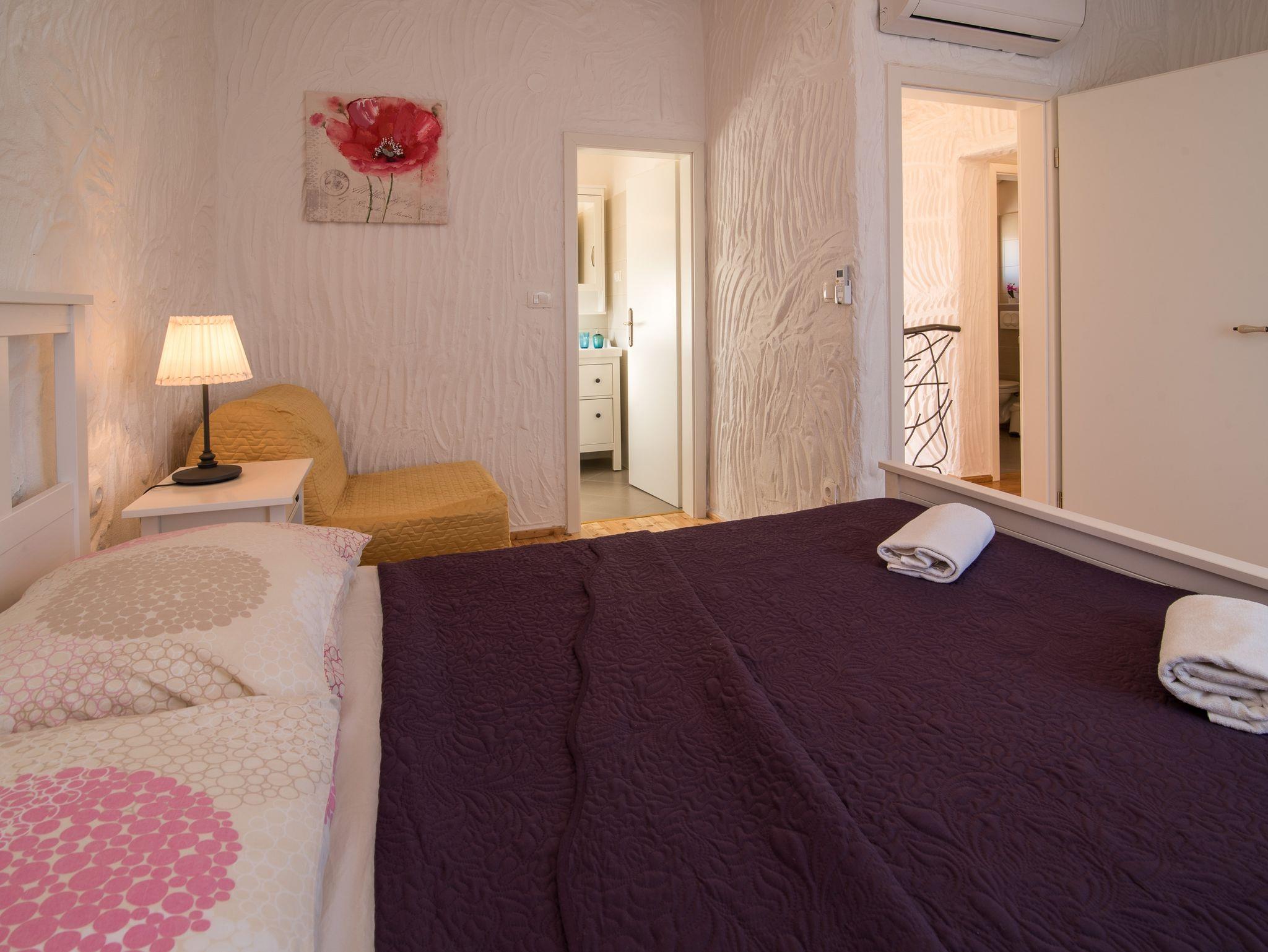 Haus bietet Platz für 8 Gäste. Die Betten sind in Schlafzimmern, die es 3 gibt, innerhalb einer Gesamtfläche von 101m2, angeordnet. Die Gäste haben eine eigene Terrasse zur Verfügung, auf der sie in warmen Sommernächten genießen können. Für vollen Genuss und Entspannung gibt es einen privaten Grill für Gäste dieser Unterkunft. Während ihres Aufenthalts können sich Gäste im privaten Schwimmbad entspannen. In der Unterkunftseinheit besteht die Möglichkeit des Mitbringens von Haustieren, und die Dienstleistung ist im Preis der Unterkunft enthalten. IM PREIS INBEGRIFFEN: Endreinigung, Klimatisierung, Pool, Parkplatz, Internet, Haustiere, Kinderbett, Bügeleisen, Bügelbrett, Föhn, tragbarer Grill. VERBINDLICHE ZUSÄTZLICHE KOSTEN: Kurtaxe (Erwachsene 0,93 € - 2,00 € Nacht/Person, Kinderermäßigung 12 - 17 Jahre), Aufzahlung für Kurzaufenthalte (prozentualer Zuschlag pro Nächtigungsanzahl: 30% - 1, 20% - 2, 10% - 3). Die Verfügbarkeit zusätzlicher Dienstleistungen in Ihrem reservierten Termin und die Preise derselben (falls nicht aufgeführt) müssen im Voraus überprüft werden. Zusätzliche Dienstleistungen die in der Zahlungsaufforderung nicht aufgeführt sind werden direkt beim Vermieter bezahlt, angenommen der Gast nutzt auch diese.