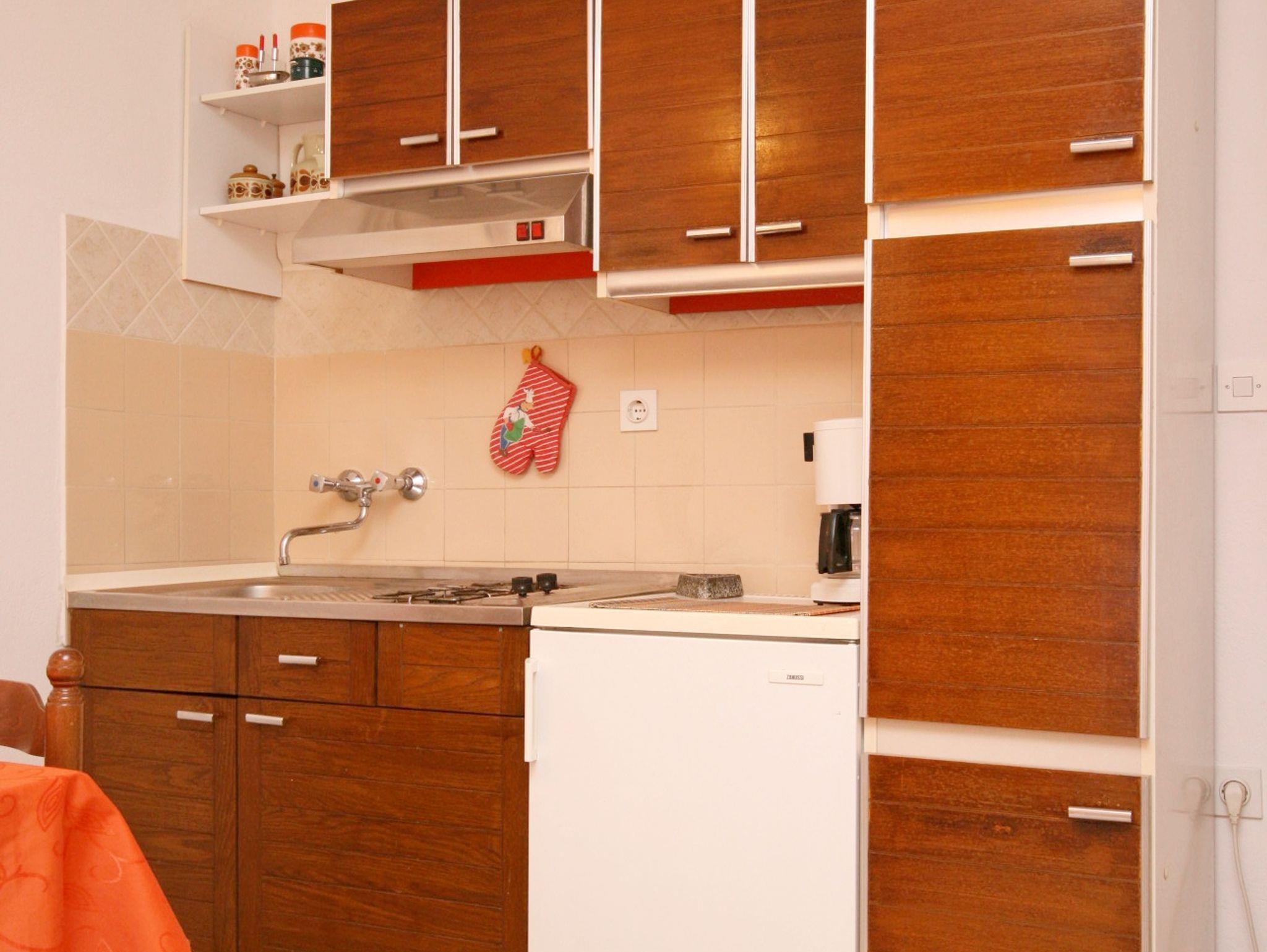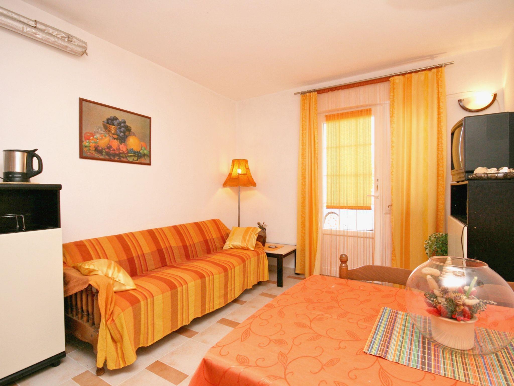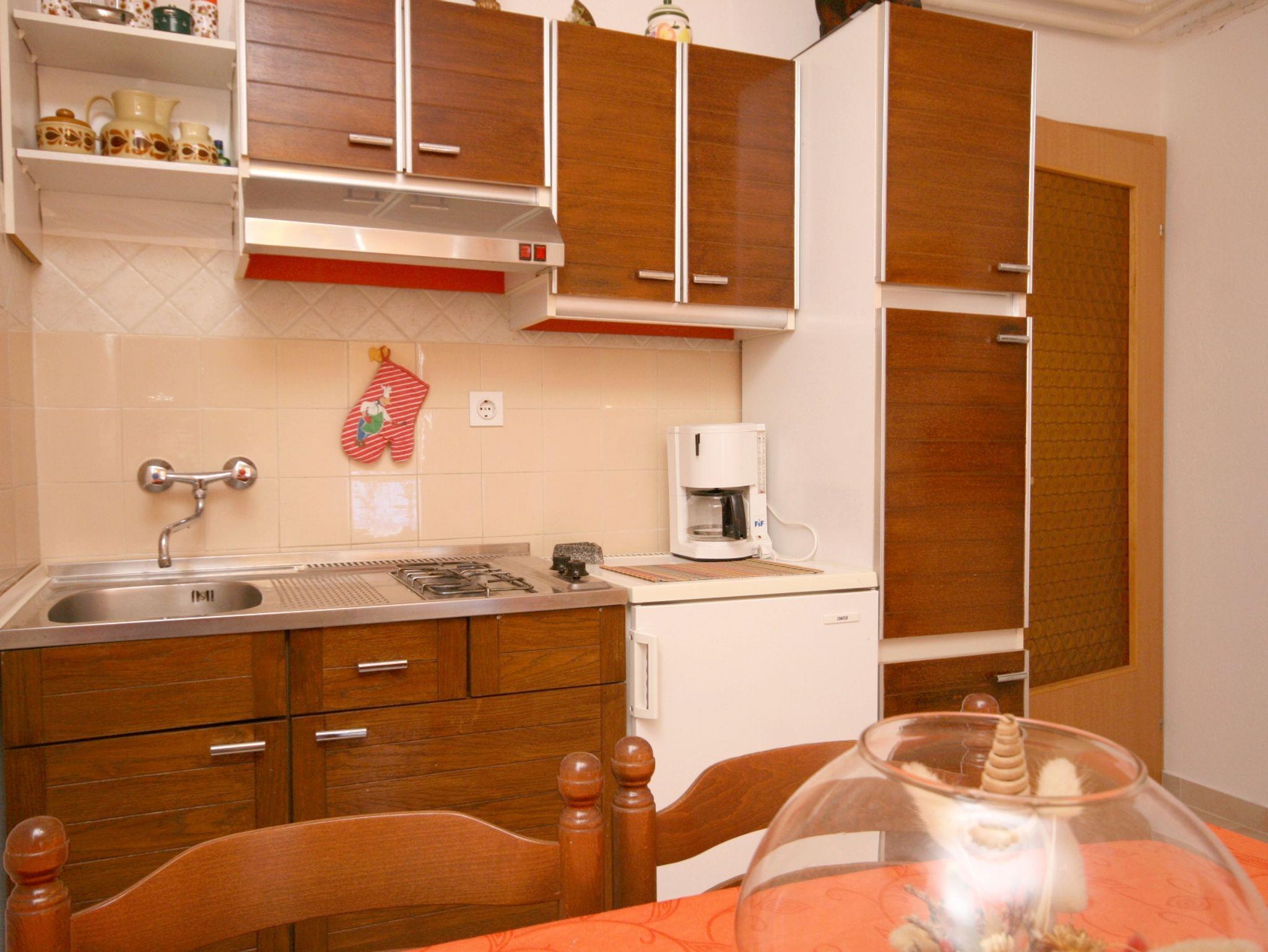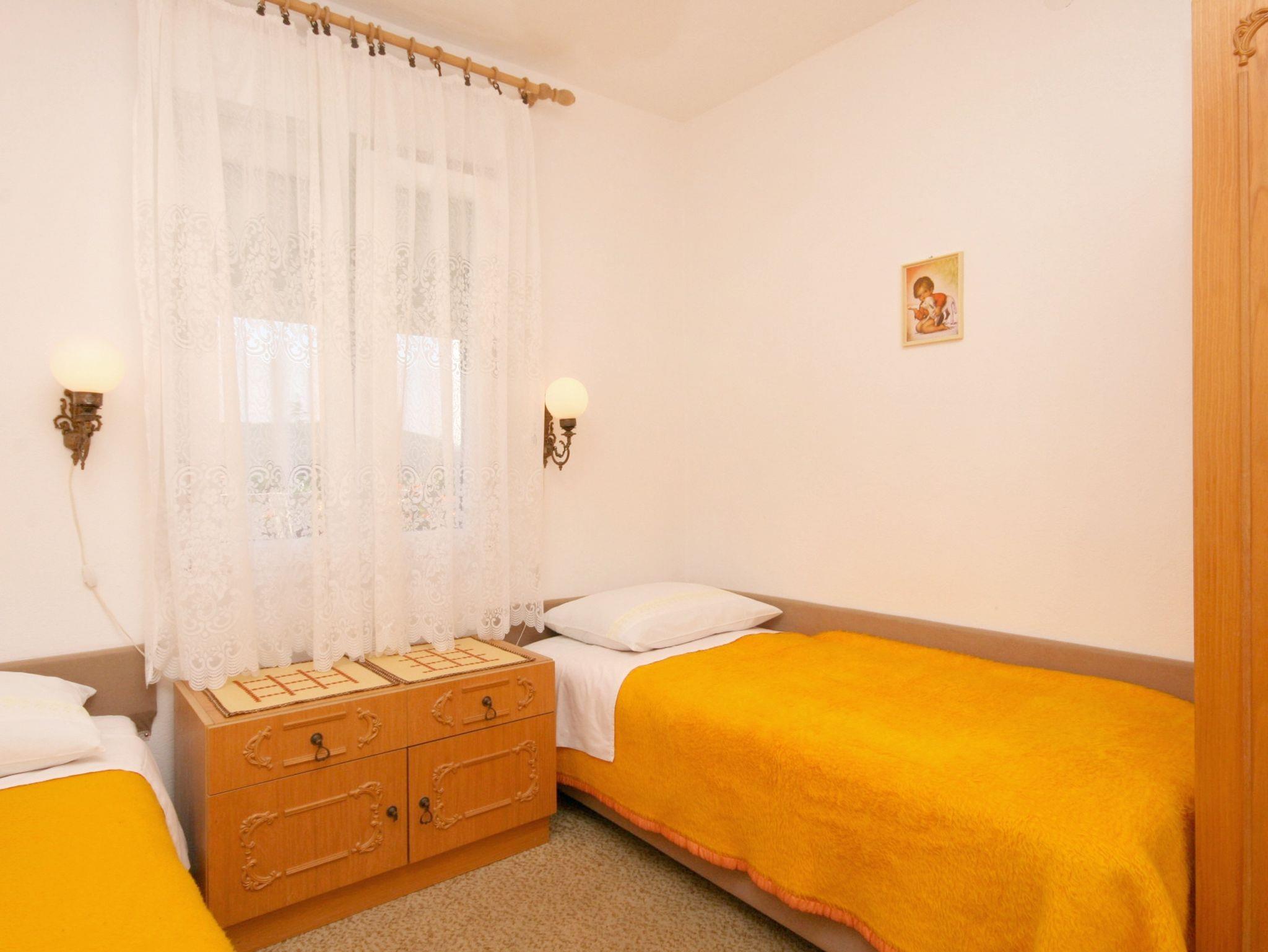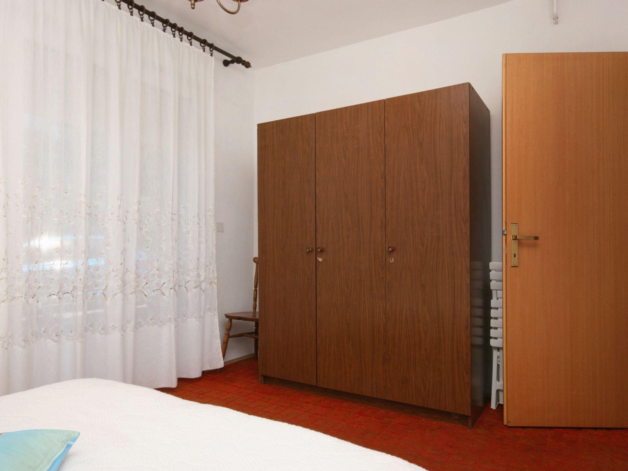 Ferienwohnung bietet Platz für 5 Gäste. Die Betten sind in Schlafzimmern, die es 2 gibt, und in Wohnzimmer, innerhalb einer Gesamtfläche von 44m2, angeordnet. Die Gäste haben eine eigene Terrasse zur Verfügung, auf der sie in warmen Sommernächten genießen können. Das Apartment bietet Meerblick. Für vollen Genuss und Entspannung gibt es einen privaten Grill für Gäste dieser Unterkunft. IM PREIS INBEGRIFFEN: Kurtaxe, Endreinigung, Klimatisierung, Parkplatz, Internet, Bügeleisen, Bügelbrett, Föhn. VERBINDLICHE ZUSÄTZLICHE KOSTEN: Aufzahlung für Kurzaufenthalte (prozentualer Zuschlag pro Nächtigungsanzahl: 30% - 1, 20% - 2, 10% - 3). UNVERBINDLICHE ZUSÄTZLICHE KOSTEN: Wäschewaschen (7,00 € Waschen). Die Verfügbarkeit zusätzlicher Dienstleistungen in Ihrem reservierten Termin und die Preise derselben (falls nicht aufgeführt) müssen im Voraus überprüft werden. Zusätzliche Dienstleistungen die in der Zahlungsaufforderung nicht aufgeführt sind werden direkt beim Vermieter bezahlt, angenommen der Gast nutzt auch diese.