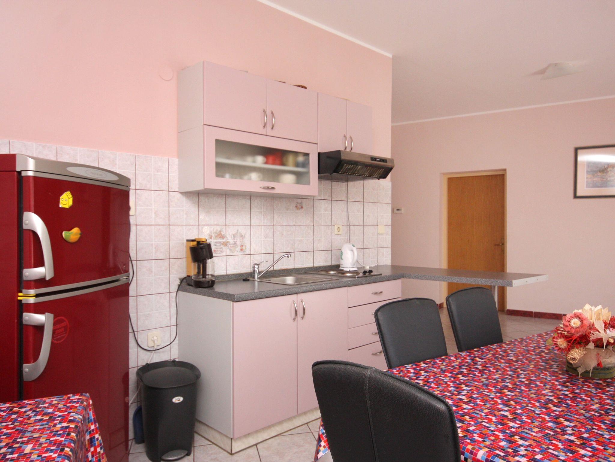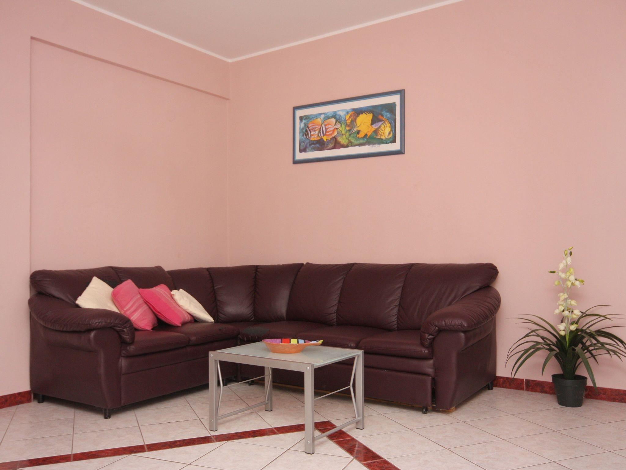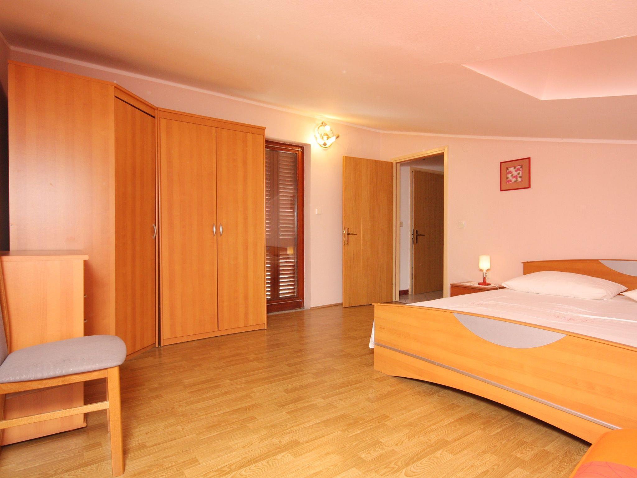 Ferienwohnung bietet Platz für 6 Gäste. Die Betten sind in Schlafzimmern, die es 2 gibt, innerhalb einer Gesamtfläche von 102m2, angeordnet. Die Gäste haben eine eigene Terrasse zur Verfügung, auf der sie in warmen Sommernächten genießen können. Das Apartment bietet Meerblick. Für vollen Genuss und Entspannung gibt es einen privaten Grill für Gäste dieser Unterkunft. IM PREIS INBEGRIFFEN: Kurtaxe, Endreinigung, Klimatisierung, Zentralheizung, Parkplatz, Internet, Bügeleisen, Föhn. VERBINDLICHE ZUSÄTZLICHE KOSTEN: Aufzahlung für Kurzaufenthalte (prozentualer Zuschlag pro Nächtigungsanzahl: 30% - 1, 20% - 2, 10% - 3). UNVERBINDLICHE ZUSÄTZLICHE KOSTEN: Zusatzbett (10,00 € pro Nacht). Die Verfügbarkeit zusätzlicher Dienstleistungen in Ihrem reservierten Termin und die Preise derselben (falls nicht aufgeführt) müssen im Voraus überprüft werden. Zusätzliche Dienstleistungen die in der Zahlungsaufforderung nicht aufgeführt sind werden direkt beim Vermieter bezahlt, angenommen der Gast nutzt auch diese. Ermäßigung auf den Grundpreis: Gratistag 21=19 (bei einem Aufenthalt von 21 Tagen oder mehr erhalten Sie 2 Gratistage für den Aufenthalt bis 31.12.26).
