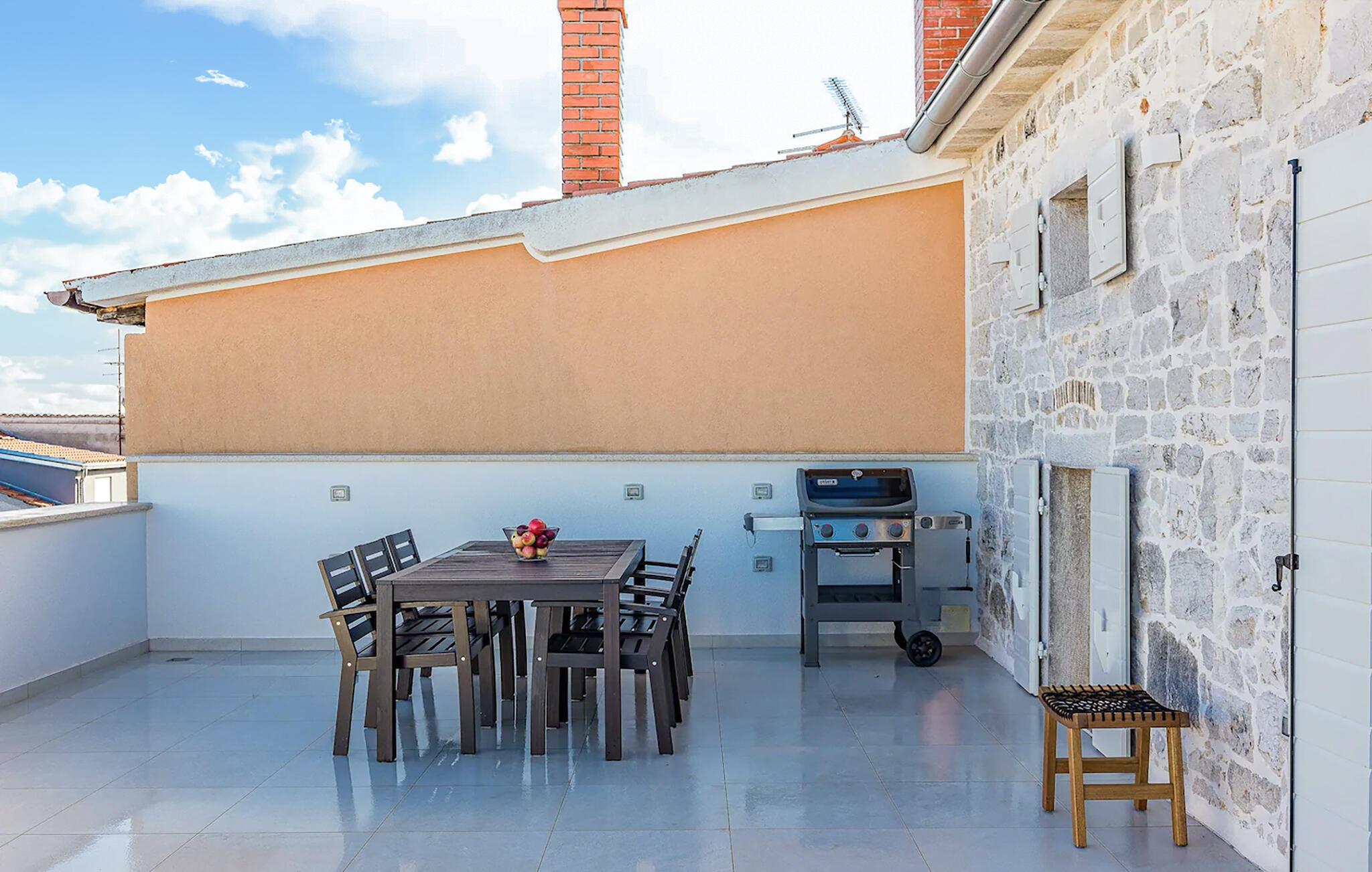 Genießen Sie Ihren nächsten Urlaub in diesem schönen Kroatien-Ferienhaus. Ihr einladendes Domizil liegt nur einen kurzen Spaziergang vom Strand entfernt und bietet alles, was Sie für eine unvergessliche Auszeit an der Adriaküste benötigen. Starten Sie Ihren Tag auf der großzügigen Terrasse, die mit einem spektakulären Blick auf das Meer besticht. Entspannen Sie sich mit einem Erfrischungsgetränk und lassen Sie den Blick über die Küste schweifen. Im Inneren des Hauses besticht der offene Wohnbereich durch seine moderne und stilvolle Einrichtung. Genießen Sie das mediterrane Flair, während Sie hier zusammen mit Ihren Liebsten speisen, entspannen und Pläne für den nächsten Tag schmieden.