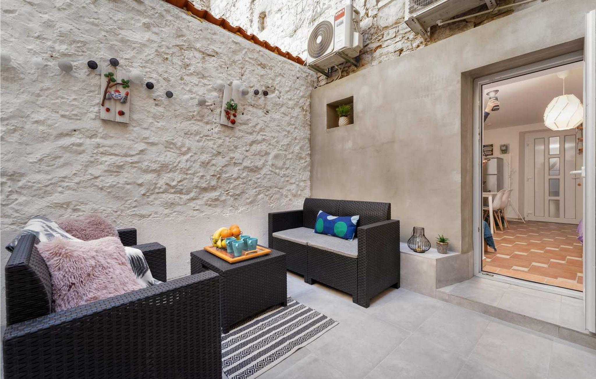 Ferienwohnung Tiana ist 70 qm und erstreckt sich über zwei Etagen. Im äußeren Teil befindet sich eine Terrasse mit Gartenmöbeln. Im Erdgeschoss sind ein Wohnzimmer, eine voll ausgestattete Küche, ein Esstisch und eine separate Toilette. Im ersten Stock gibt es ein Schlafzimmer mit Doppelbett und ein Badezimmer mit Dusche. Im zweiten Stock ist ein Doppelzimmer mit zusätzlichen Etagenbetten. Die Unterkunft ist voll klimatisiert. Bitte beachten Sie, dass diese Unterkunft auf Anfrage möglicherweise Jugendgruppen akzeptiert. Bitte kontaktieren Sie uns, um dies zu überprüfen. Eine Jugendgruppe in dieser Unterkunft besteht aus Personen im Alter von 26 Jahren oder jünger. Wenn Sie eine Jugendgruppe sind [oder einen Junggesellenabschied planen], werden Sie möglicherweise bei der Ankunft um die Zahlung einer zusätzlichen Kaution gebeten. Etwaige Beträge, die zur Behebung von Schäden an der Immobilie erforderlich sind, werden von der Kaution abgezogen.