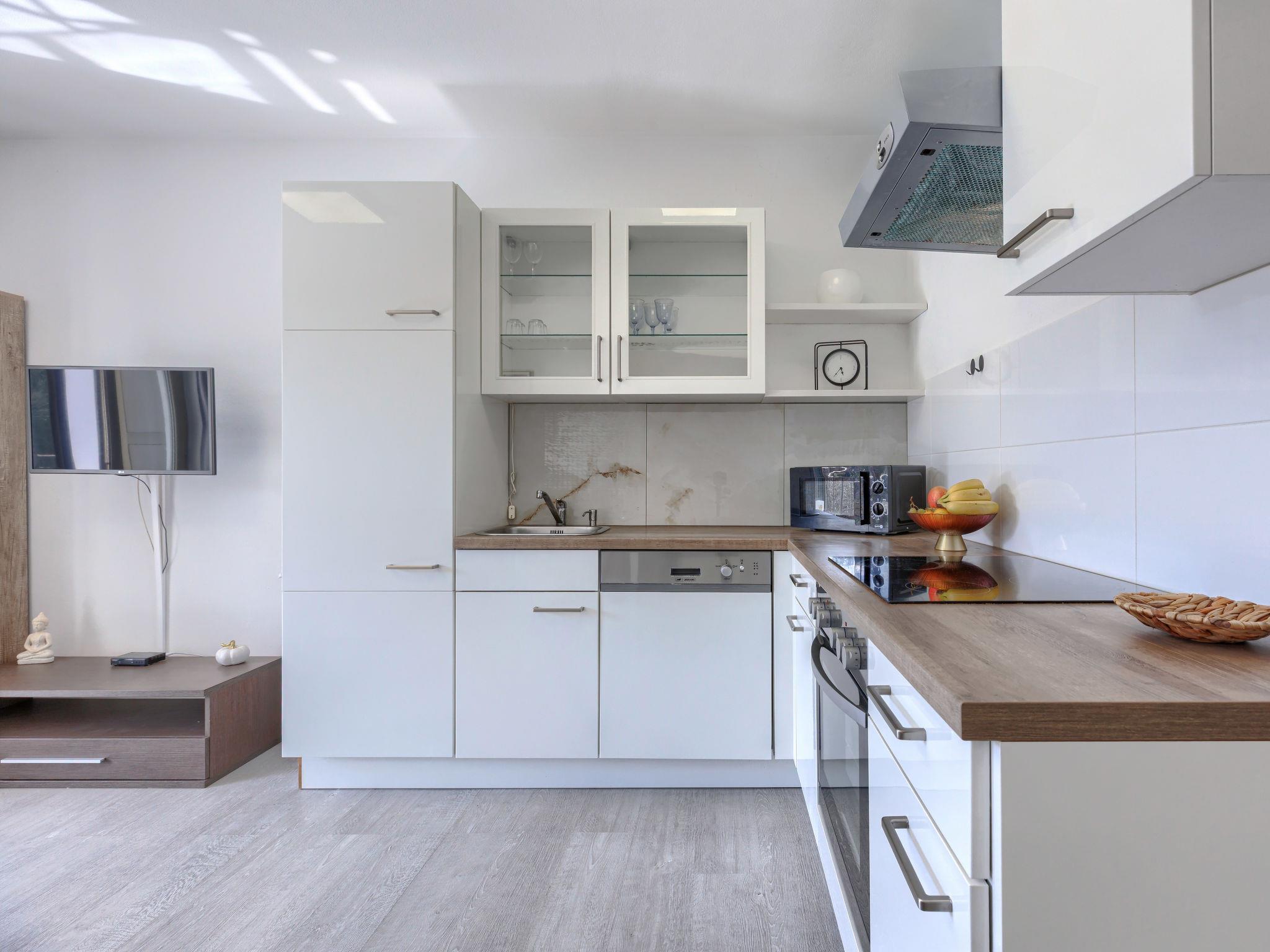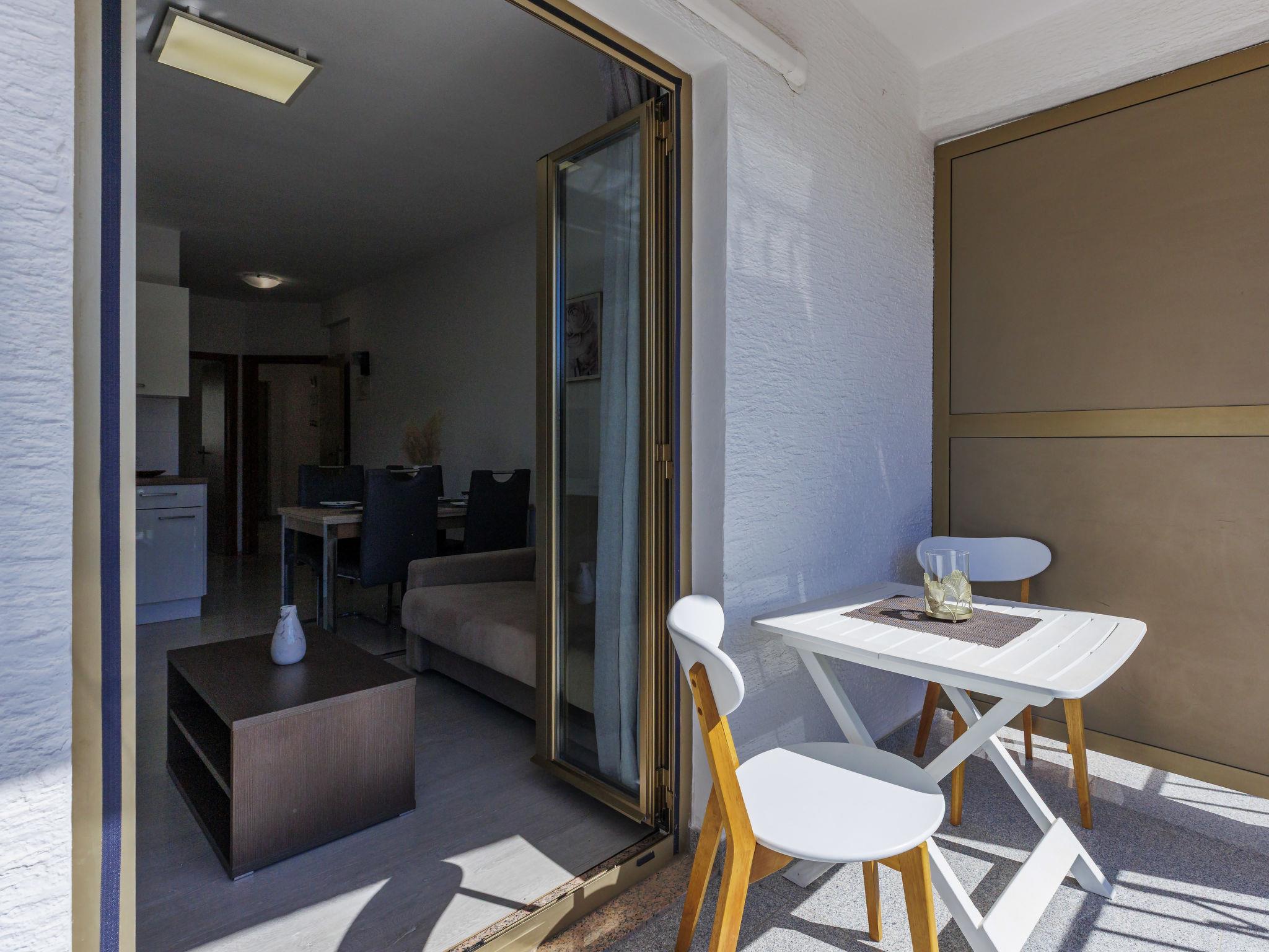 "A2", 2-Zimmer-Wohnung 50 m2 im 2. Stock. Schön eingerichtet: Wohn-/Esszimmer mit 1 Doppeldiwanbett (140 cm, Länge 200 cm), Sat-TV (Flachbildschirm), Klimaanlage. Ausgang zum Balkon. 1 Zimmer mit 1 franz. Bett (160 cm, Länge 200 cm). Offene Küche (Backofen, Geschirrspüler, 4 Glaskeramikplatten, Wasserkocher, Mikrowelle, Tiefkühler, elektrische Kaffeemaschine). Dusche/WC. Warmluftheizung. Balkon 4 m2. Balkonmöbel. Seitliche Sicht auf den Wald und das Städtchen. Zur Verfügung: Waschmaschine. Internet (WLAN, gratis). Bitte beachten: Nichtraucher-Haus.