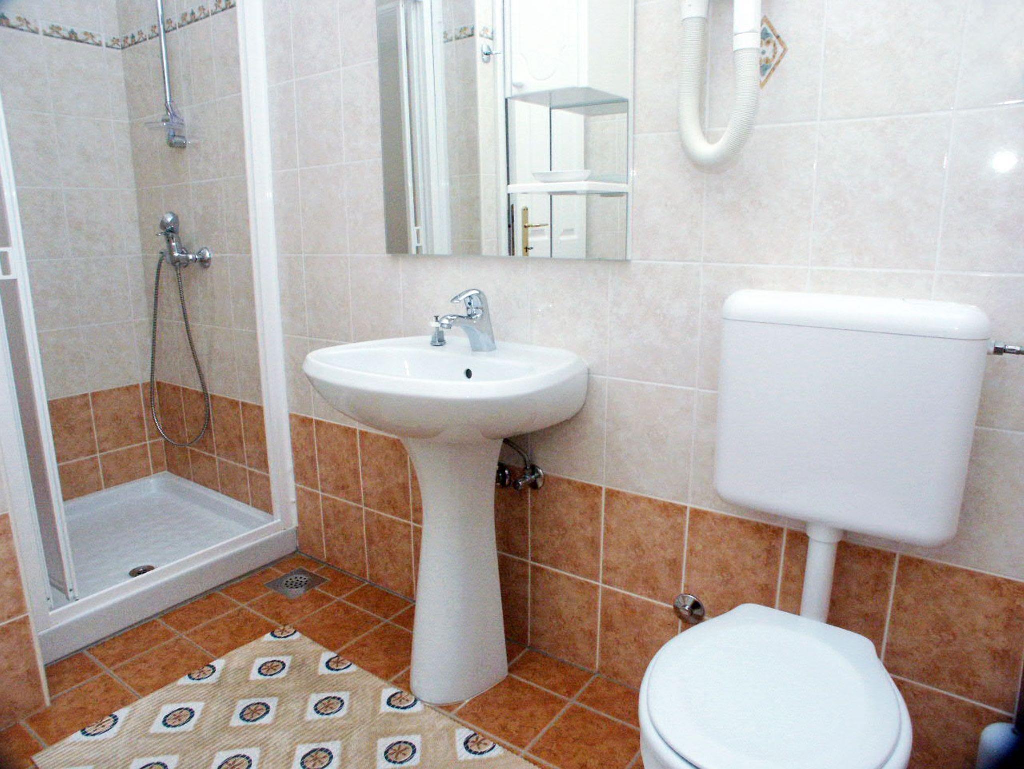 Ferienwohnung bietet Platz für 6 Gäste. Die Betten sind in Schlafzimmern, die es 2 gibt, und in Esszimmer, innerhalb einer Gesamtfläche von 50m2, angeordnet. Die Gäste haben eine eigene Terrasse zur Verfügung, auf der sie in warmen Sommernächten genießen können. Das Apartment bietet Meerblick. Es ist erlaubt, Speisen auf dem Gemeinschafts-Grill vorzubereiten. In der Unterkunftseinheit besteht die Möglichkeit des Mitbringens von Haustieren gegen Aufpreis. IM PREIS INBEGRIFFEN: Endreinigung, Zentralheizung, Internet, Kinderbett, Bügeleisen, Bügelbrett, Föhn. VERBINDLICHE ZUSÄTZLICHE KOSTEN: Kurtaxe (Erwachsene 0,93 € - 1,60 € Nacht/Person, Kinderermäßigung 12 - 17 Jahre), Aufzahlung für Kurzaufenthalte (prozentualer Zuschlag pro Nächtigungsanzahl: 30% - 1, 20% - 2, 10% - 3). UNVERBINDLICHE ZUSÄTZLICHE KOSTEN: Klimatisierung (5,00 € pro Nacht), Haustiere (5,00 € pro Nacht). Die Verfügbarkeit zusätzlicher Dienstleistungen in Ihrem reservierten Termin und die Preise derselben (falls nicht aufgeführt) müssen im Voraus überprüft werden. Zusätzliche Dienstleistungen die in der Zahlungsaufforderung nicht aufgeführt sind werden direkt beim Vermieter bezahlt, angenommen der Gast nutzt auch diese.