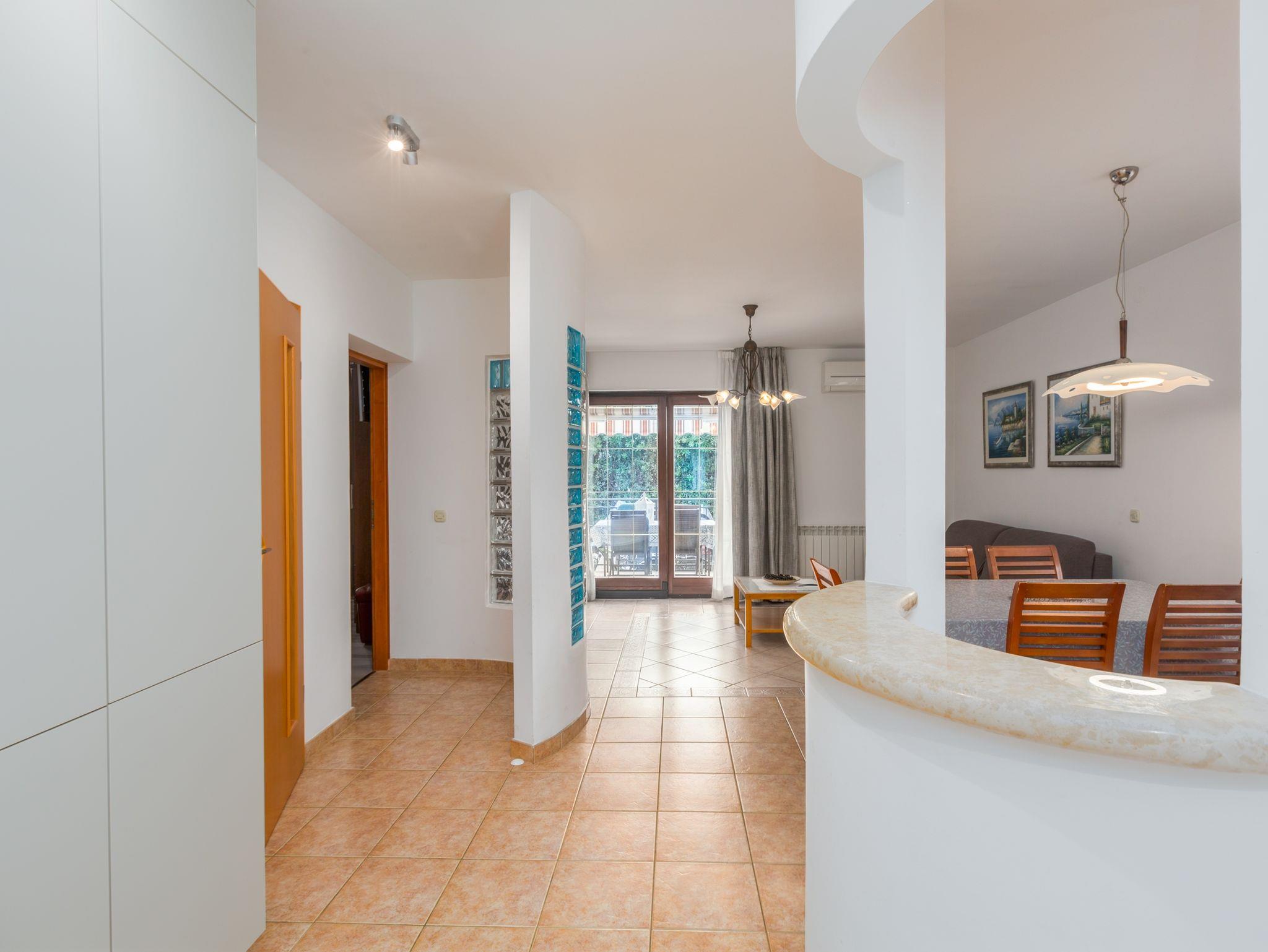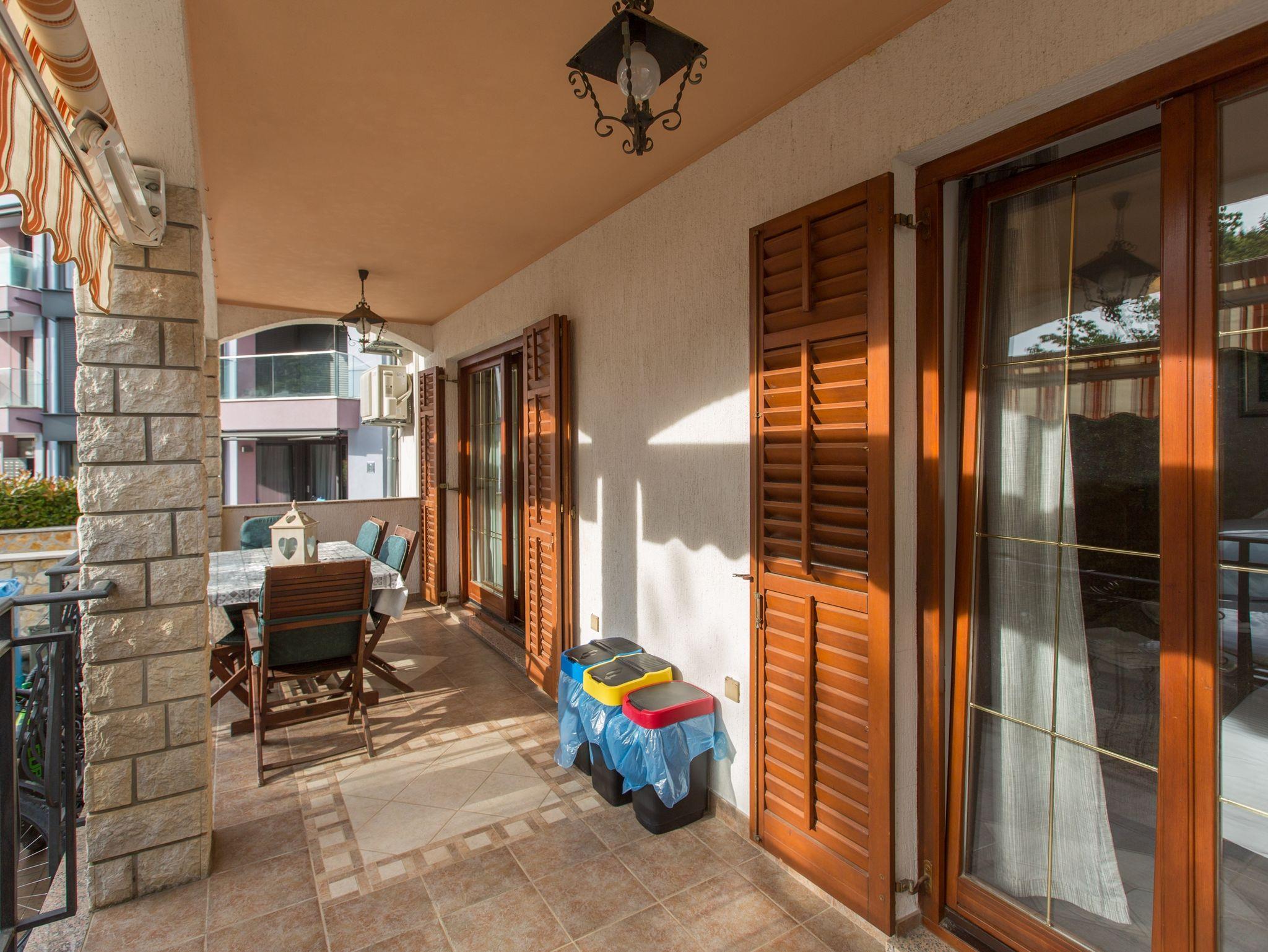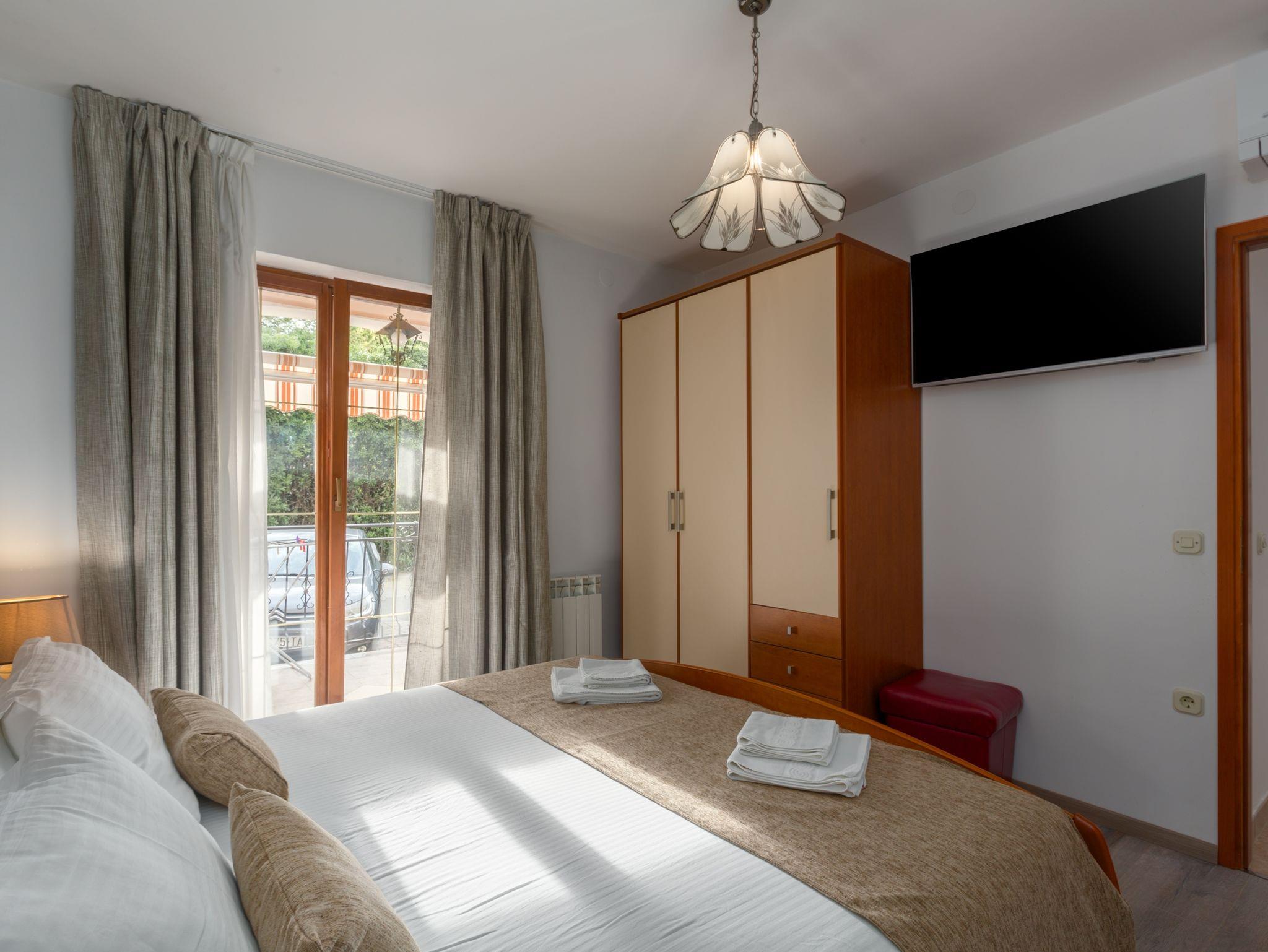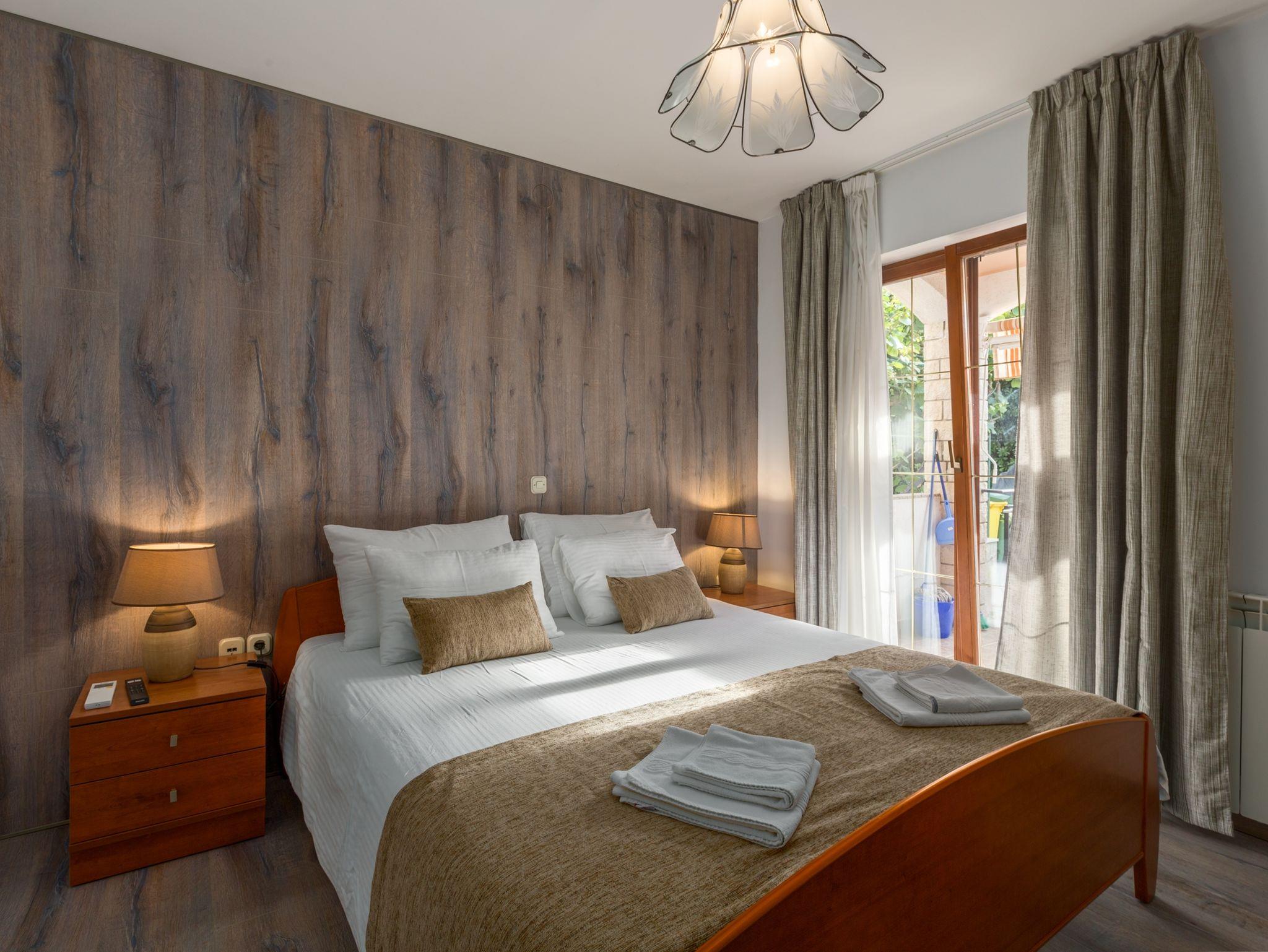 Ferienwohnung bietet Platz für 6 Gäste. Die Betten sind in Schlafzimmern, die es 2 gibt, und in Wohnzimmer, innerhalb einer Gesamtfläche von 55m2, angeordnet. Die Gäste haben eine eigene Terrasse zur Verfügung, auf der sie in warmen Sommernächten genießen können. IM PREIS INBEGRIFFEN: Kurtaxe, Endreinigung, Klimatisierung, Internet. VERBINDLICHE ZUSÄTZLICHE KOSTEN: Aufzahlung für Kurzaufenthalte (prozentualer Zuschlag pro Nächtigungsanzahl: 30% - 1, 20% - 2, 10% - 3). Die Verfügbarkeit zusätzlicher Dienstleistungen in Ihrem reservierten Termin und die Preise derselben (falls nicht aufgeführt) müssen im Voraus überprüft werden. Zusätzliche Dienstleistungen die in der Zahlungsaufforderung nicht aufgeführt sind werden direkt beim Vermieter bezahlt, angenommen der Gast nutzt auch diese. Ermäßigung auf den Grundpreis: Gratistag 21=19 (bei einem Aufenthalt von 21 Tagen oder mehr erhalten Sie 2 Gratistage für den Aufenthalt bis 31.12.26).