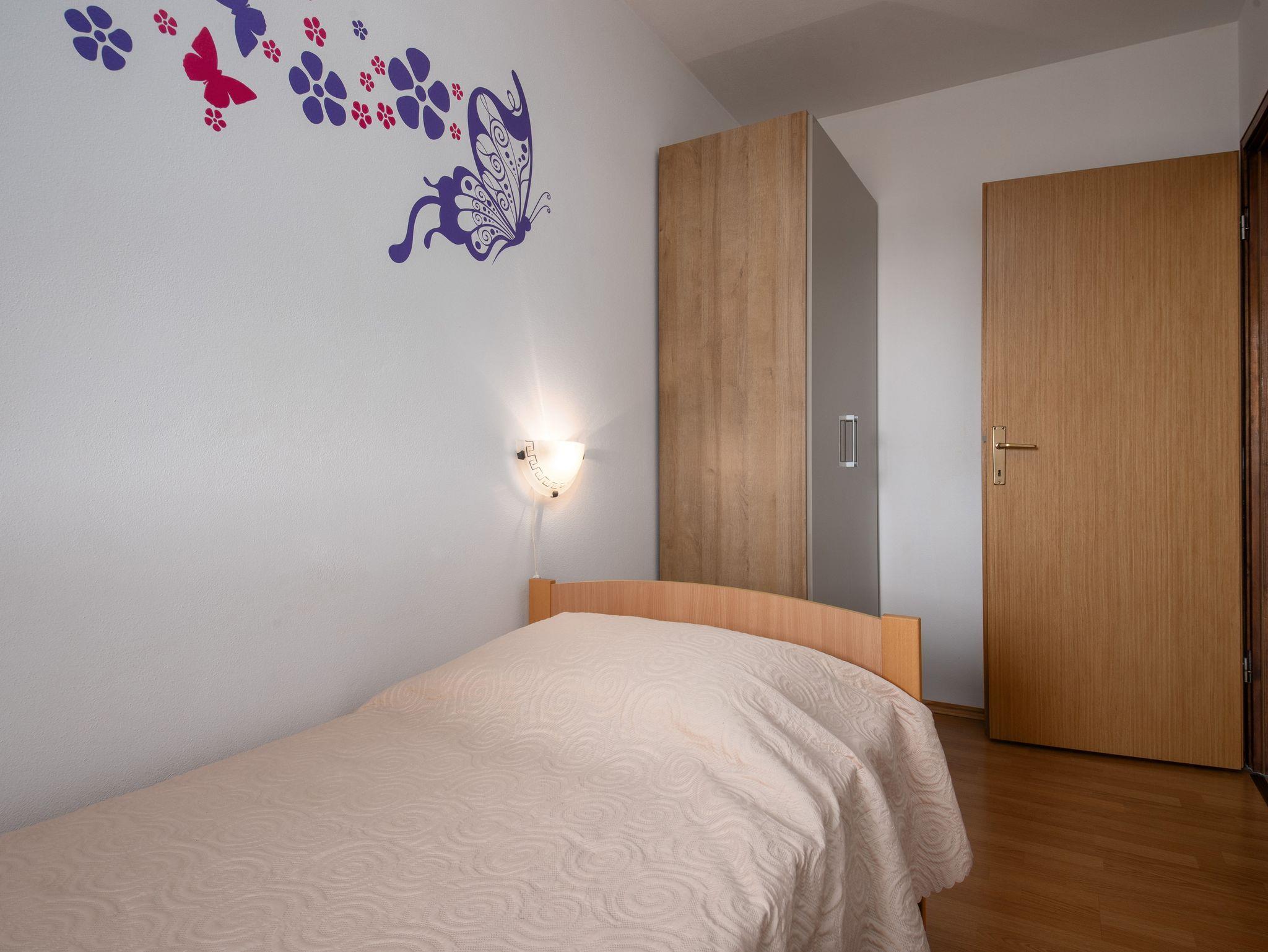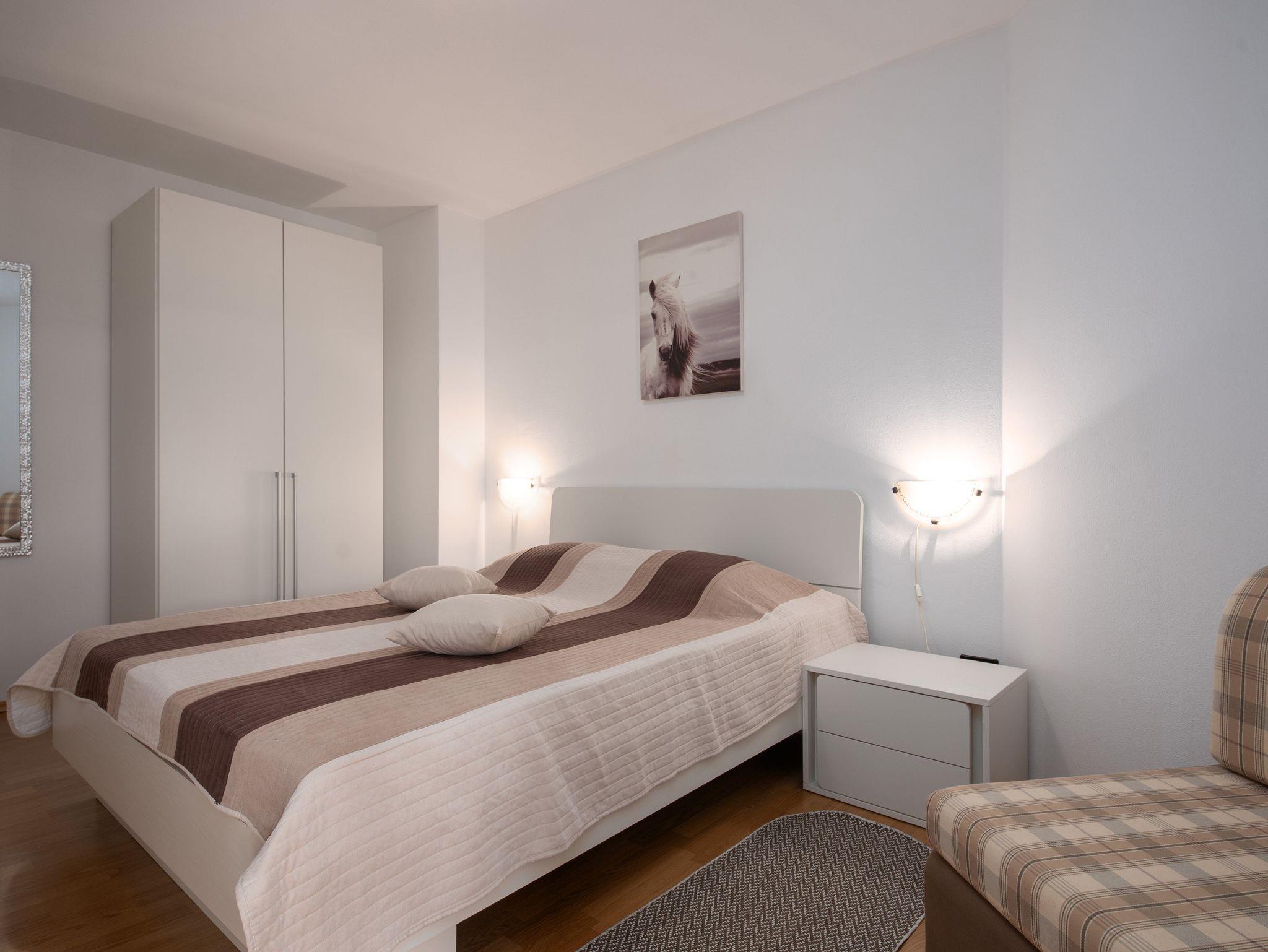 Ferienwohnung bietet Platz für 5 Gäste. Die Betten sind in Schlafzimmern, die es 3 gibt, innerhalb einer Gesamtfläche von 62m2, angeordnet. Die Gäste haben einen eigenen Balkon zur Verfügung, auf der sie in warmen Sommernächten genießen können. IM PREIS INBEGRIFFEN: Kurtaxe, Endreinigung, Klimatisierung, Parkplatz, Internet, Bügeleisen, Bügelbrett, Föhn. VERBINDLICHE ZUSÄTZLICHE KOSTEN: Aufzahlung für Kurzaufenthalte (prozentualer Zuschlag pro Nächtigungsanzahl: 30% - 1, 20% - 2, 10% - 3). Die Verfügbarkeit zusätzlicher Dienstleistungen in Ihrem reservierten Termin und die Preise derselben (falls nicht aufgeführt) müssen im Voraus überprüft werden. Zusätzliche Dienstleistungen die in der Zahlungsaufforderung nicht aufgeführt sind werden direkt beim Vermieter bezahlt, angenommen der Gast nutzt auch diese.