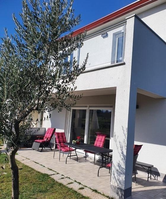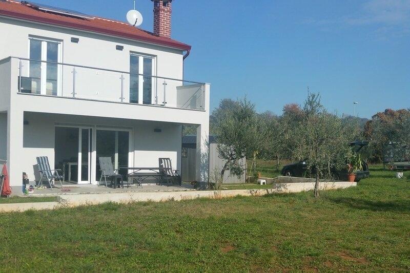 Neu erbautes Ferienhaus nur durch eine Wiese und ein Olivenfeld vom Meer getrennt, ruhige Lage,