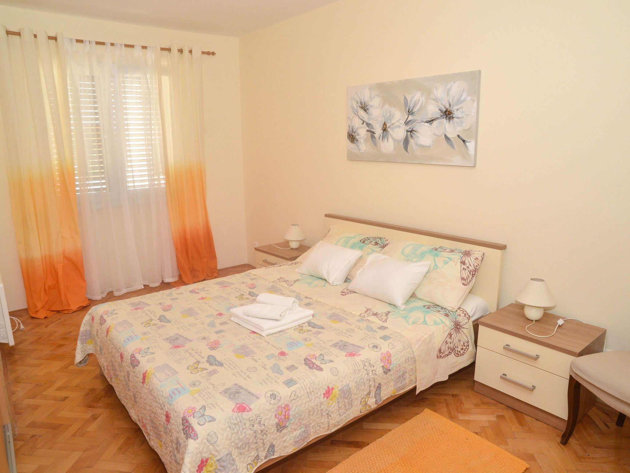 Ferienwohnung bietet Platz für 8 Gäste. Die Betten sind in Schlafzimmern, die es 3 gibt, und in Wohnzimmer, innerhalb einer Gesamtfläche von 102m2, angeordnet. Die Gäste haben eine eigene Terrasse zur Verfügung, auf der sie in warmen Sommernächten genießen können. Für vollen Genuss und Entspannung gibt es einen privaten Grill für Gäste dieser Unterkunft. Während ihres Aufenthalts können Gäste das gemeinsam zur Nutzung stehende Schwimmbad benutzen. IM PREIS INBEGRIFFEN: Kurtaxe, Endreinigung, Klimatisierung, Pool, Parkplatz, Internet, Kinderbett, Bügeleisen, Bügelbrett, Föhn, Sonnenschirm. VERBINDLICHE ZUSÄTZLICHE KOSTEN: Aufzahlung für Kurzaufenthalte (prozentualer Zuschlag pro Nächtigungsanzahl: 30% - 1, 20% - 2, 10% - 3). Die Verfügbarkeit zusätzlicher Dienstleistungen in Ihrem reservierten Termin und die Preise derselben (falls nicht aufgeführt) müssen im Voraus überprüft werden. Zusätzliche Dienstleistungen die in der Zahlungsaufforderung nicht aufgeführt sind werden direkt beim Vermieter bezahlt, angenommen der Gast nutzt auch diese. Ermäßigung auf den Grundpreis: Gratistag 14=13 (bei einem Aufenthalt von 14 Tagen oder mehr erhalten Sie einen Gratistag für den Aufenthalt bis 31.12.26).