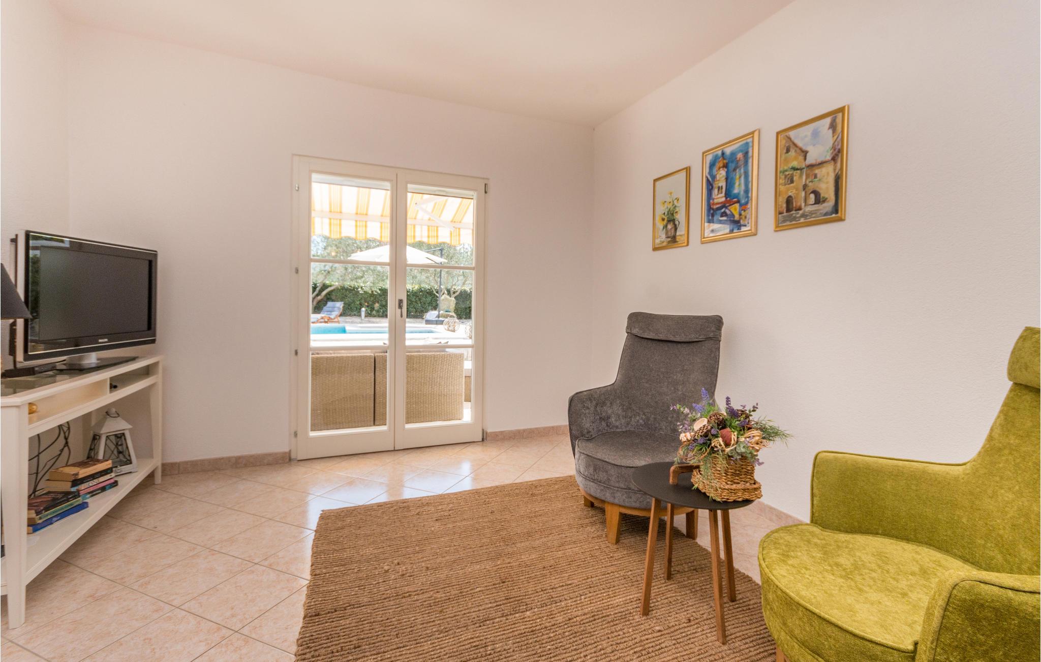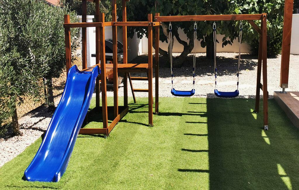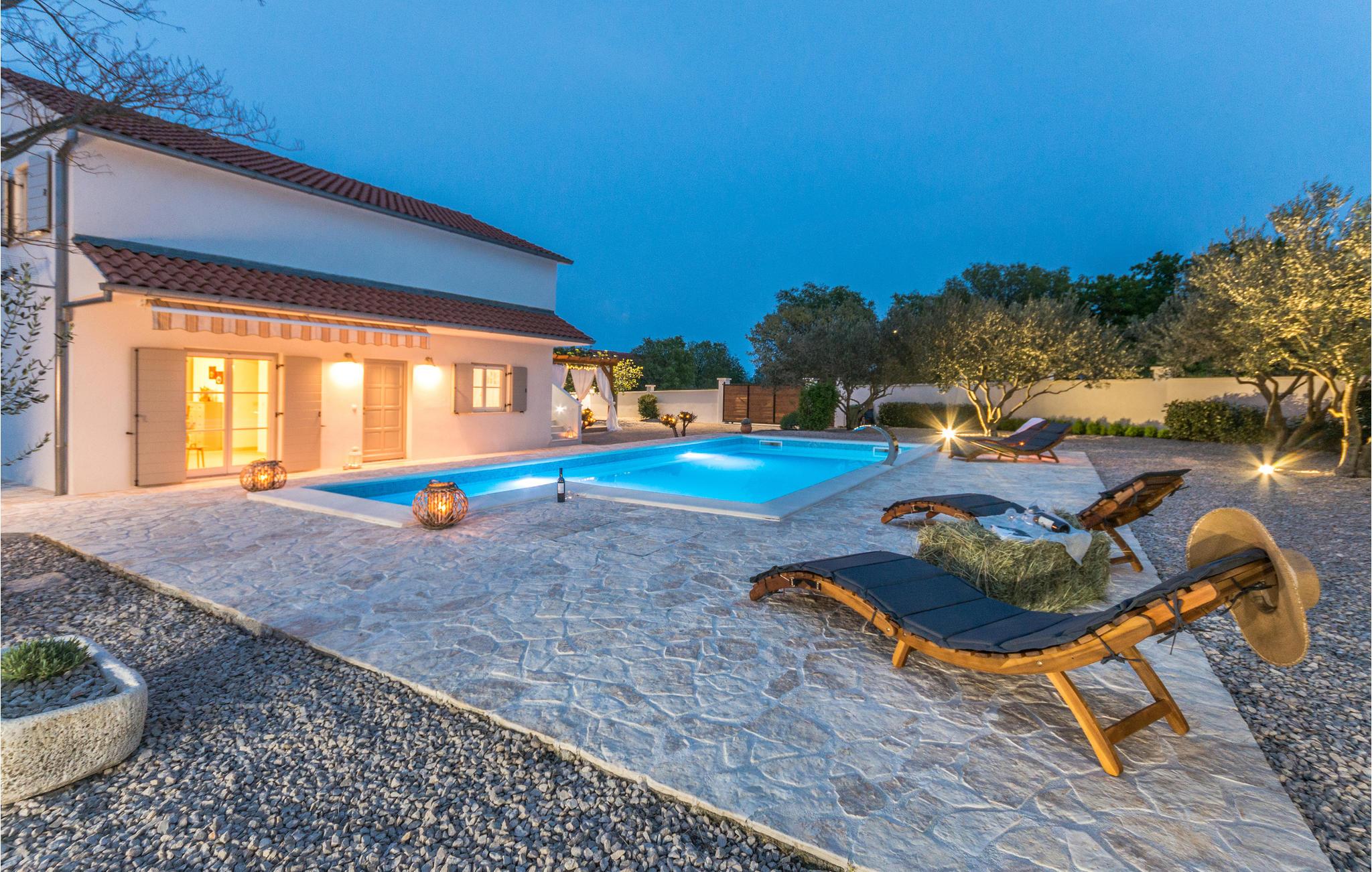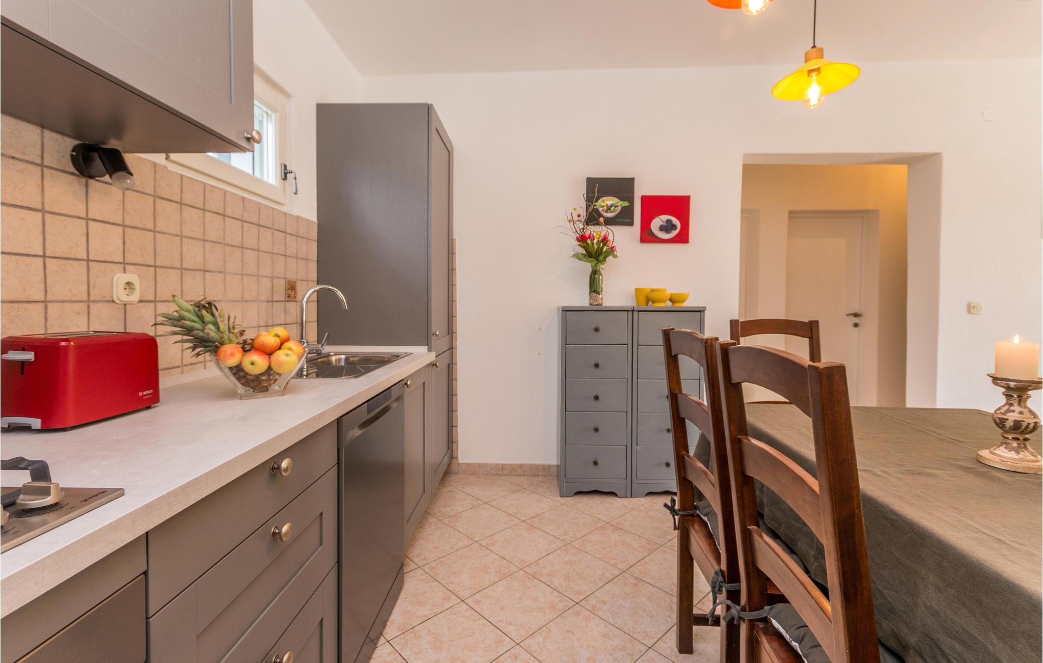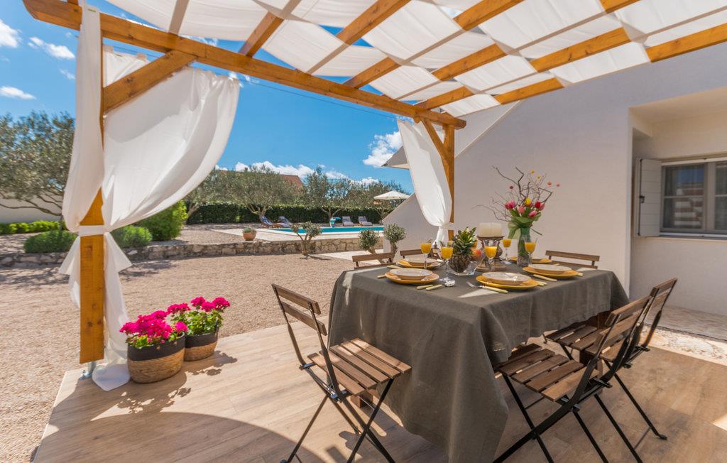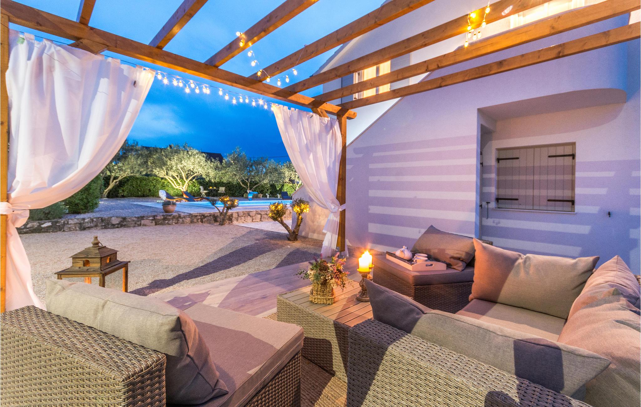 Dieses Steinhaus mischt zwischen uriger und moderner Einrichtung, zudem bietet es Ihnen vollkommenen Komfort für einen angenehmen Aufenthalt in dieser kleinen Ortschaft, wo Sie in Ruhe dem Lärm und Stadtgetümmel entfliehen. Machen Sie es sich in diesem geräumigen Domizil gemütlich, wobei die heimeligen und bequemen Möbel in Verbindung mit stilvollen Dekorationen eine unbeschwerte Atmosphäre zum Wohlfühlen erschaffen. Hier können Sie es sich mit Ihrer Begleitung für einen Urlaub bequem machen und die Zeit in Kroatien genießen. Genießen Sie hier Ihre Mahlzeiten oder grillen im Hof unter Dach oder im strahlenden Sonnenschein, diese Terrasse lädt auch zum Lektüren verschlingen oder Kaffee schlürfen ein. Tauchen Sie Ihre Zehen in den Pool, machen ein Nickerchen in einer der Sonnenliegen oder schauen Ihren Kleinen beim Spielen zu, die u.a. eine Schaukel und Rutsche auf dem eingezäunten Grundstück zur Verfügung haben.