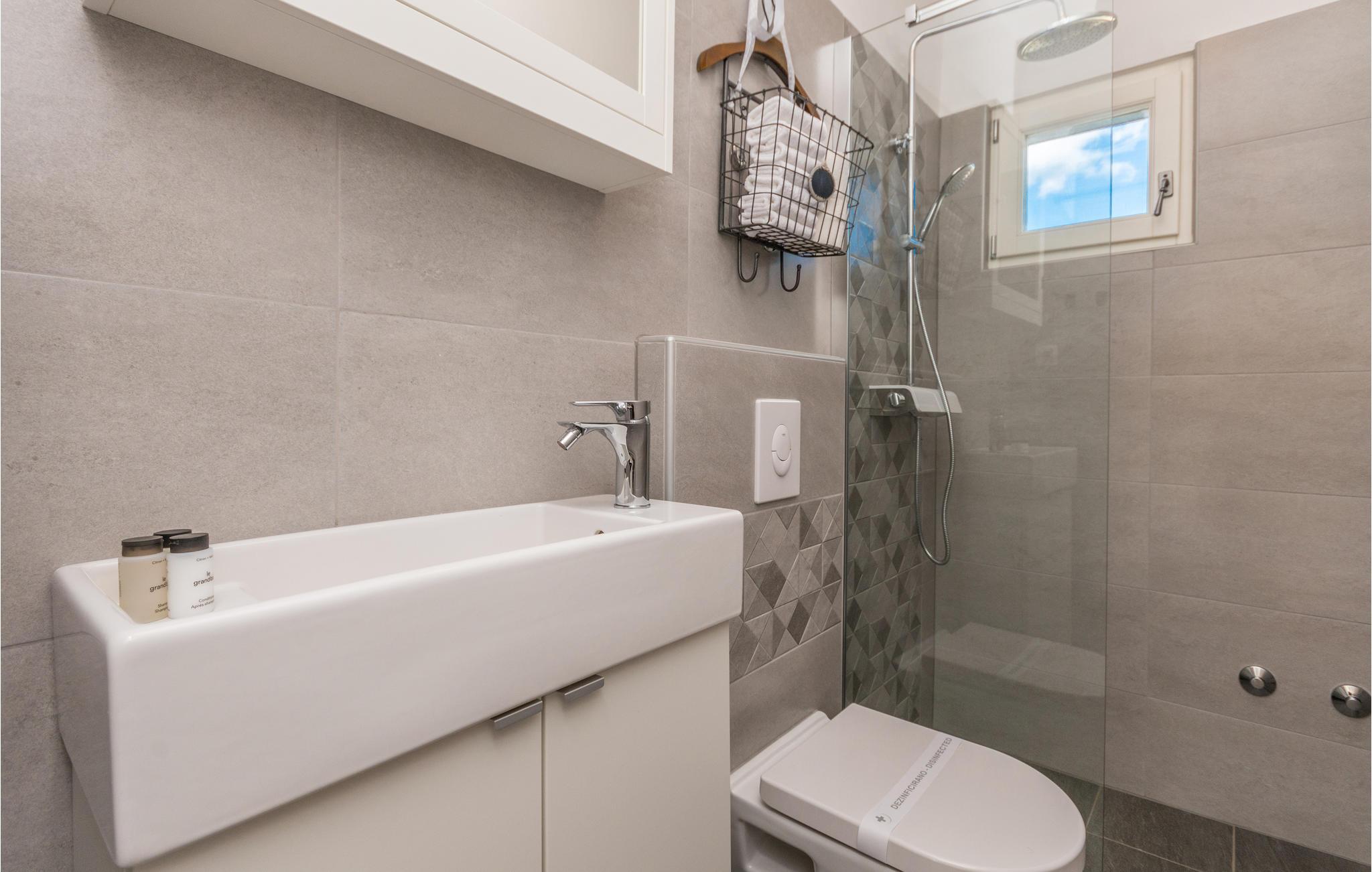 - WC mit warmem und kaltem Wasser, Dusche