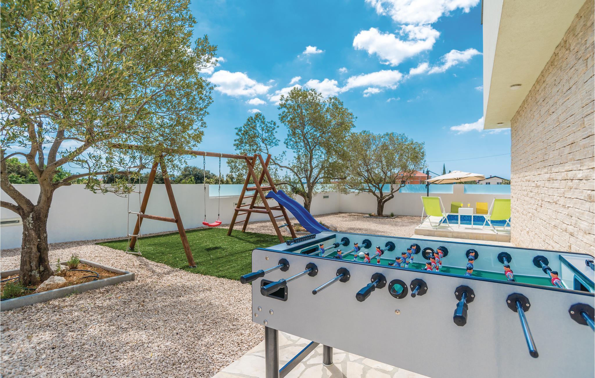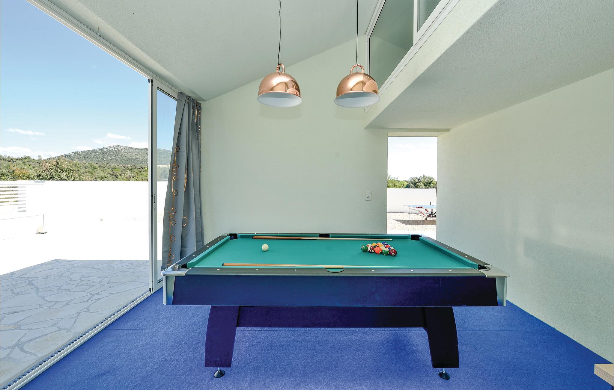 Dieses komplett ausgestattete und stilvoll eingerichtete Ferienhaus liegt auf einem 600 m2 Grundstück. Vom Balkon im ersten Stock haben Sie teilweise Aussicht auf den Vraner-See, den Sie auf jeden Fall während Ihres Aufenthaltes besuchen sollten. Die Unterkunft verfügt über vier Schlafzimmer, eine komplett ausgestatteter Küche und ein Esszimmer. Im Freizeitraum finden Sie Billard und Darts. Vogelbeobachter kommen im Ornithologischen Reservat in der Nähe voll auf ihre Kosten und es gibt auch Gelegenheiten zum Reiten.