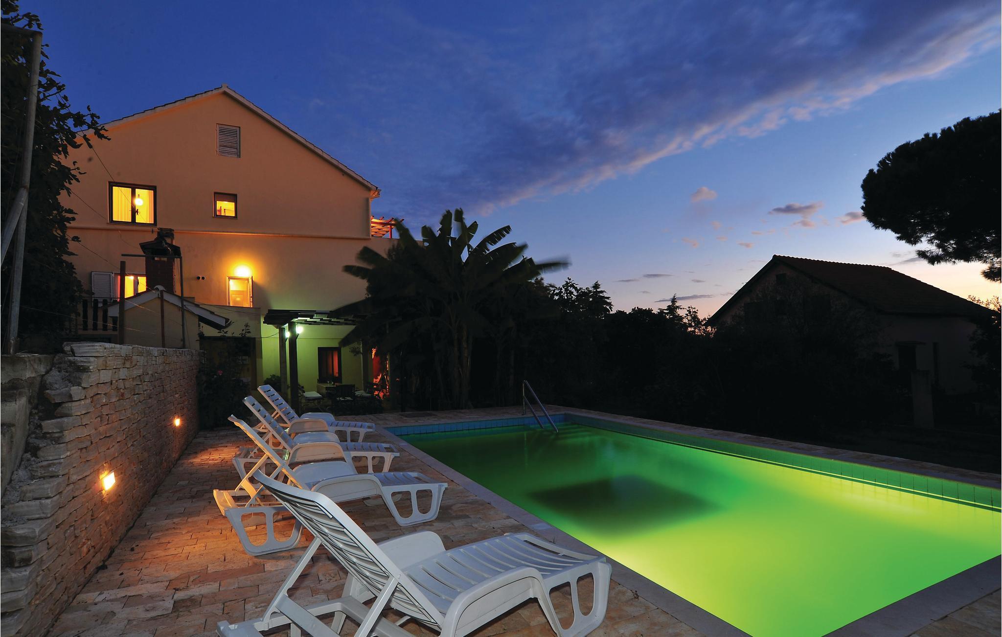 Das angenehm und praktisch eingerichtete Ferienhaus liegt im ruhigen Ort Kozino und ist ideal für einen erholsamen Urlaub. Das Feriendomizil besteht aus drei getrennten Wohneinheiten, die durch Innentreppen miteinander verbunden sind. Im Erdgeschoss gibt es eine Taverne und ein weiteres Badezimmer. Herrlich ist auch die überdachte TErrasse am Pool. Die Einheiten eignen sich für mehr Familien, die Ihren Urlaub zusammen verbringen, aber trotzdem Ihre Privatsphäre hüten wollen. An heißen Sommertagen können Sie sich im Pool erfrischen, während die Kinder im Garten spielen. In nur einigen Minuten zu Fuß erreichen Sie den Badestrand, der von Pinienbäumen umgeben ist. In der Nähe liegen die Touristenorte Pinija und Zaton.