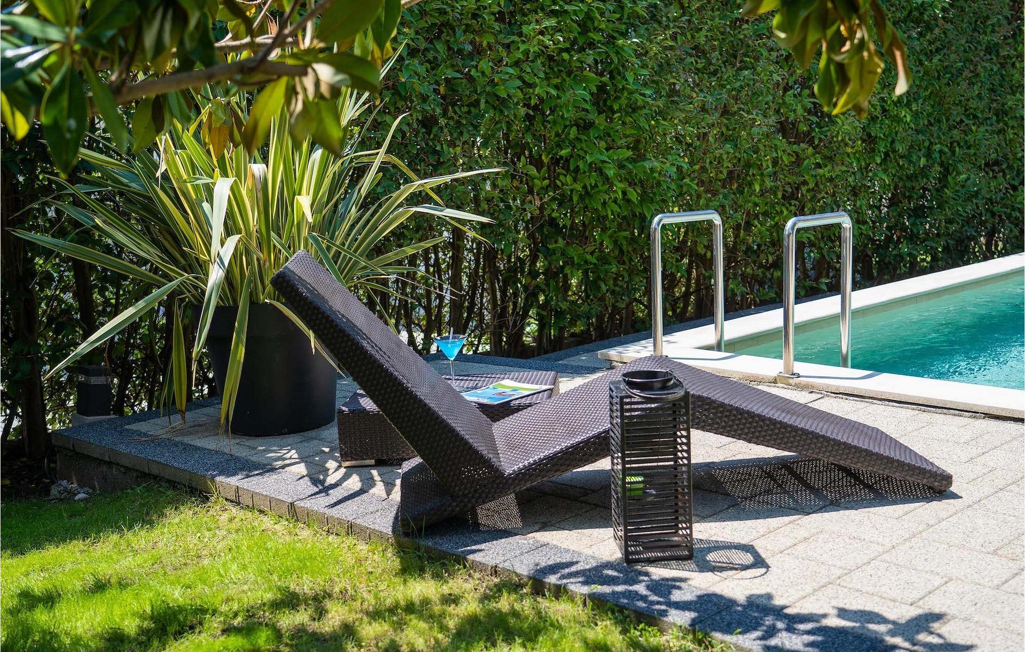 Der Außenbereich umfasst einen komplett eingezäunt Garten mit Pool, wo Sie entspannen und die Sonne in absoluter Privatsphäre genießen können. Auf der Terrasse steht ein Essbereich im Freien mit Holzkohlengrill und ein Loungebereich zur Verfügung.