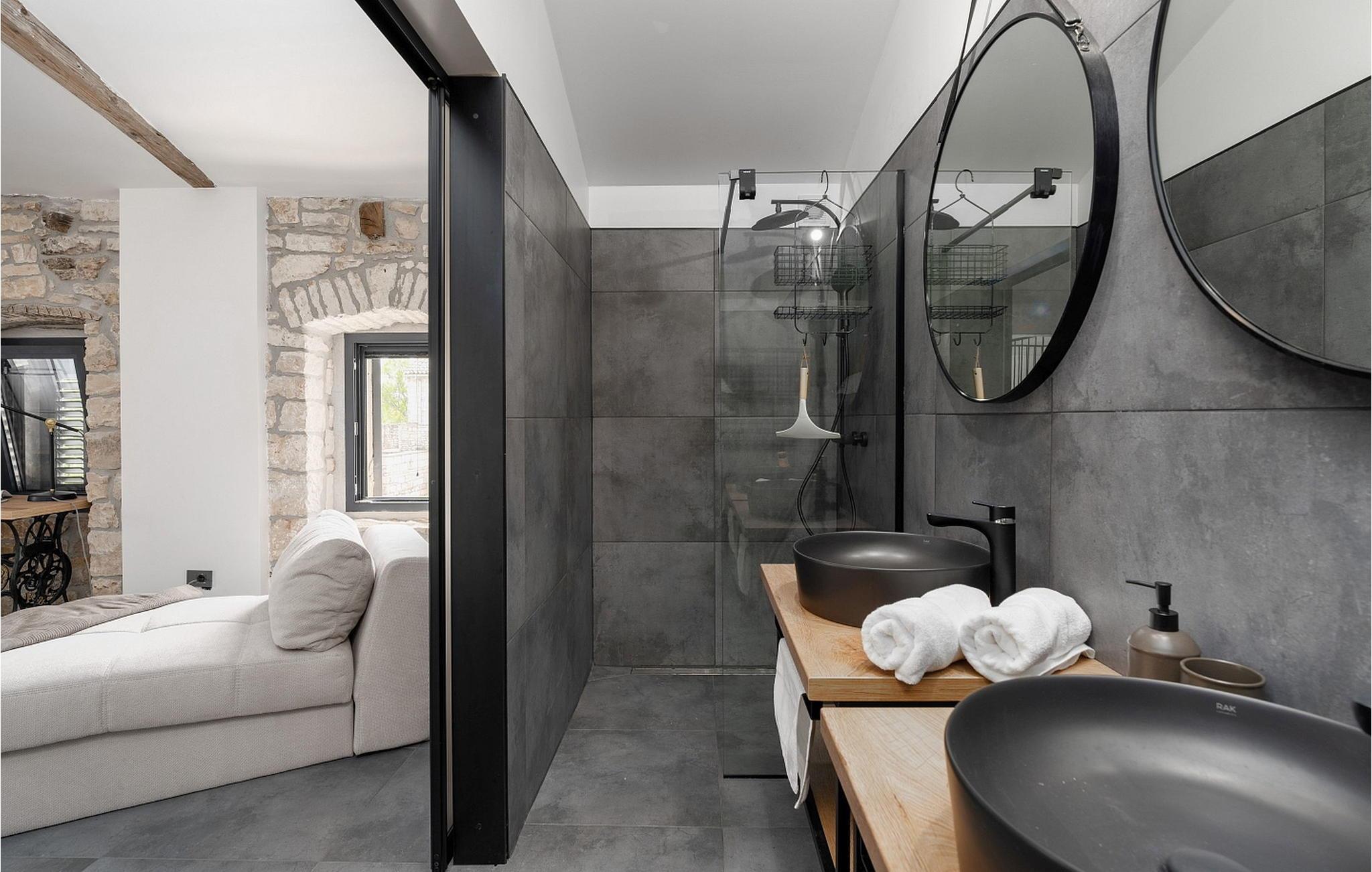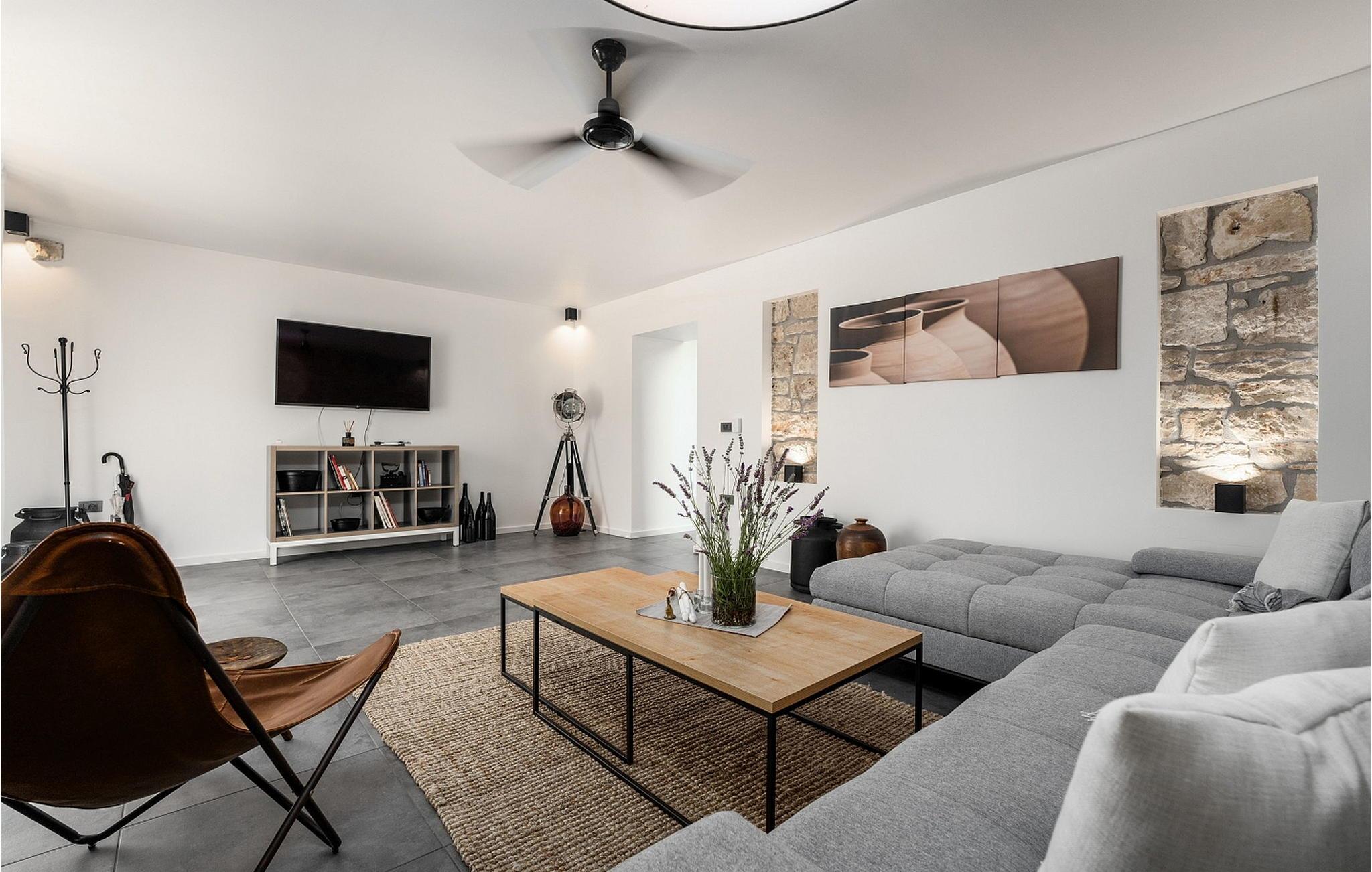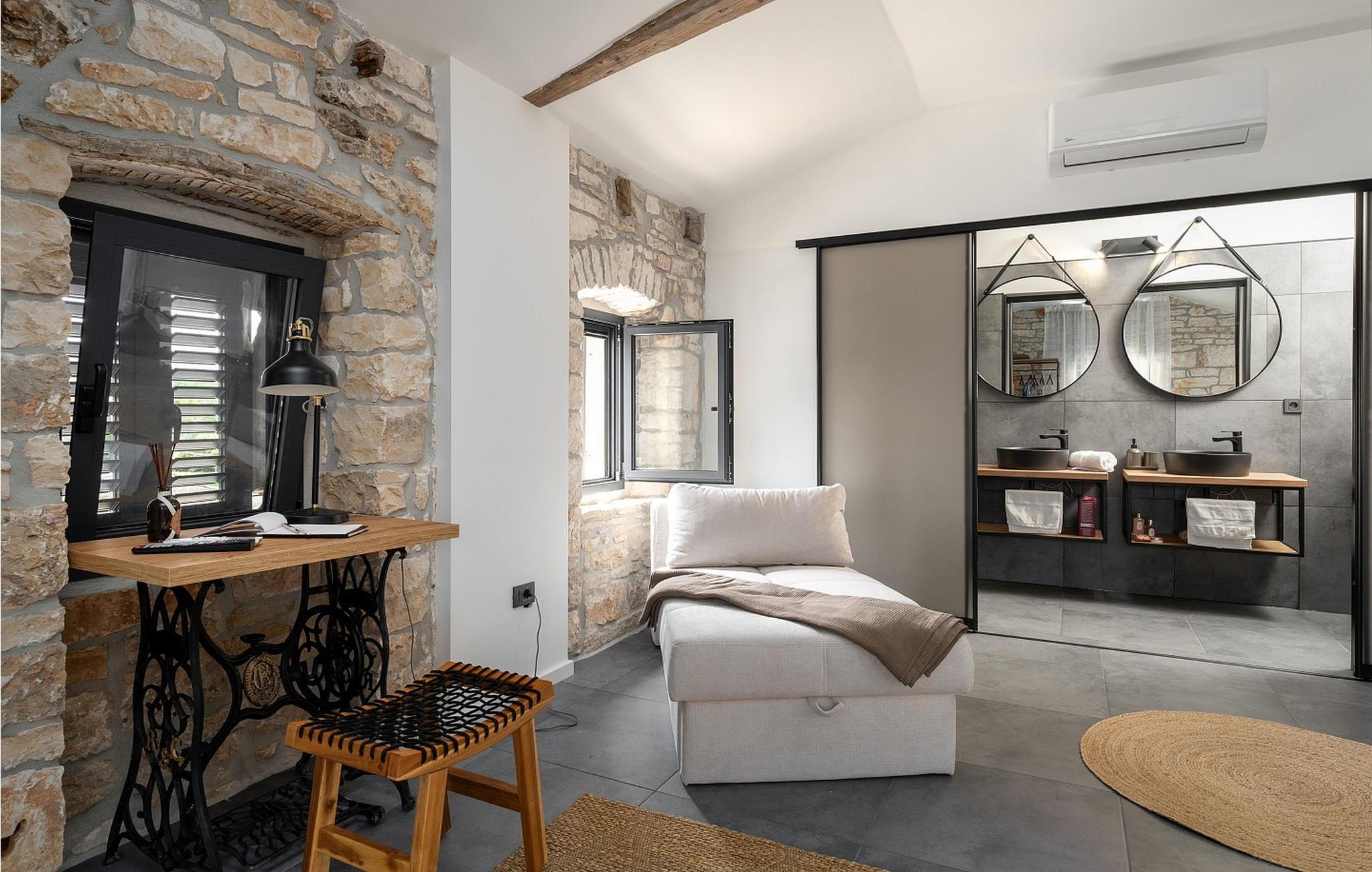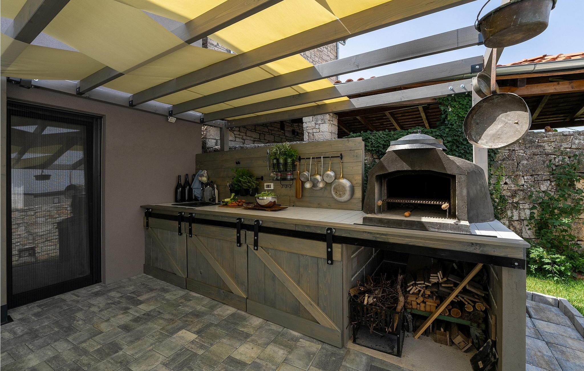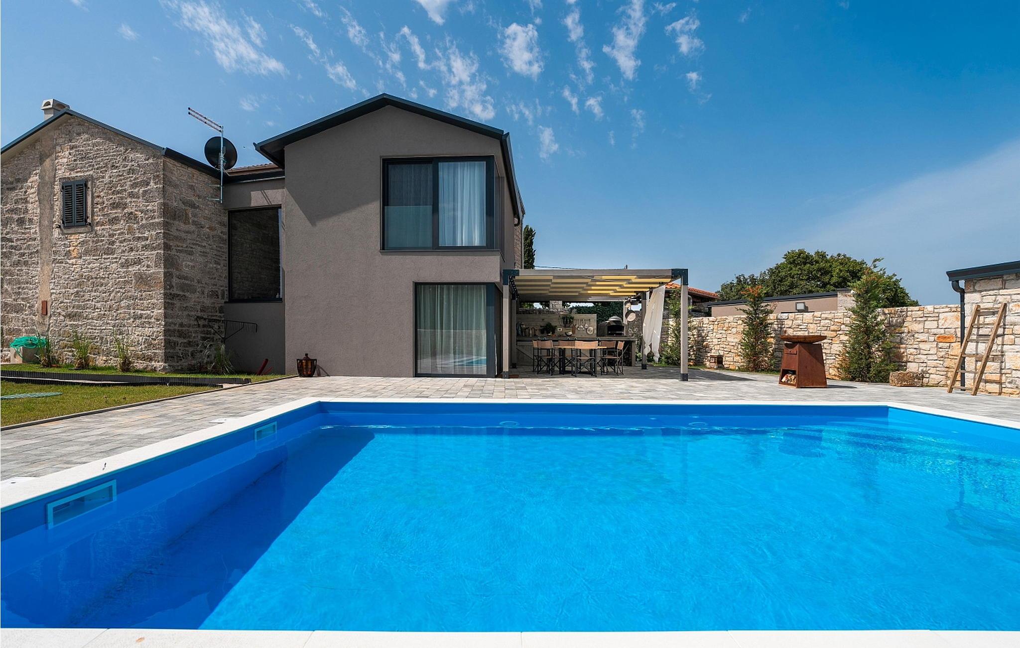 Eine Kombination aus einem alten Istrianischen Steinhaus und einem neu gebauten Teil, sowie moderner Möbel mit vielen antiken Details geben dem Haus eine einzigartige Atmosphäre in welcher sich jeder Gast wohlfühlen wird. Von der Außenausstattung her verfügt Casa La Tabachina über einen offenen Pool von 42 qm, überdachte Terrasse mit Sitzgarnitur und Sommerküche mit Brotbackofen, Parkplatz für zwei Fahrzeuge sowie ein Gebäude mit Infrarot und finnischer Sauna und Badezimmer.